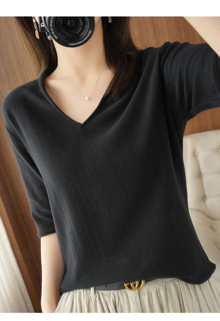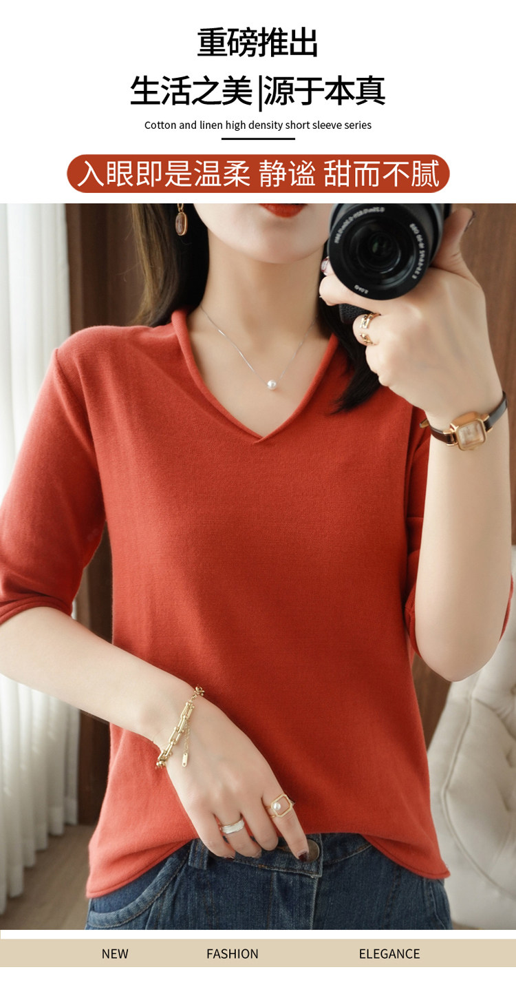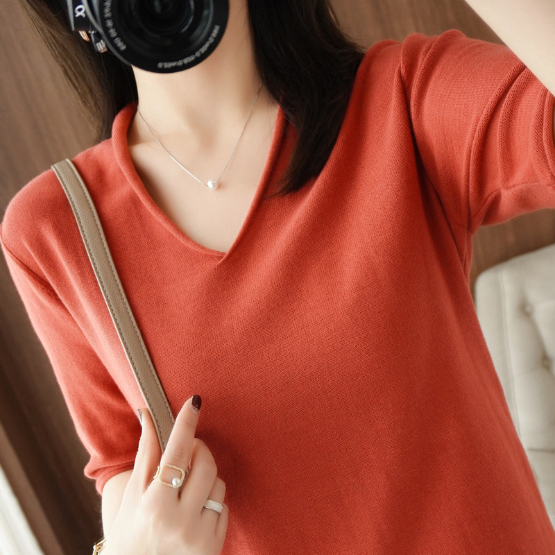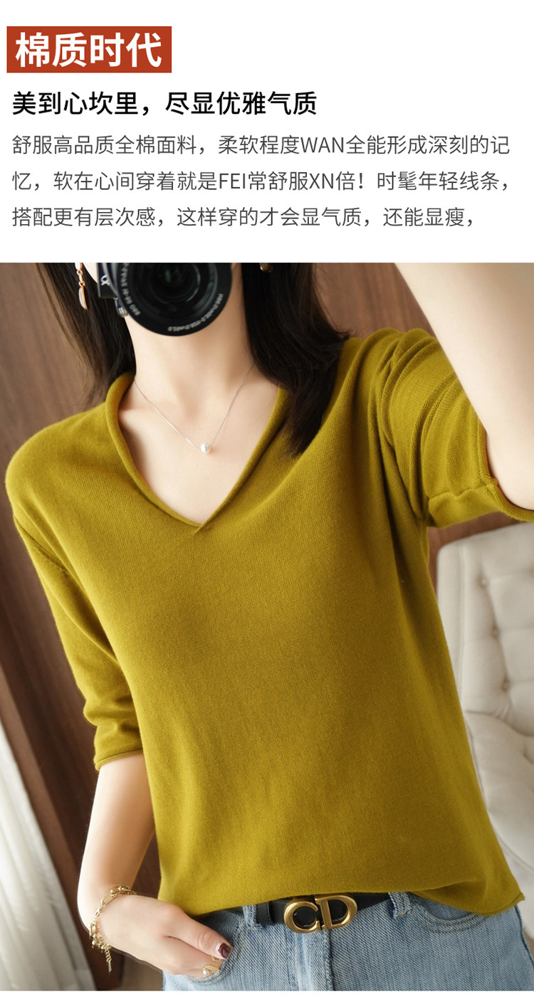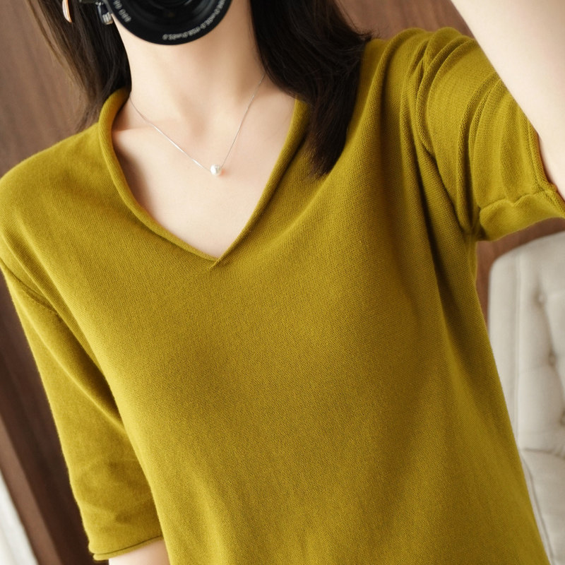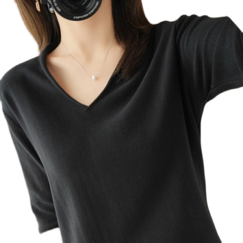 Хлопковый трикотажный свитер, базовая рубашка, оверсайз, короткий рукав