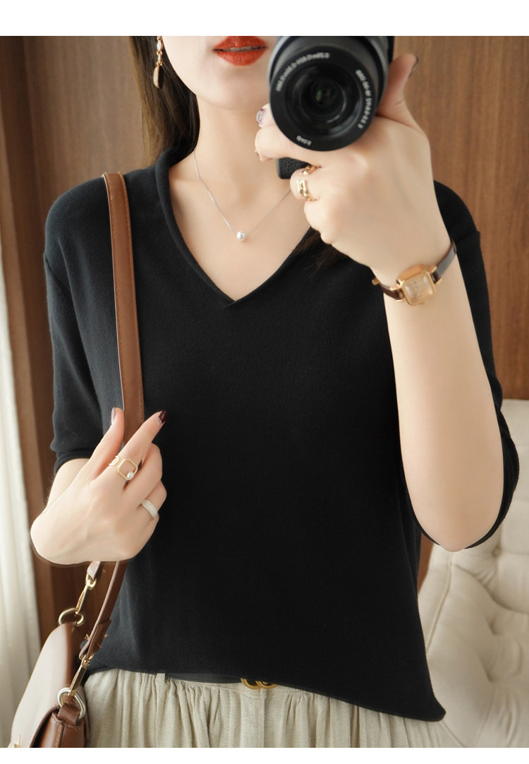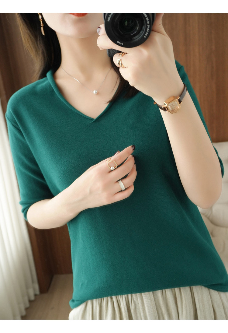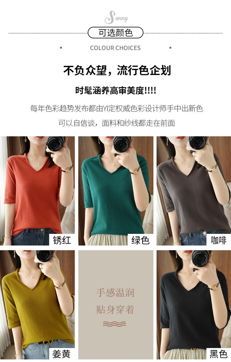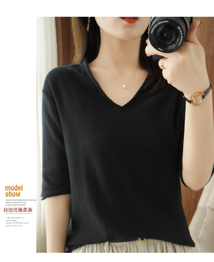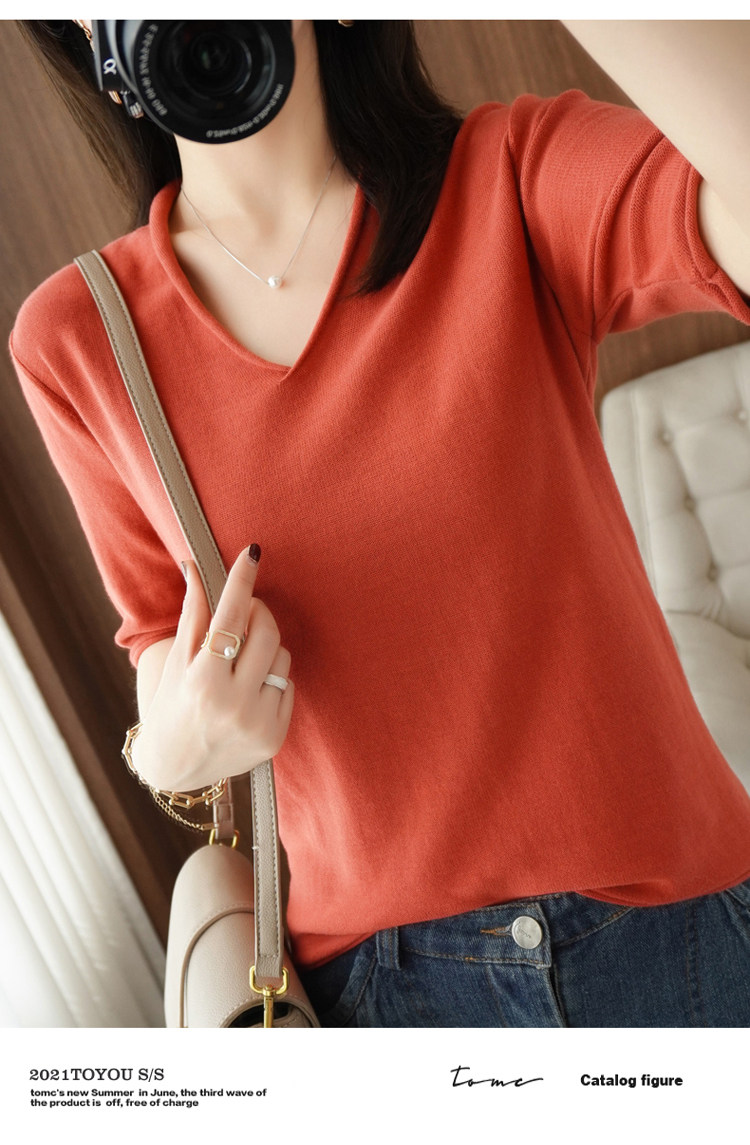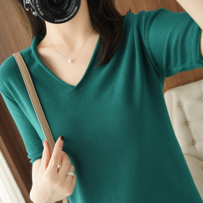 Хлопковый трикотажный свитер, базовая рубашка, оверсайз, короткий рукав