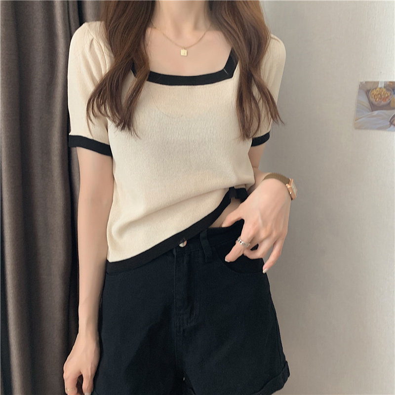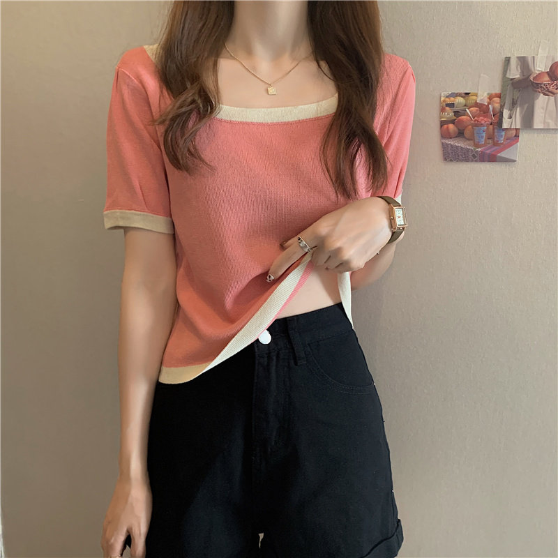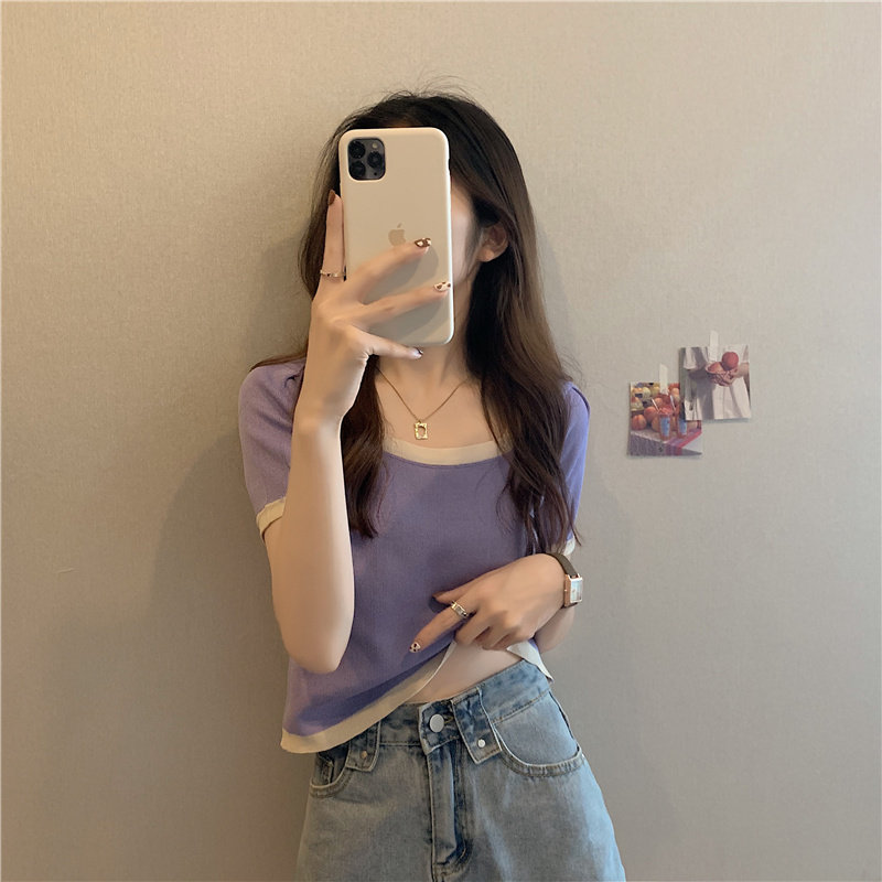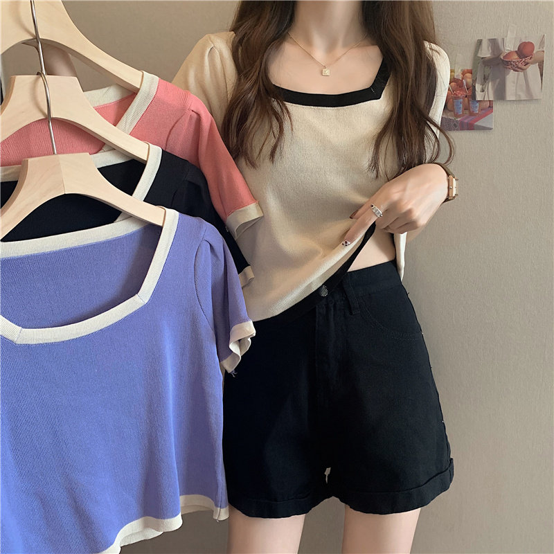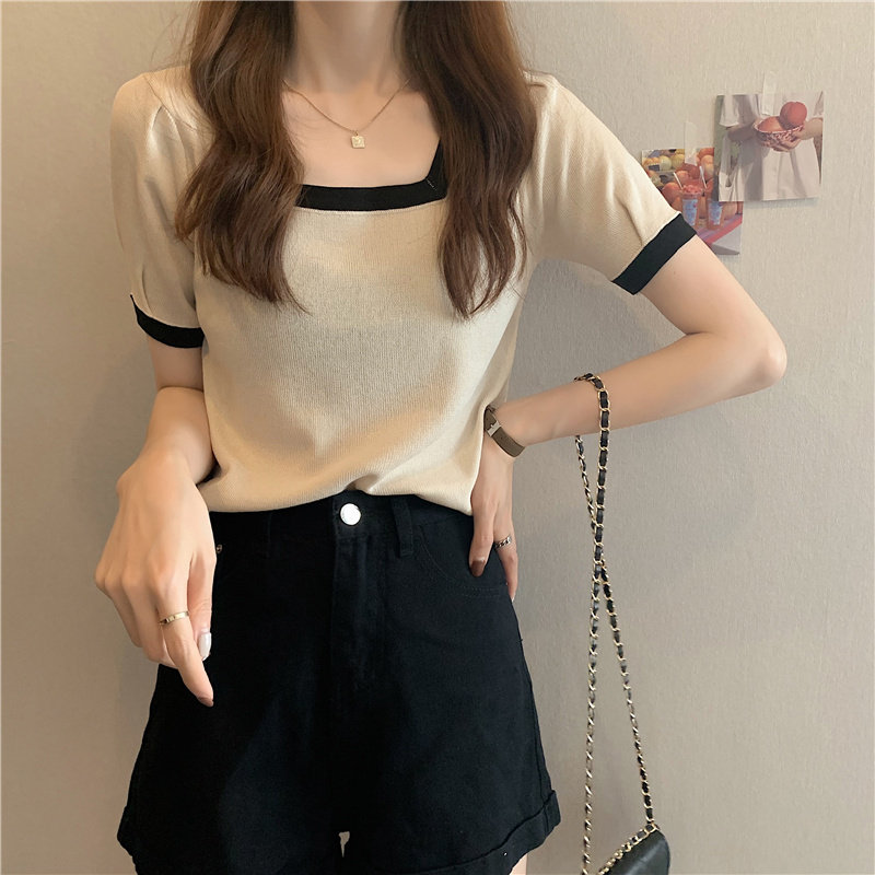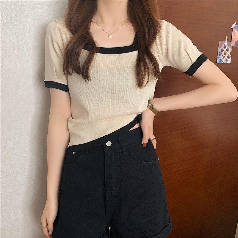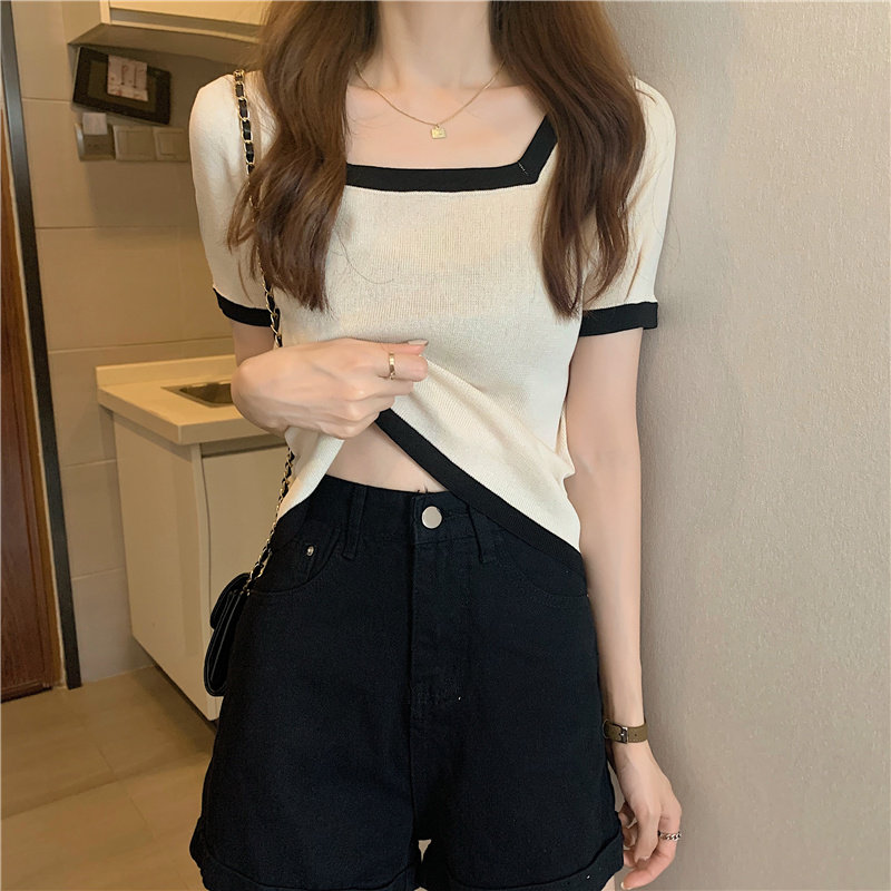 Tide, летний тонкий трикотажный короткий свитер, шелковая футболка, облегающий крой, короткий рукав