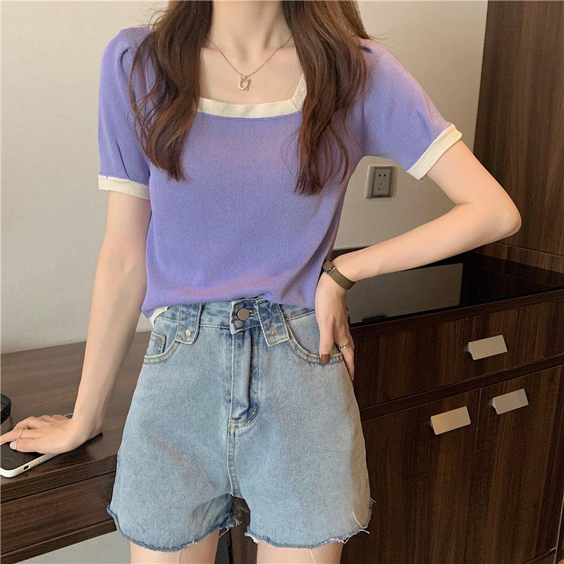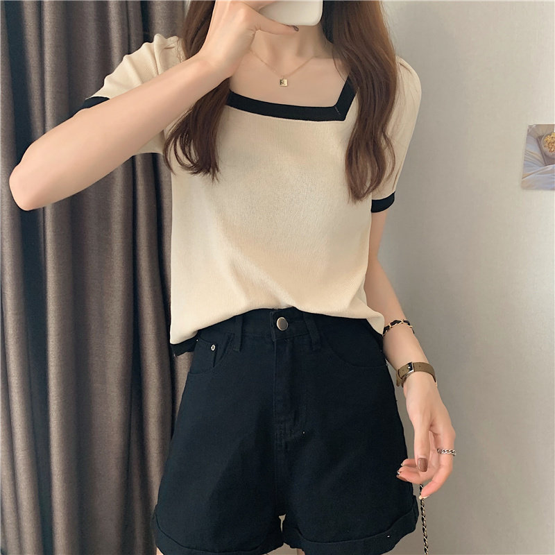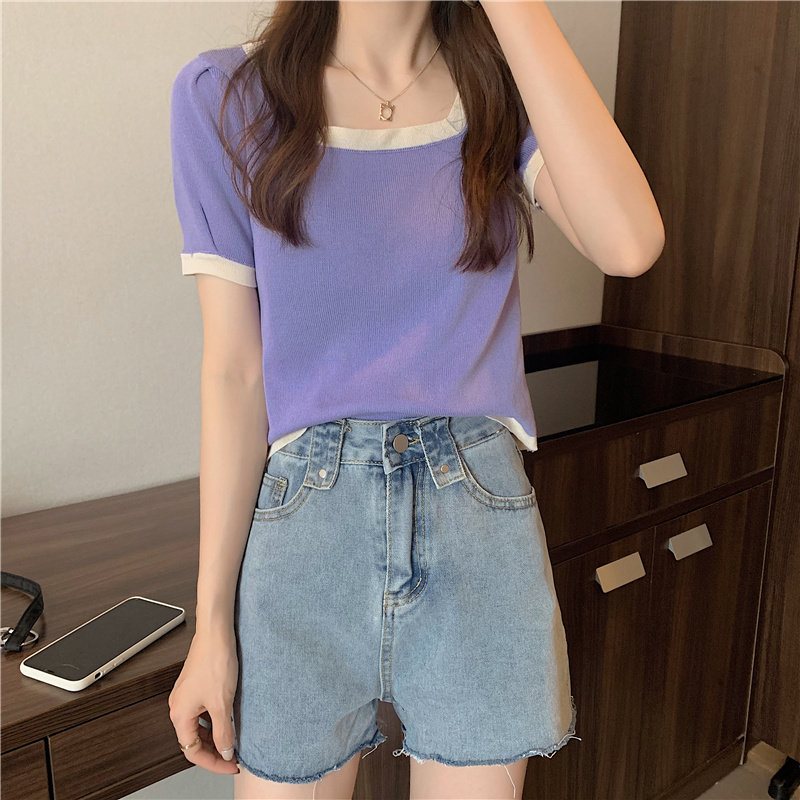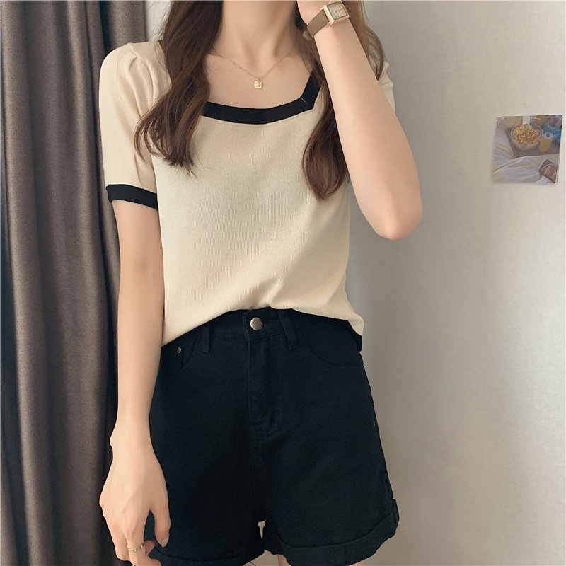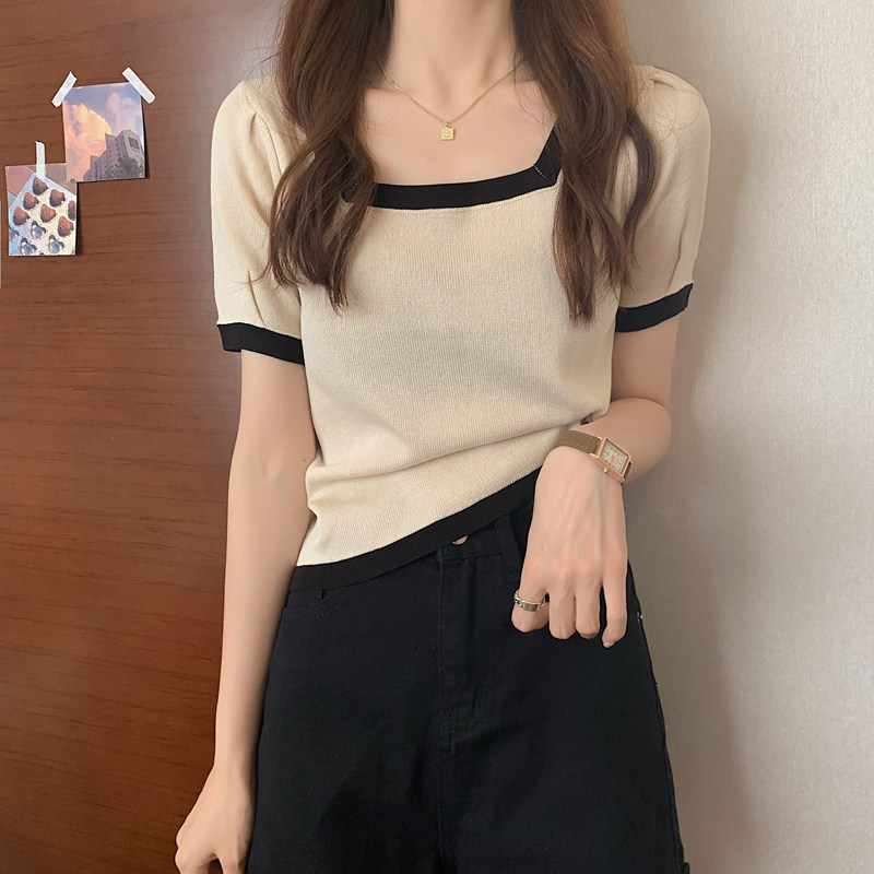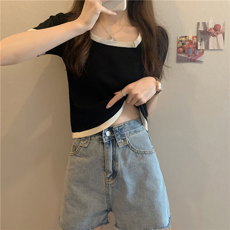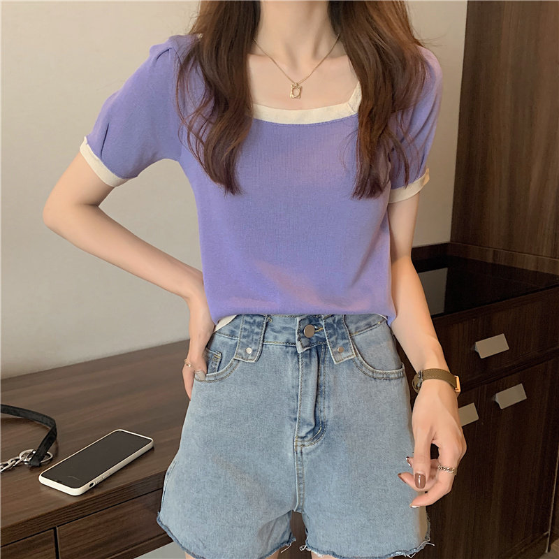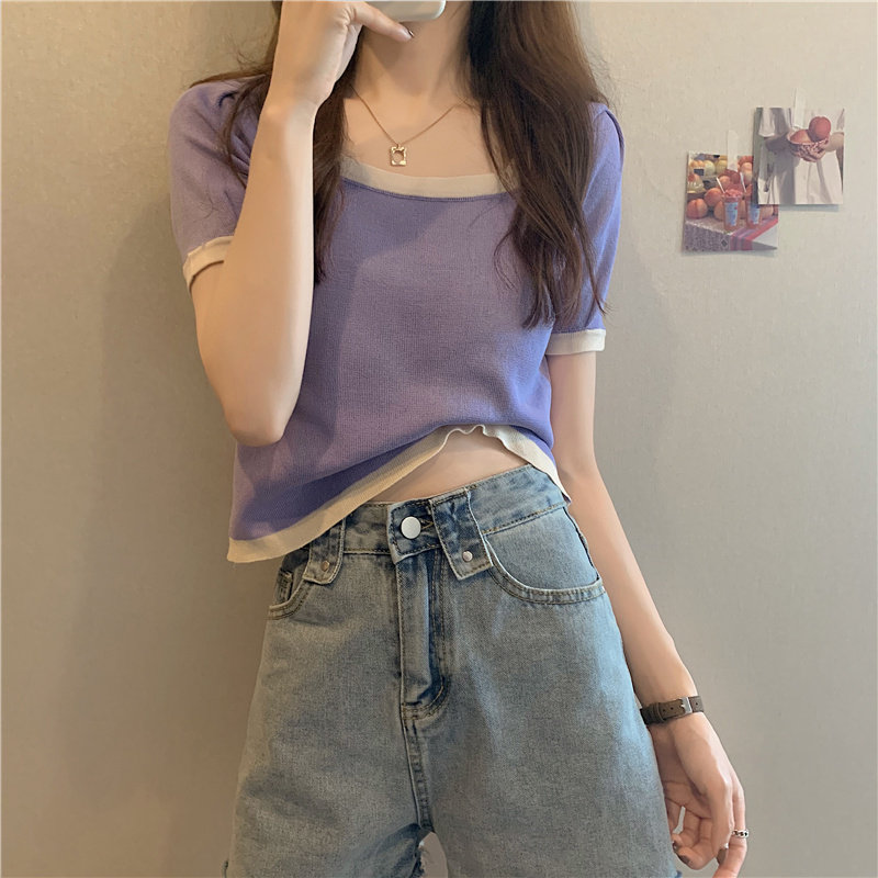Tide, летний тонкий трикотажный короткий свитер, шелковая футболка, облегающий крой, короткий рукав
