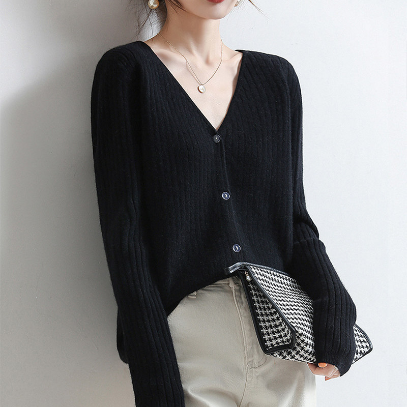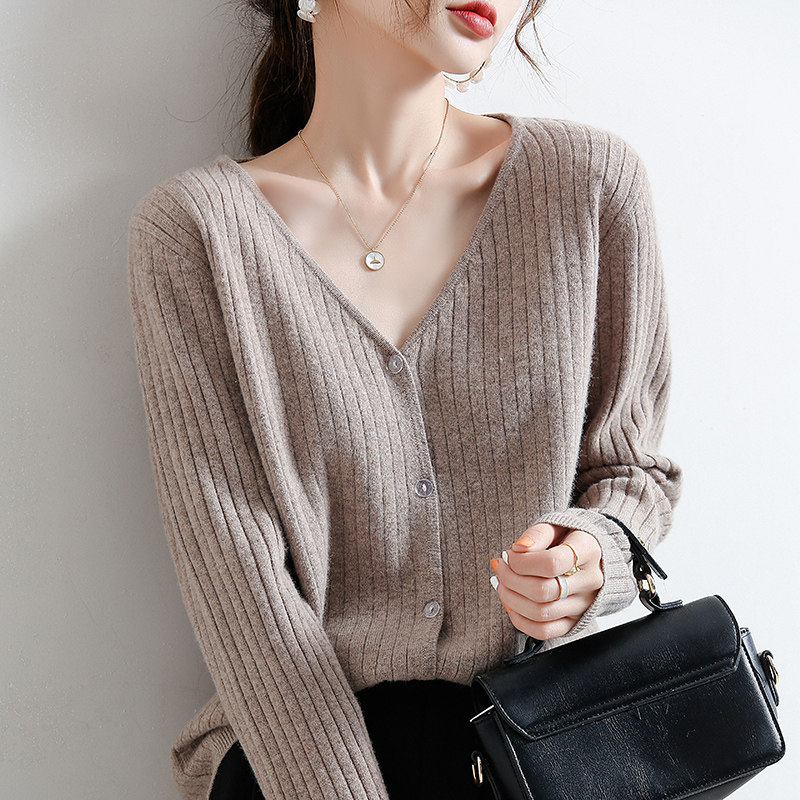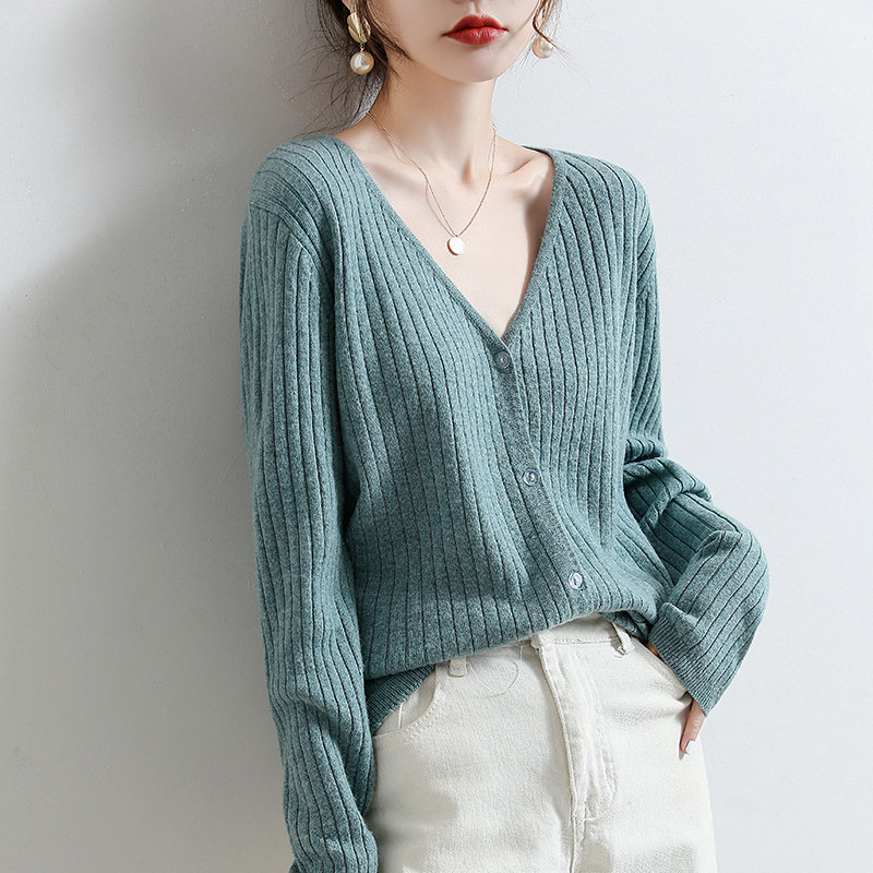 Осенний кардиган, куртка, шерстяной лонгслив, тонкий свитер, свободный крой, V-образный вырез