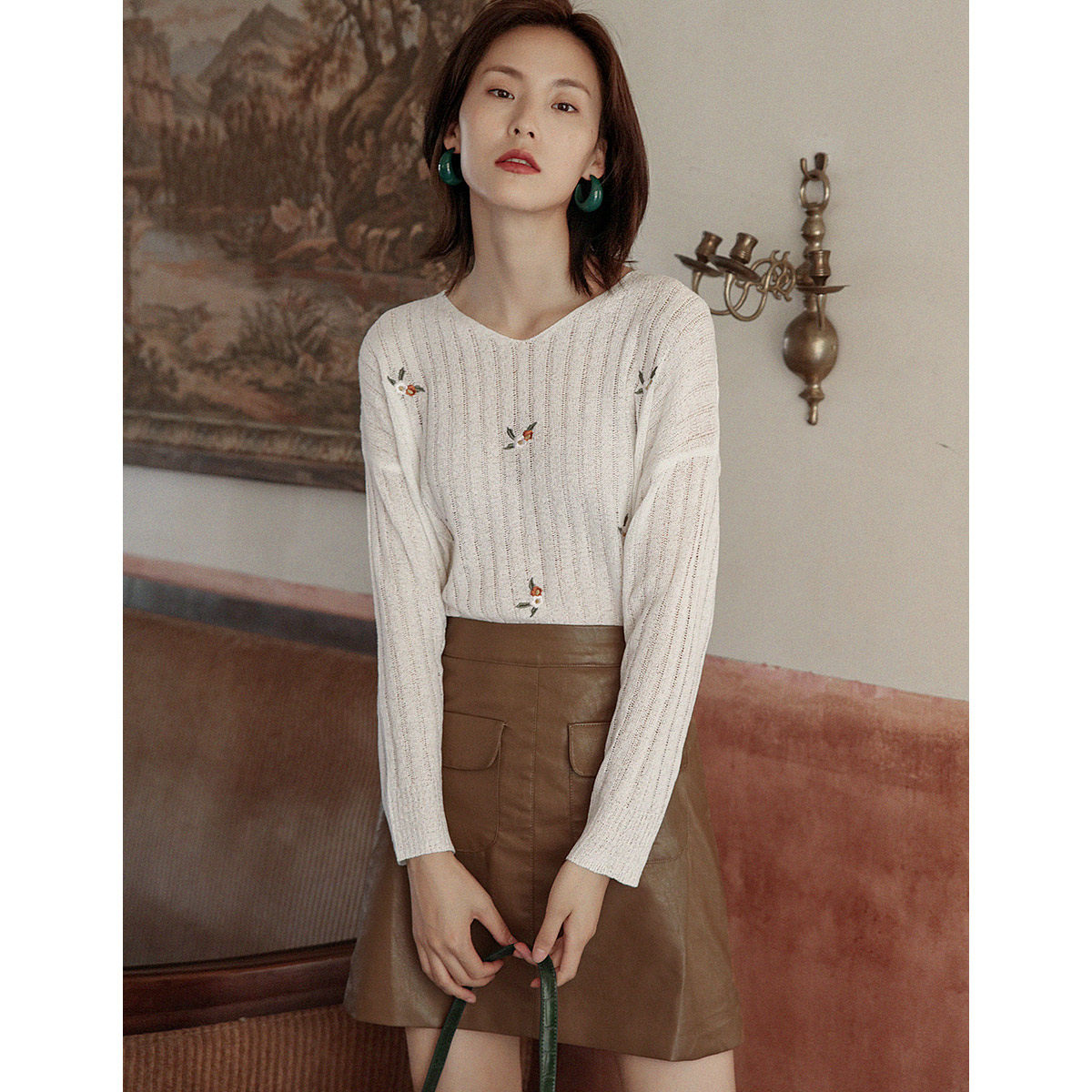 弥古 Летний белый трикотажный дизайнерский базовый приятный телу лонгслив, ретро футболка, тренд сезона, французский стиль, оверсайз