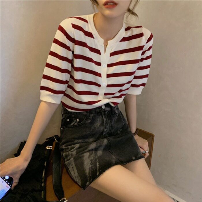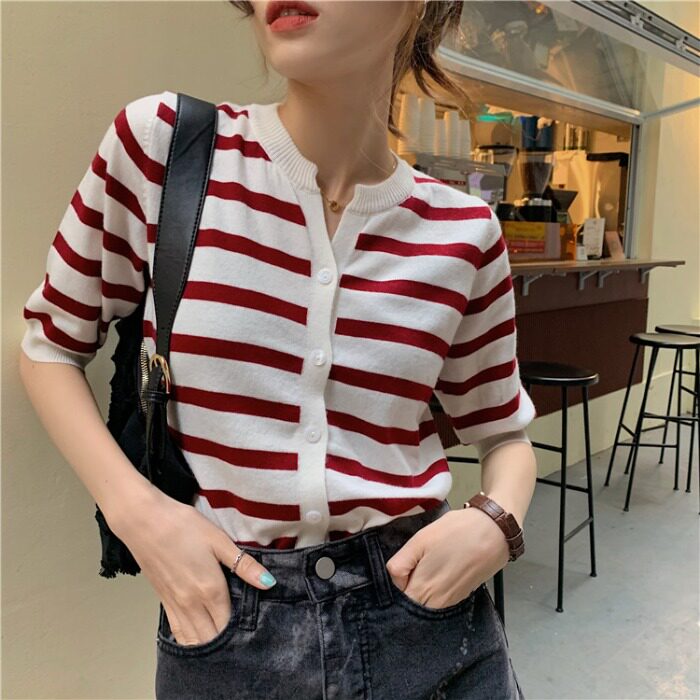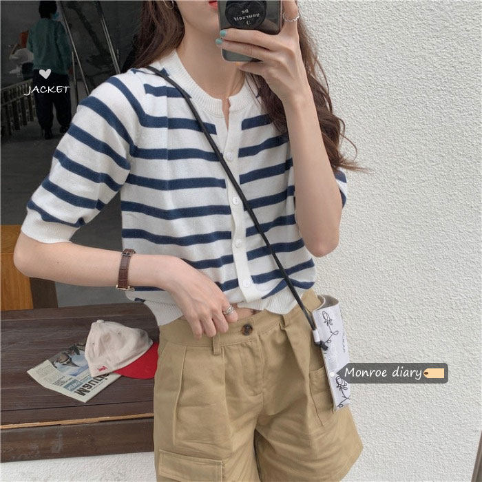 Трикотажный свитер, куртка, летний короткий кардиган, короткий рукав