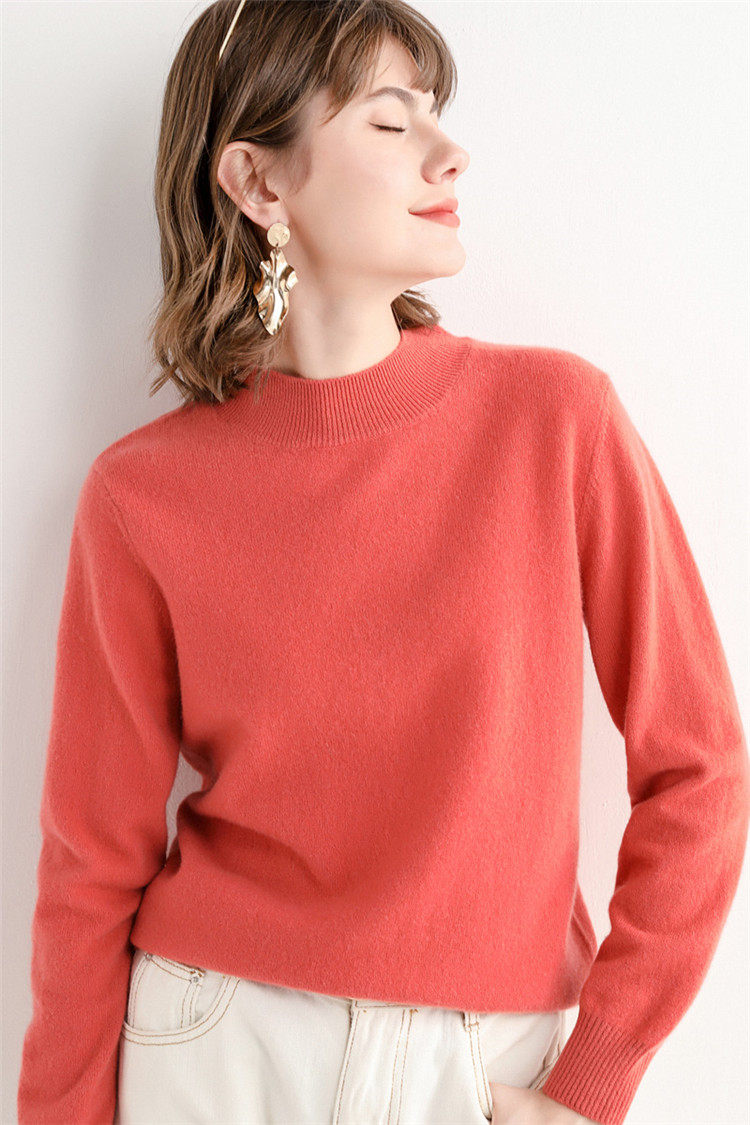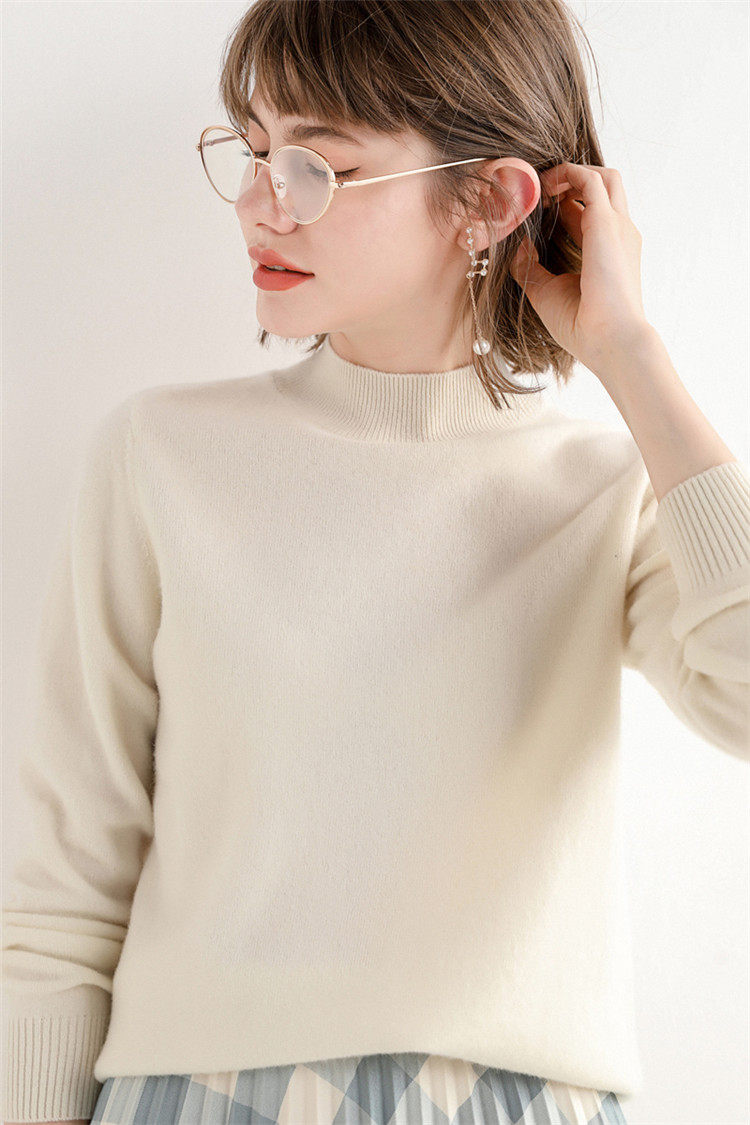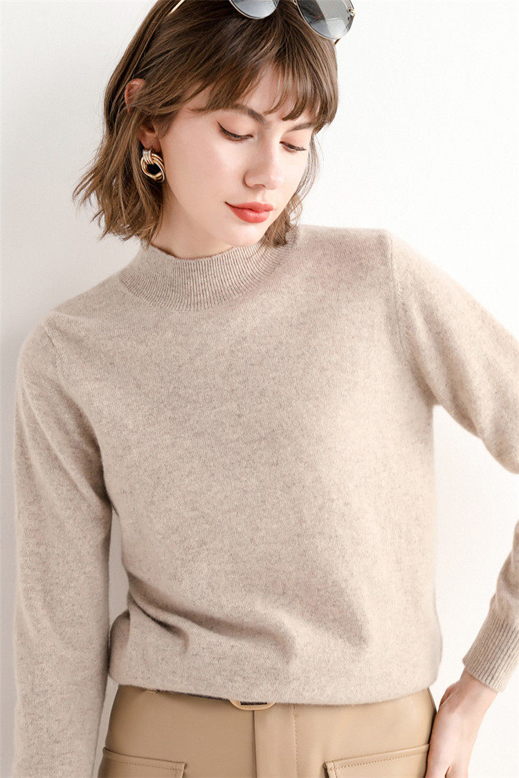 Шерстяной кашемировый демисезонный трикотажный свитер, высокий воротник, в западном стиле, свободный крой