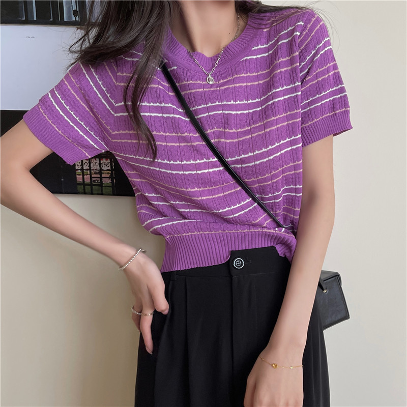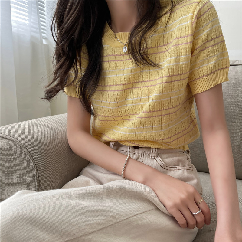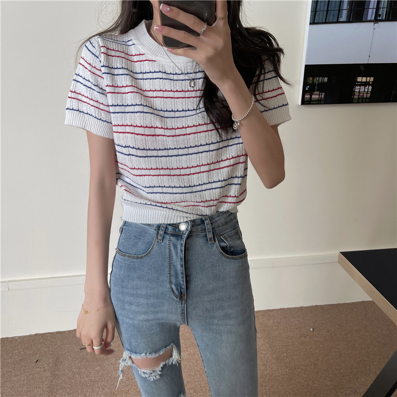 Tide, трикотажный свитер, летняя базовая приятная телу футболка, облегающий крой, коллекция 2021, короткий рукав