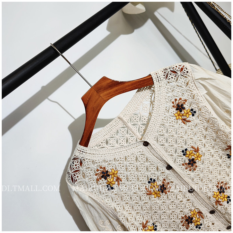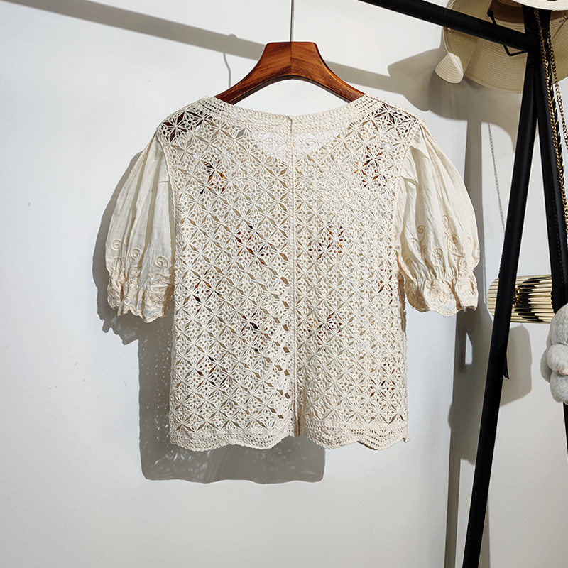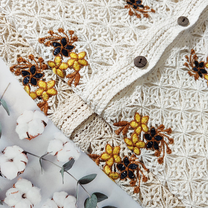 Ретро милый трикотажный кардиган, короткий рукав, с вышивкой, в цветочек