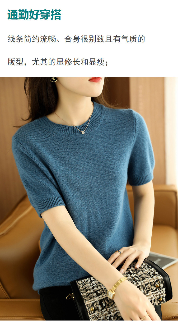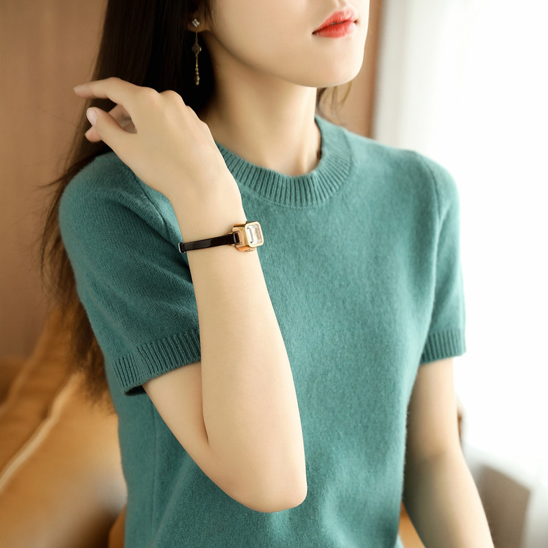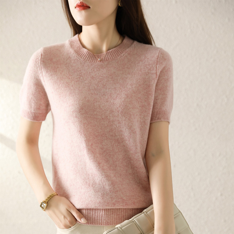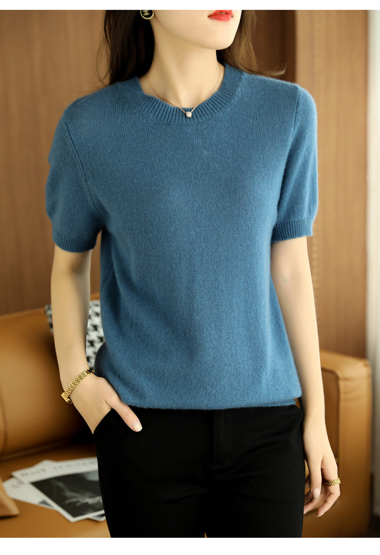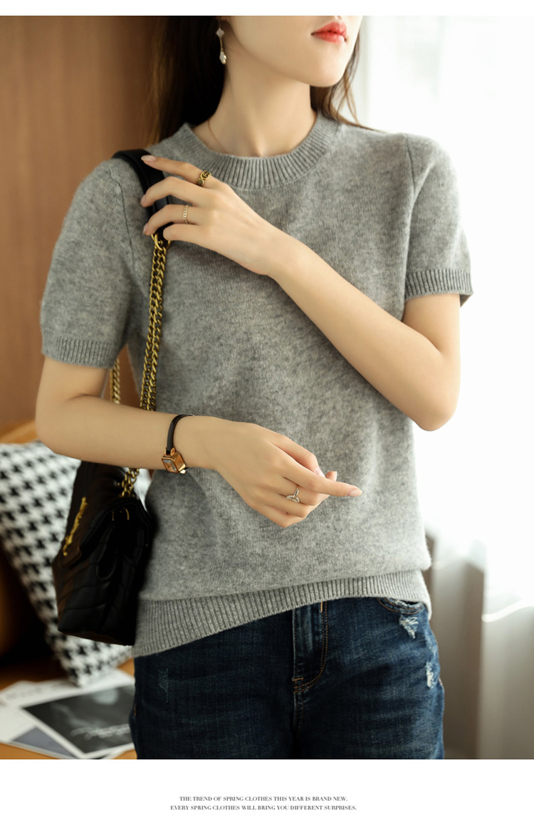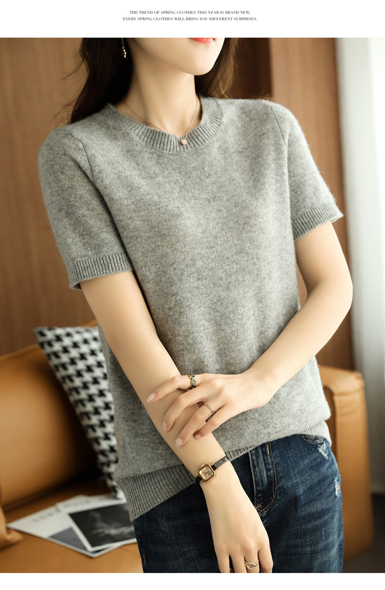 Весной, осенью и летом шерстяной женский свободный пуловер с коротким рукавом и круглым вырезом, короткая вязаная нижняя рубашка без кашемира с половиной рукава в корейском стиле