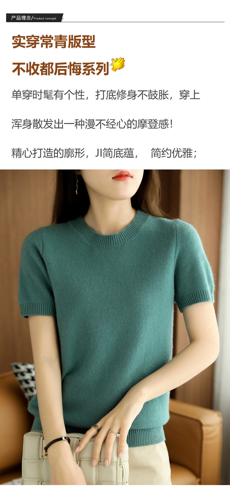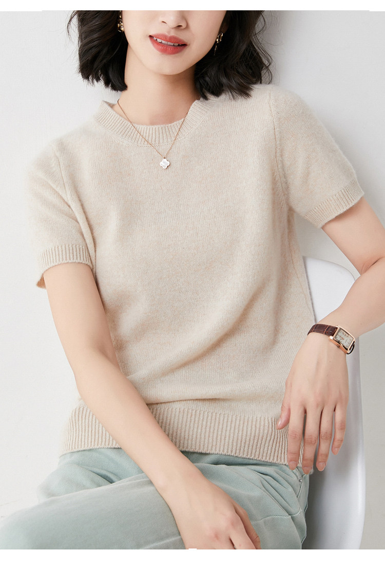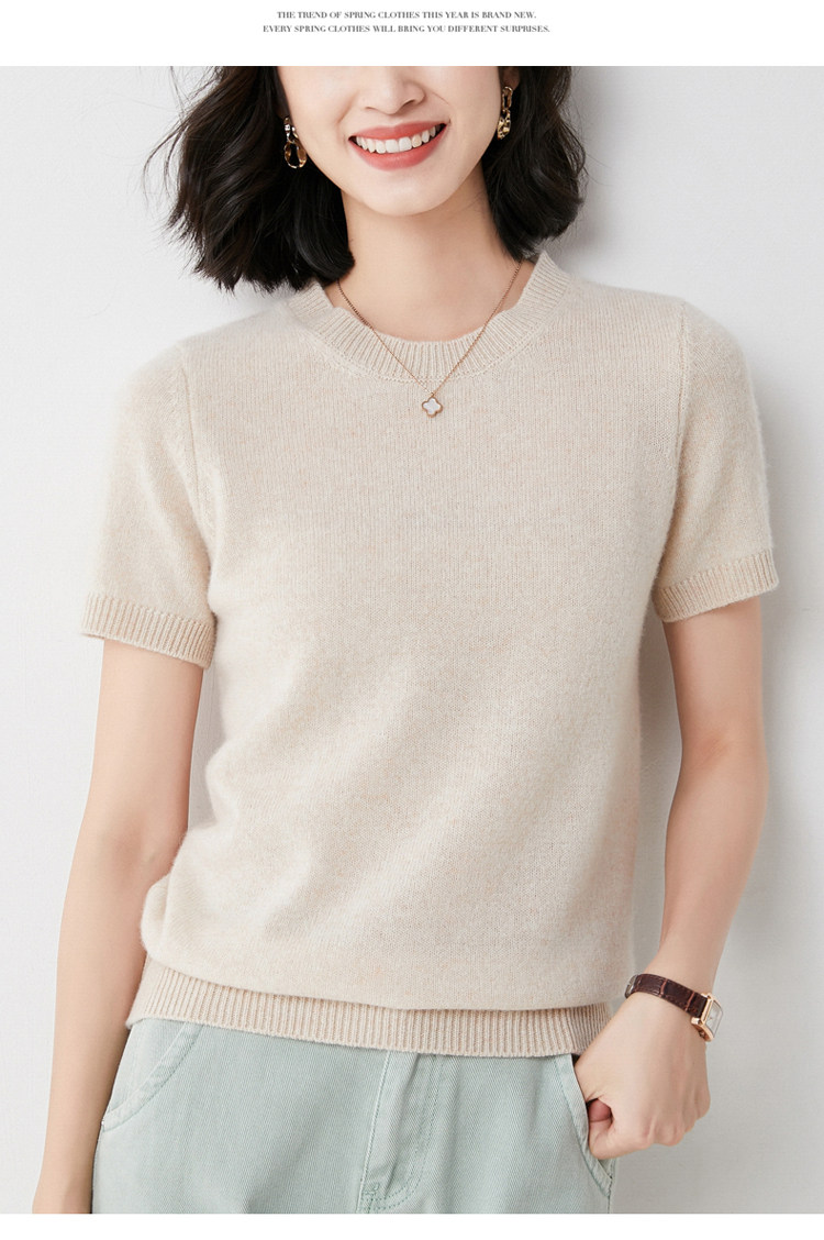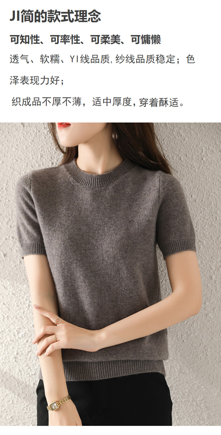 Весной, осенью и летом шерстяной женский свободный пуловер с коротким рукавом и круглым вырезом, короткая вязаная нижняя рубашка без кашемира с половиной рукава в корейском стиле