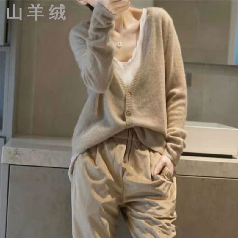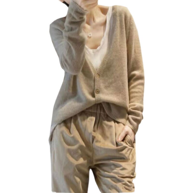 Кашемировый кардиган, тонкая куртка, трикотажный свитер, лонгслив, оверсайз, V-образный вырез