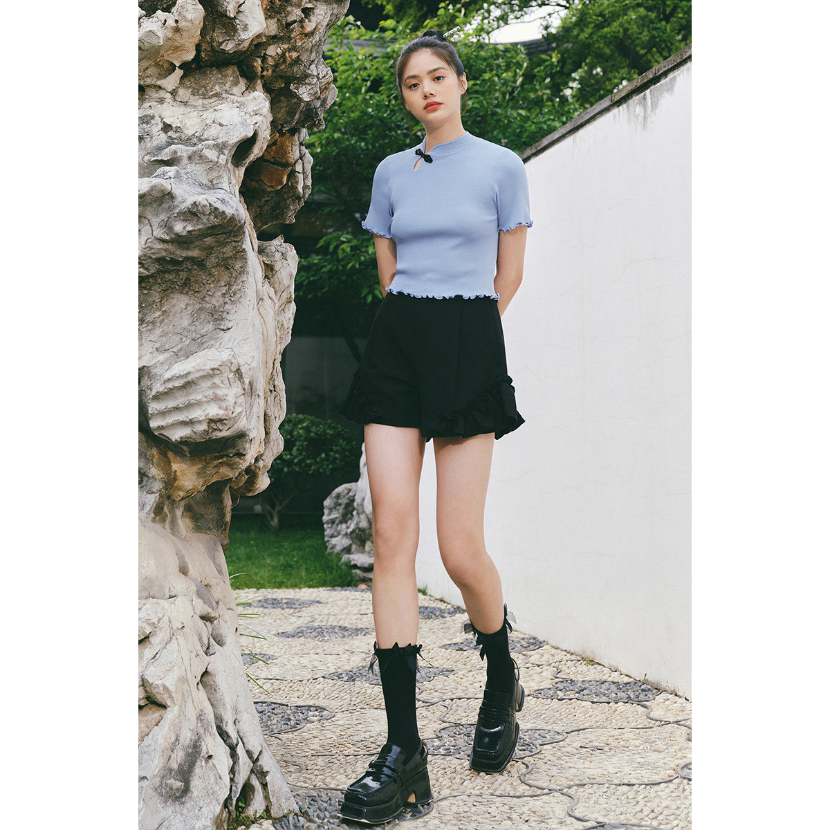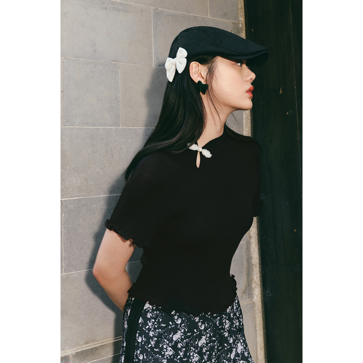 Tide, булавка, свитер, черная летняя одежда, футболка с коротким рукавом, сезон 2021, облегающий крой