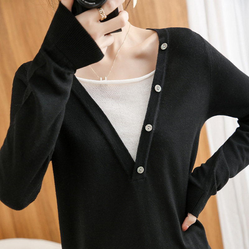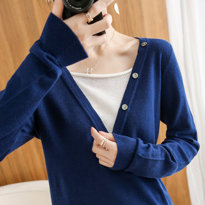 Демисезонный трикотажный свитер, шерстяной тонкий комплект, короткий лонгслив, коллекция 2021, V-образный вырез, в корейском стиле