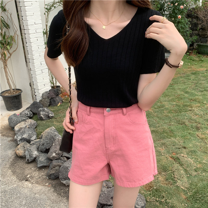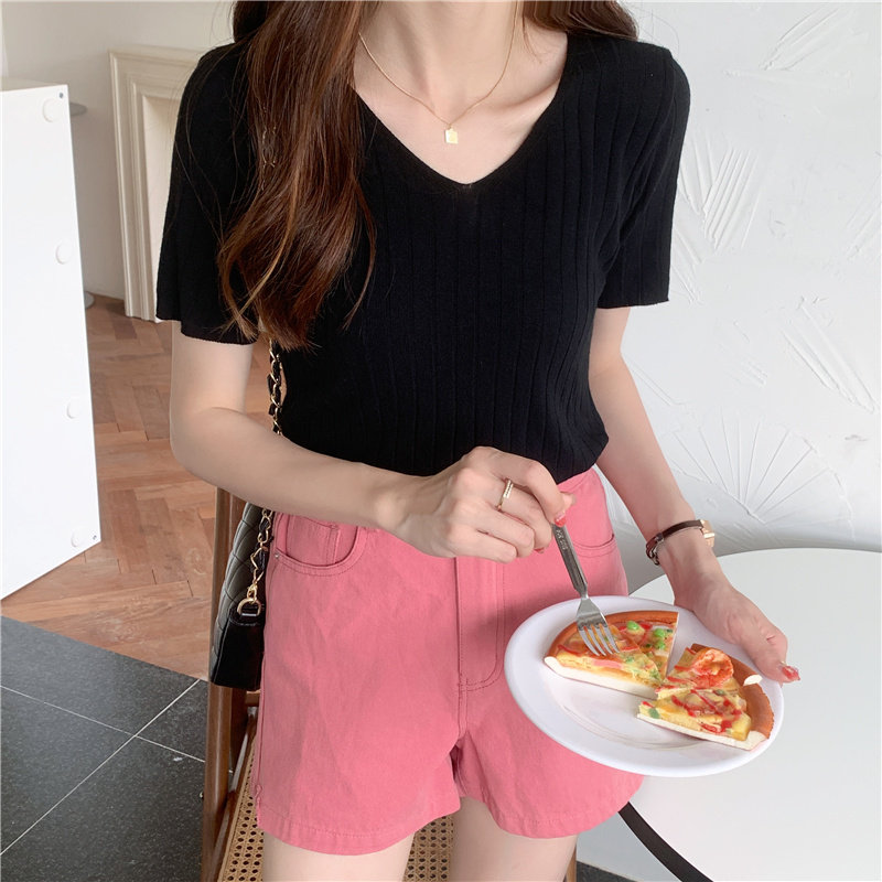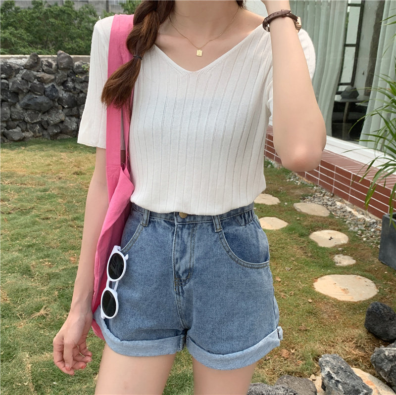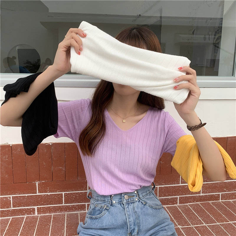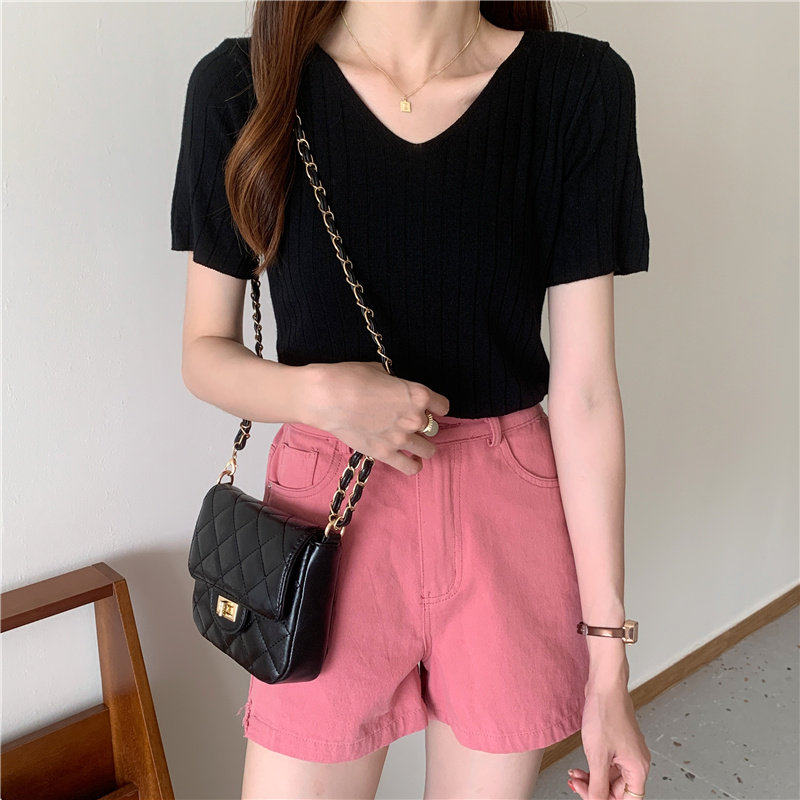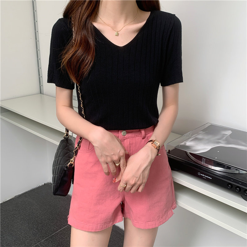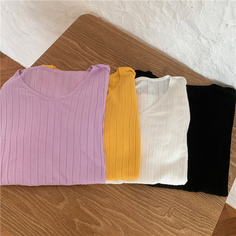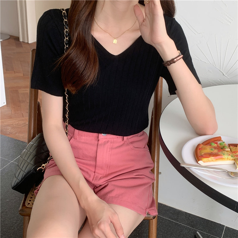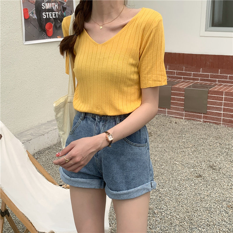 Tide, летний тонкий шелковый трикотажный свитер, футболка с коротким рукавом, коллекция 2021, свободный крой, V-образный вырез