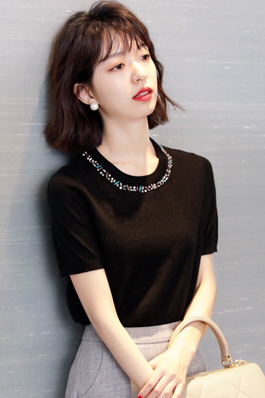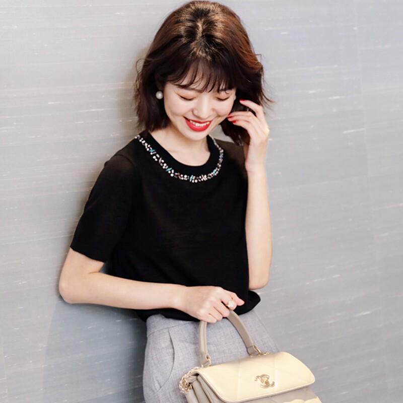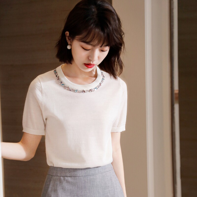 Голуерджи модный и нежный любовный шерстяной свитер с короткими рукавами для женщин Летний темперамент, свободный и тонкий