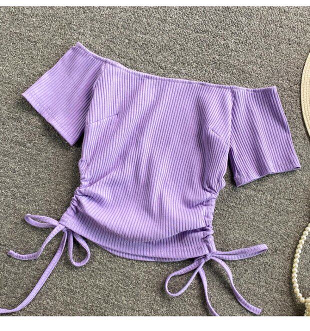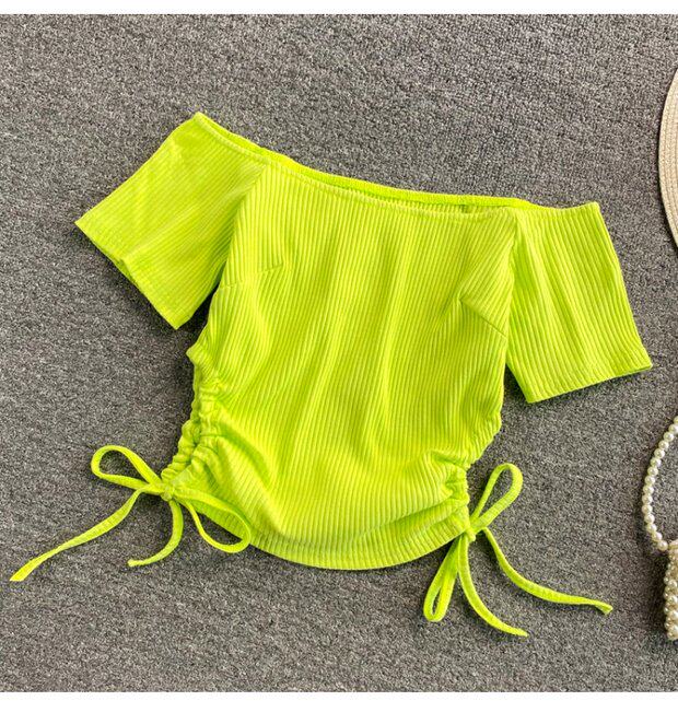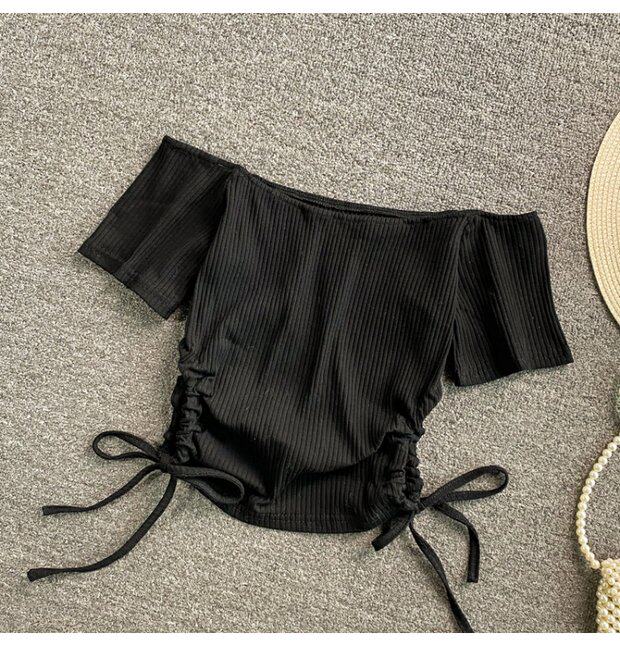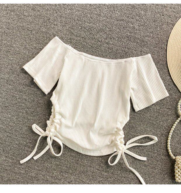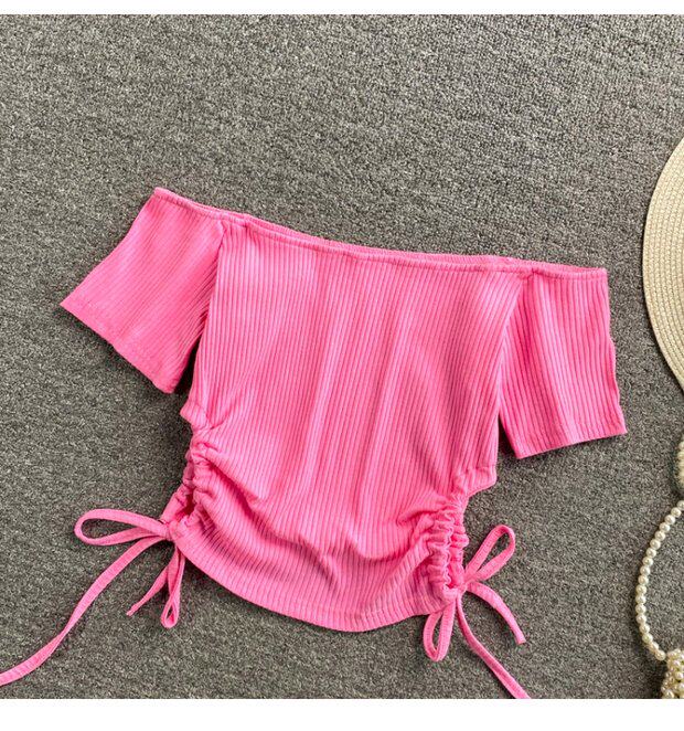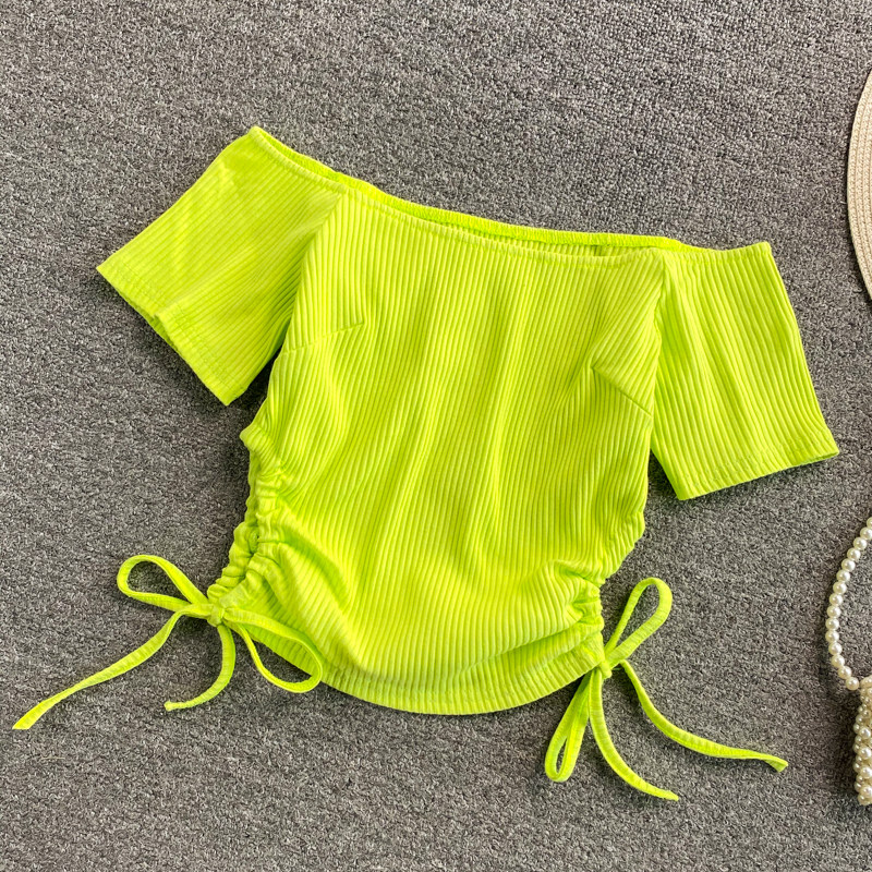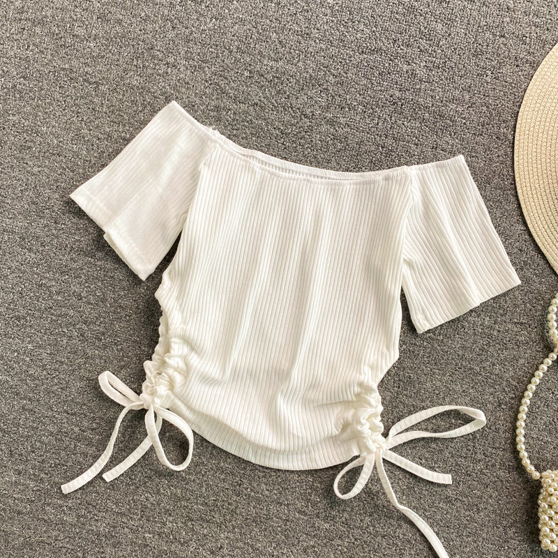 Летний короткий брендовый сексуальный трикотажный свитер, открытые плечи, короткий рукав