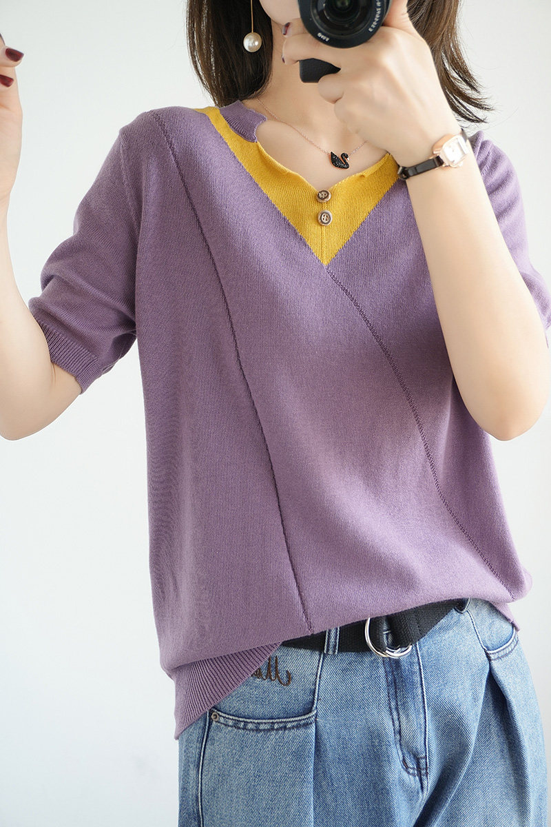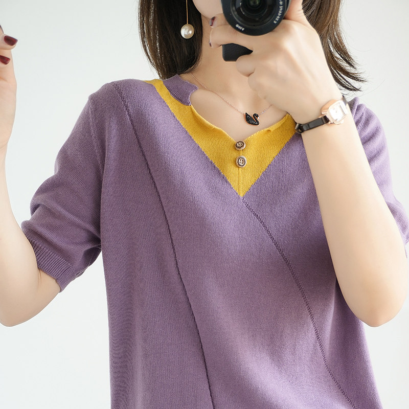 Летняя хлопковая трикотажная футболка с коротким рукавом, трикотажный базовый приятный телу жилет, сезон 2021, V-образный вырез, свободный крой