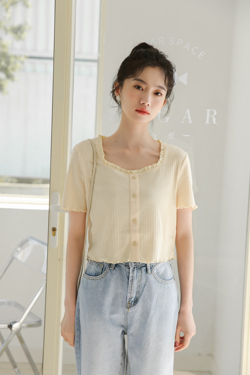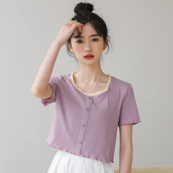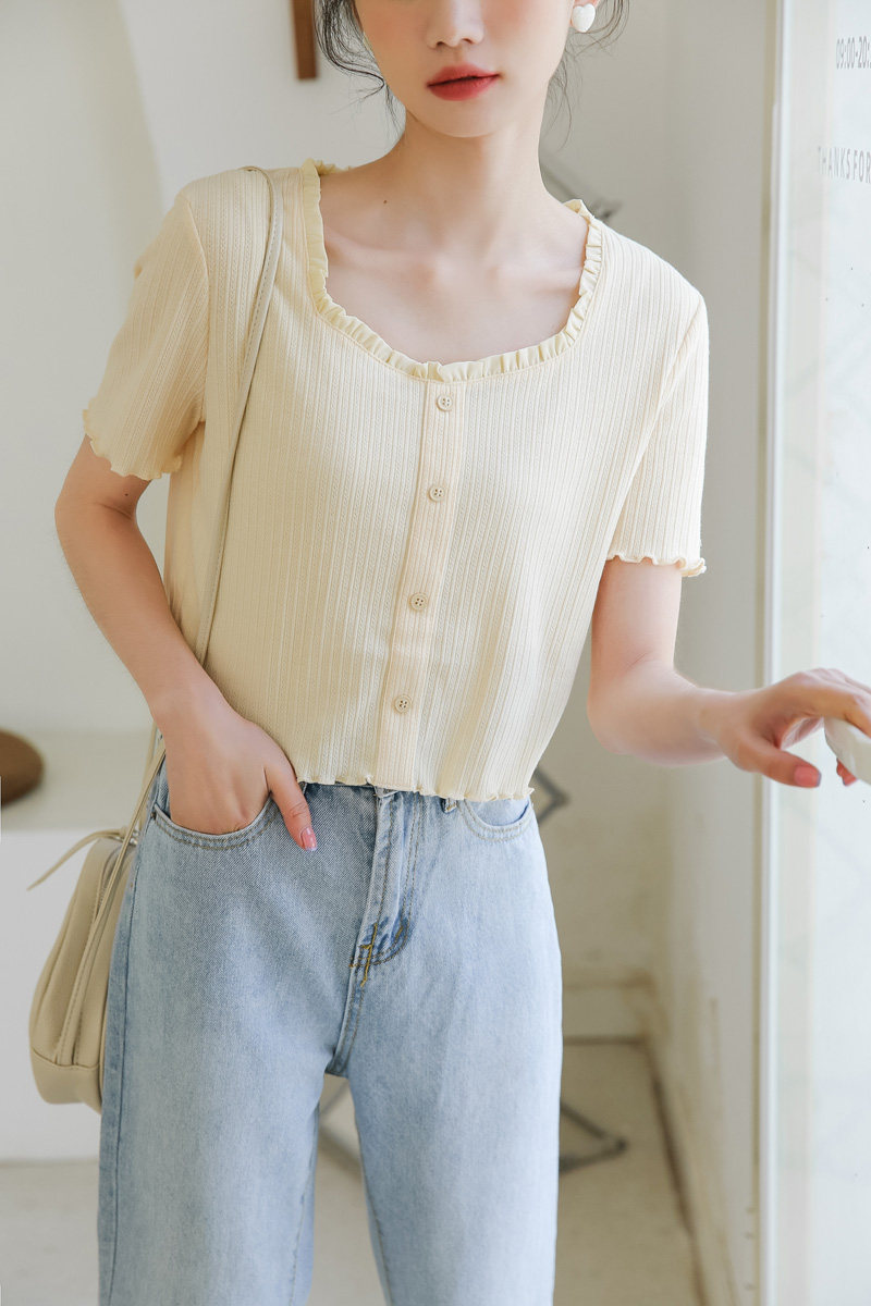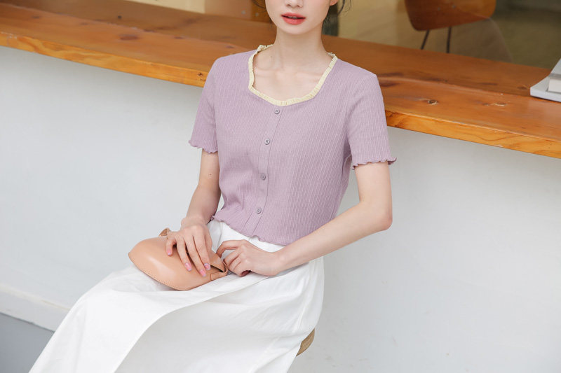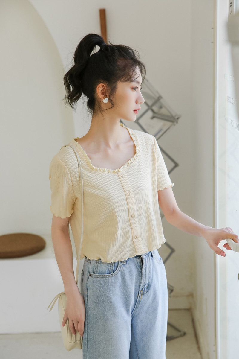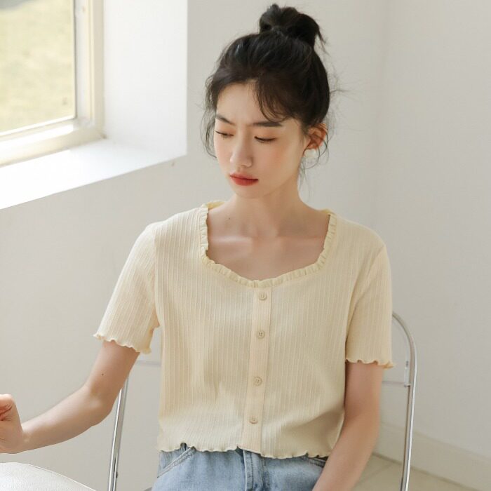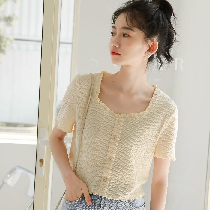 Трикотажный дизайнерский короткий милый летний свитер, тренд сезона, квадратный вырез