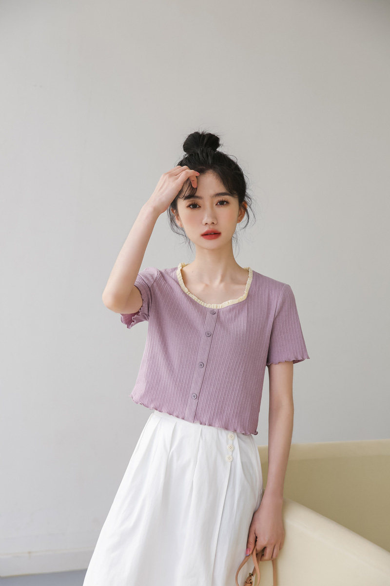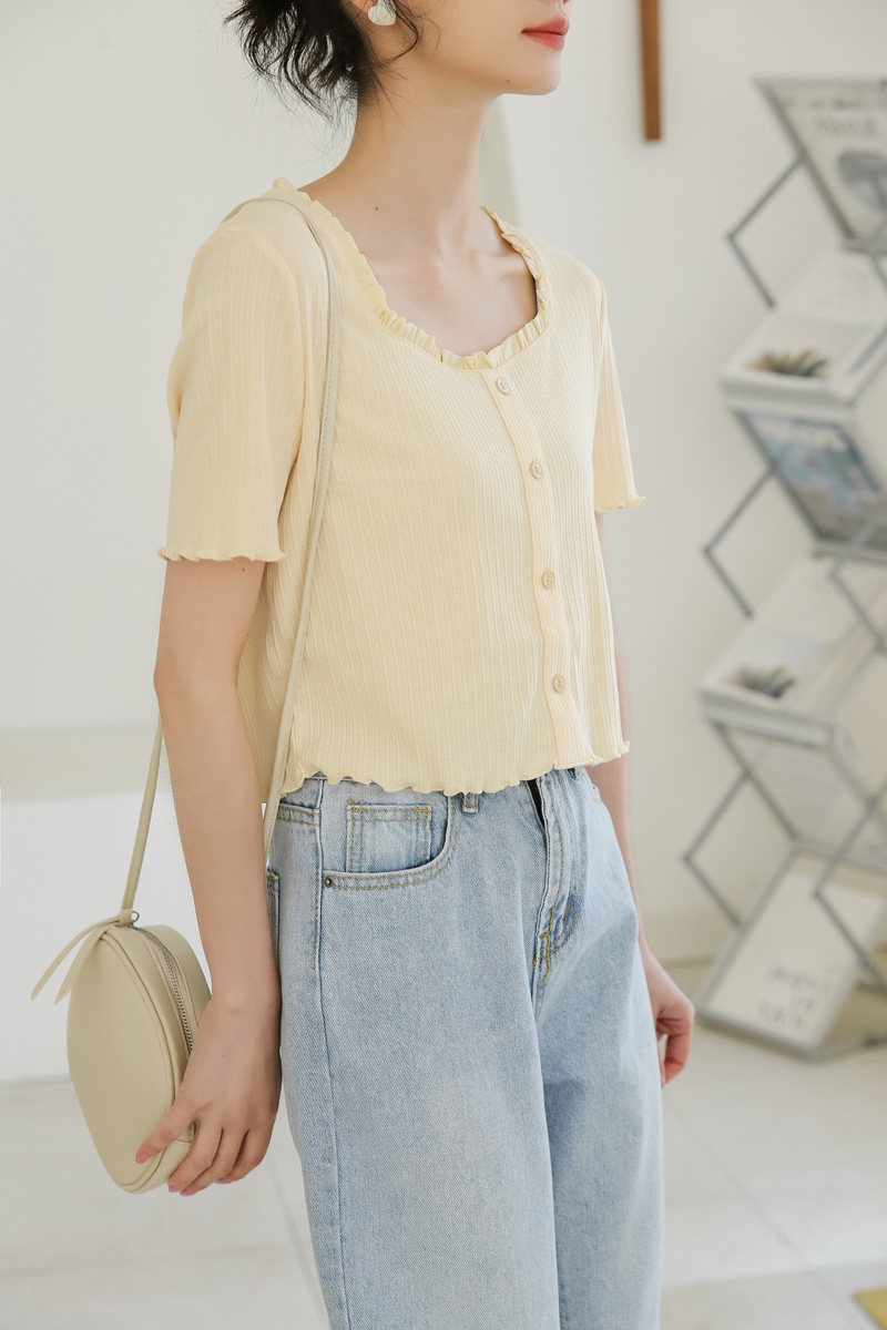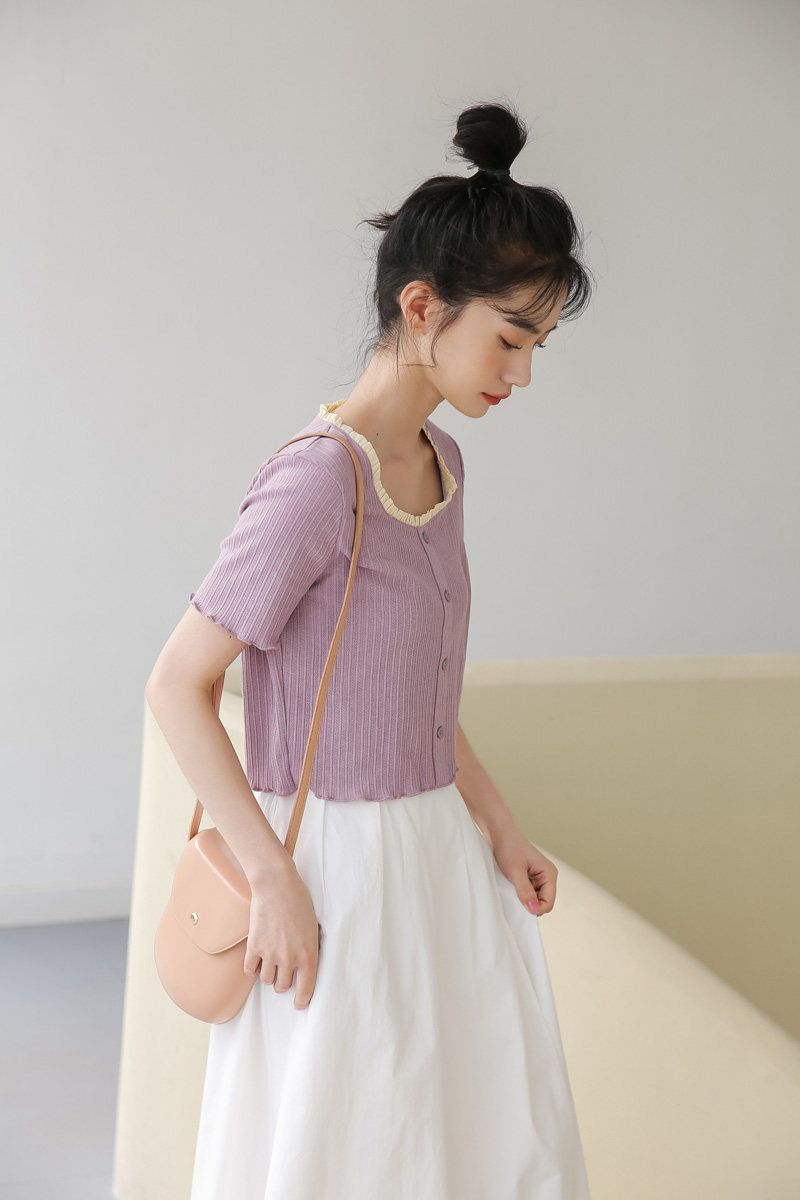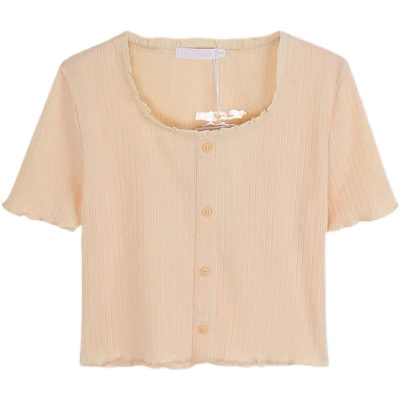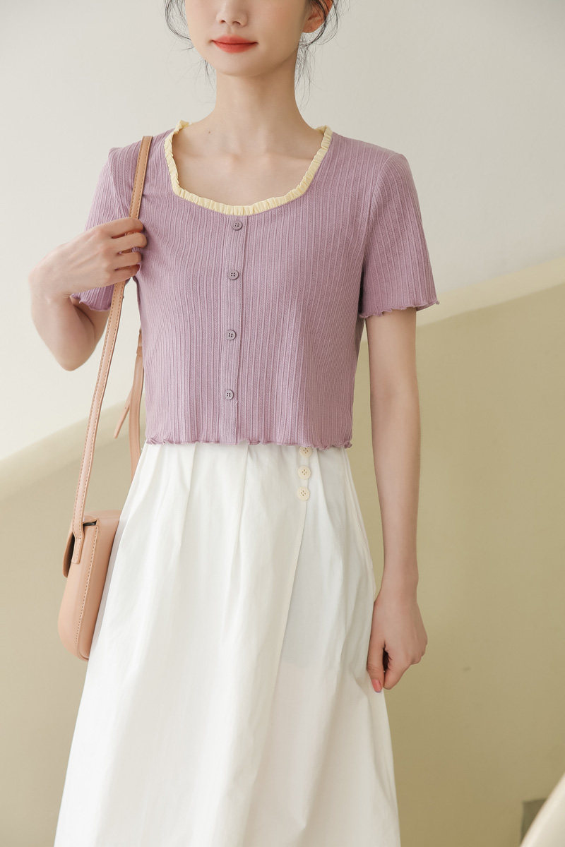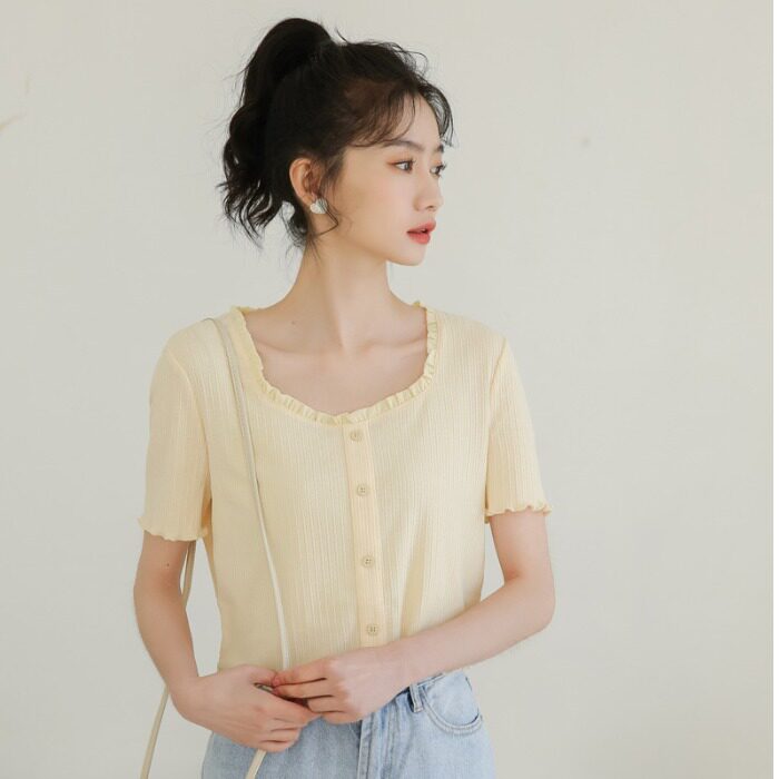 Трикотажный дизайнерский короткий милый летний свитер, тренд сезона, квадратный вырез