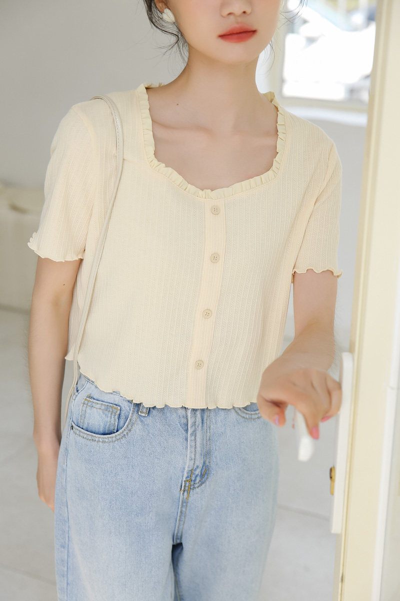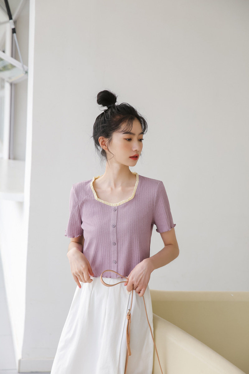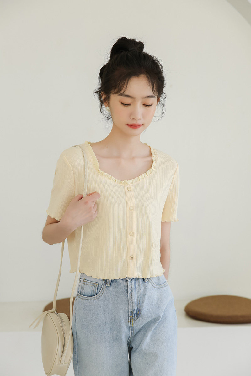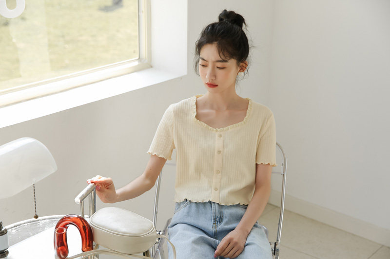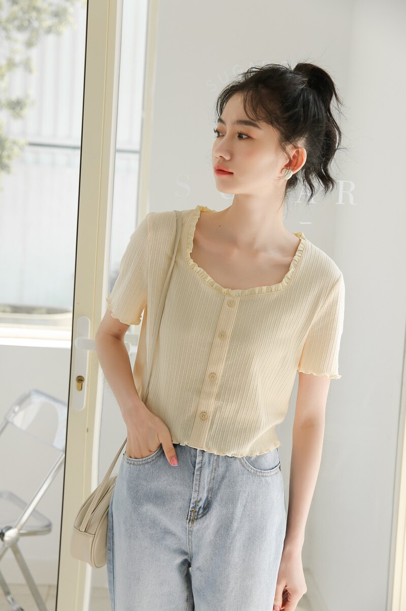 Трикотажный дизайнерский короткий милый летний свитер, тренд сезона, квадратный вырез