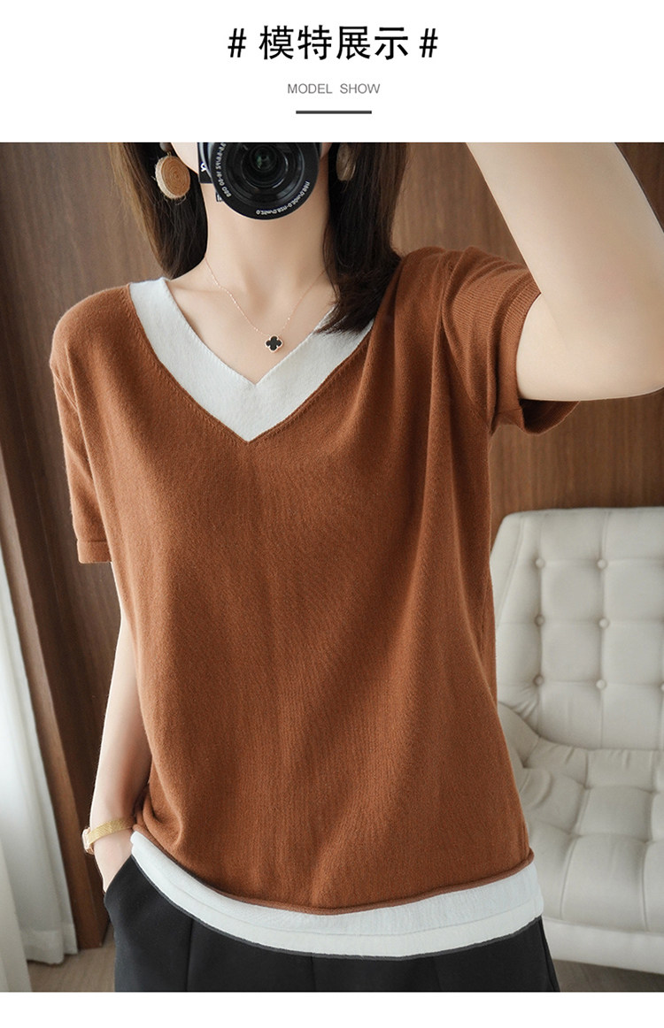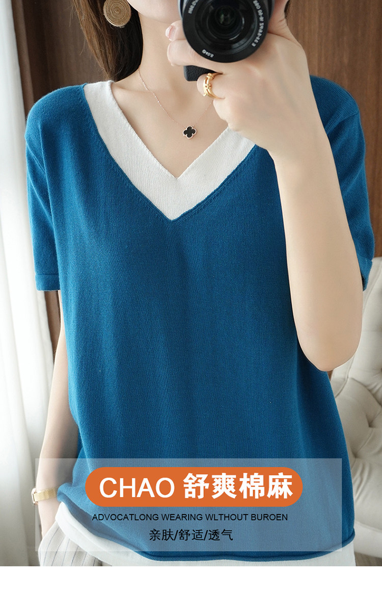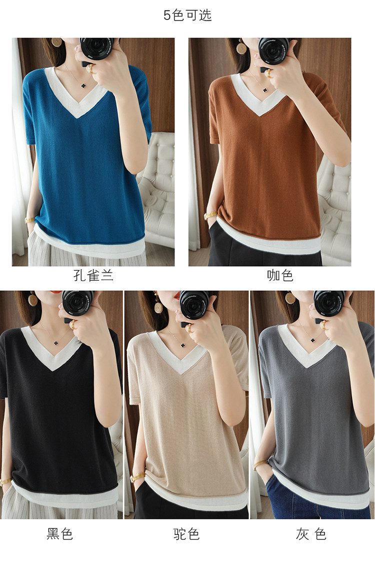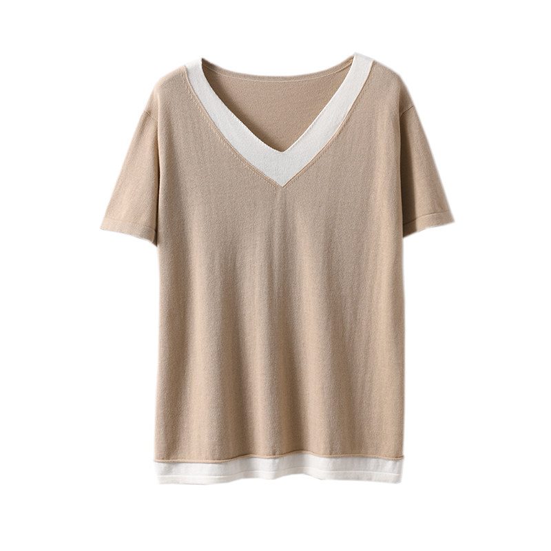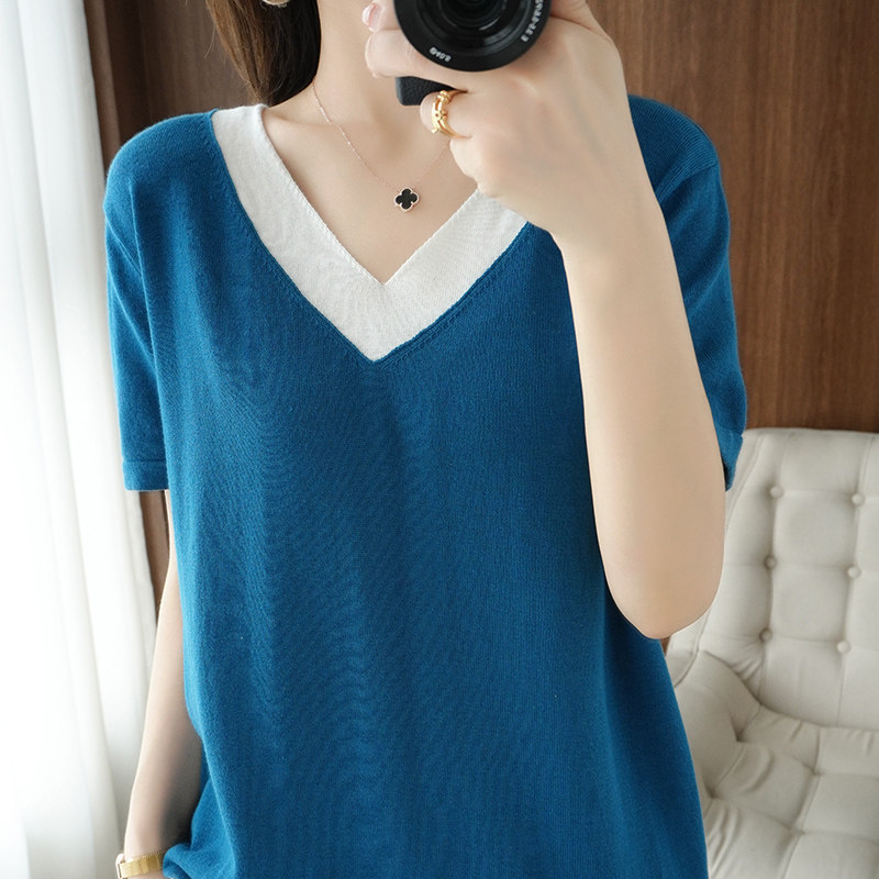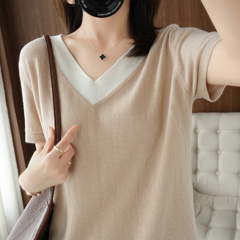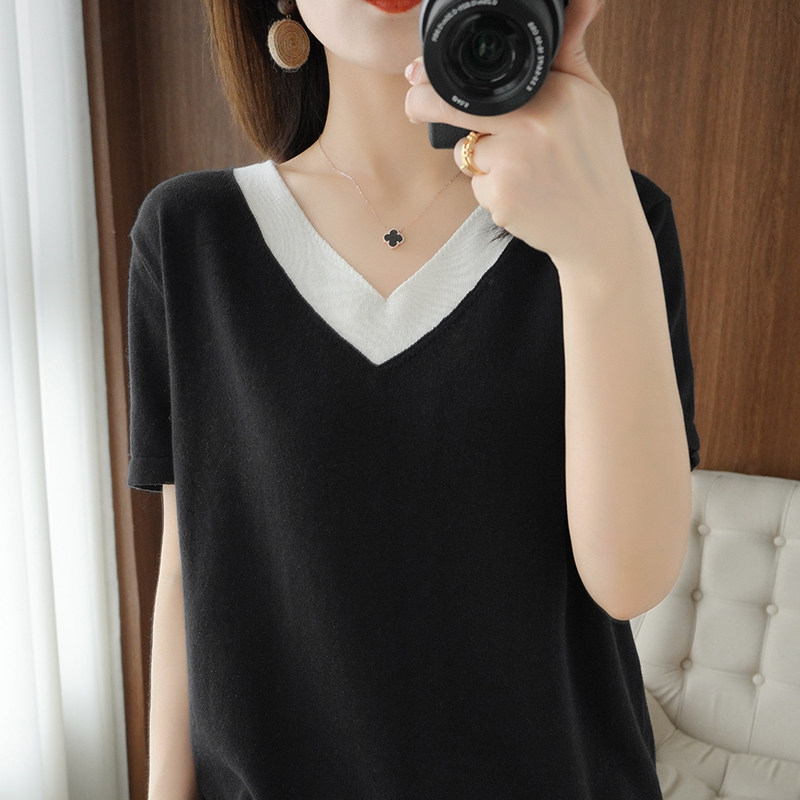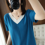 Хлопковый комплект, тонкая летняя футболка с коротким рукавом, трикотажная короткая рубашка, V-образный вырез