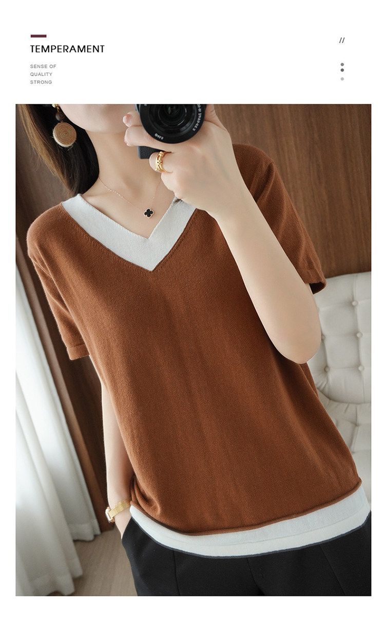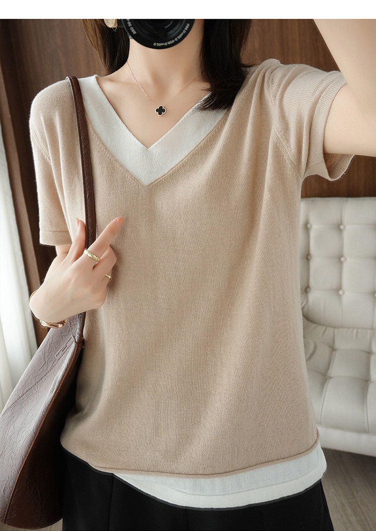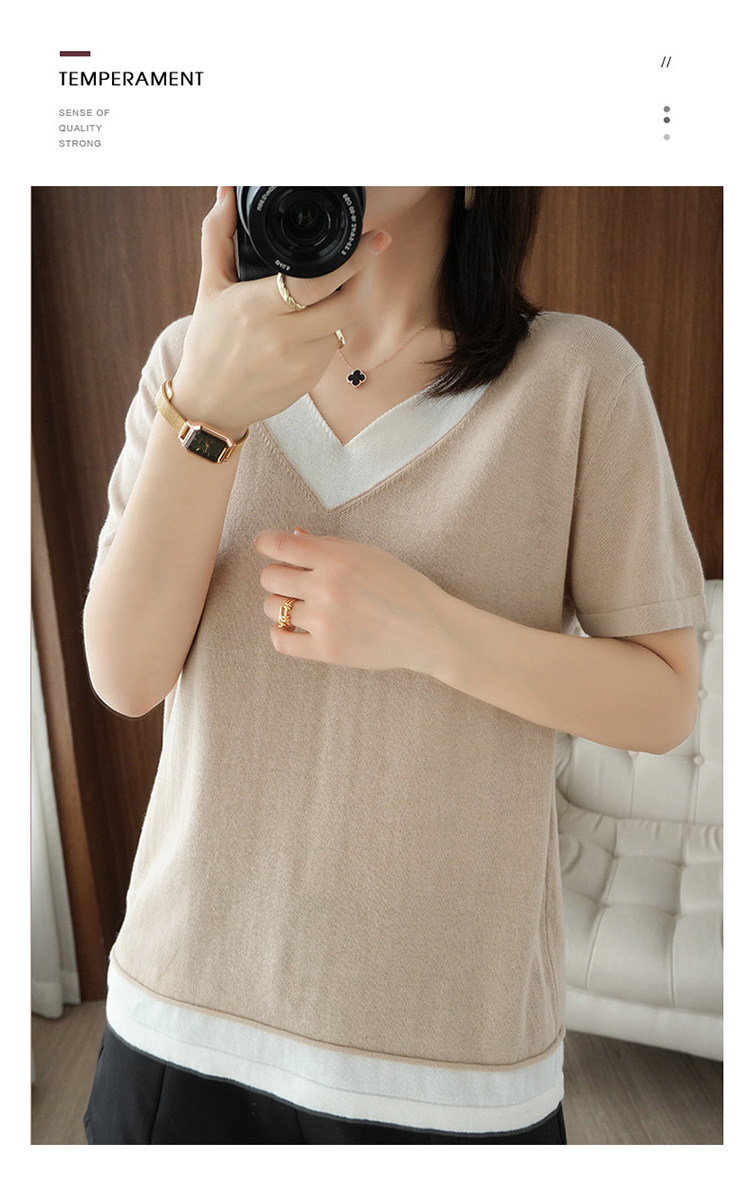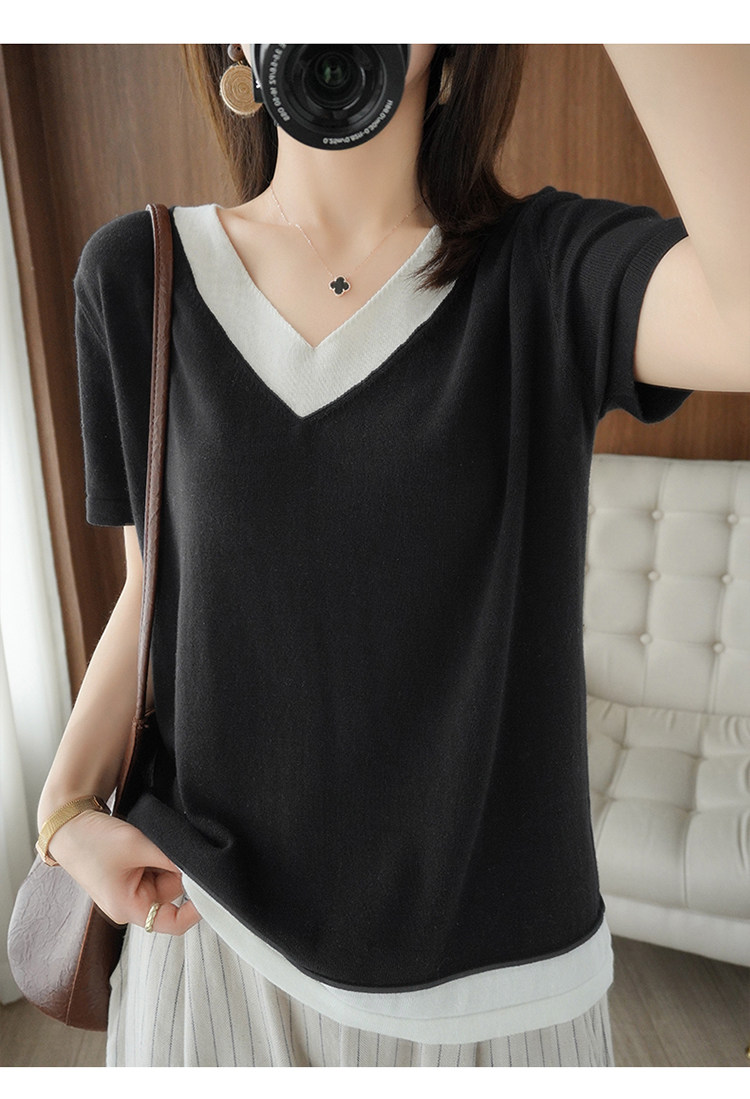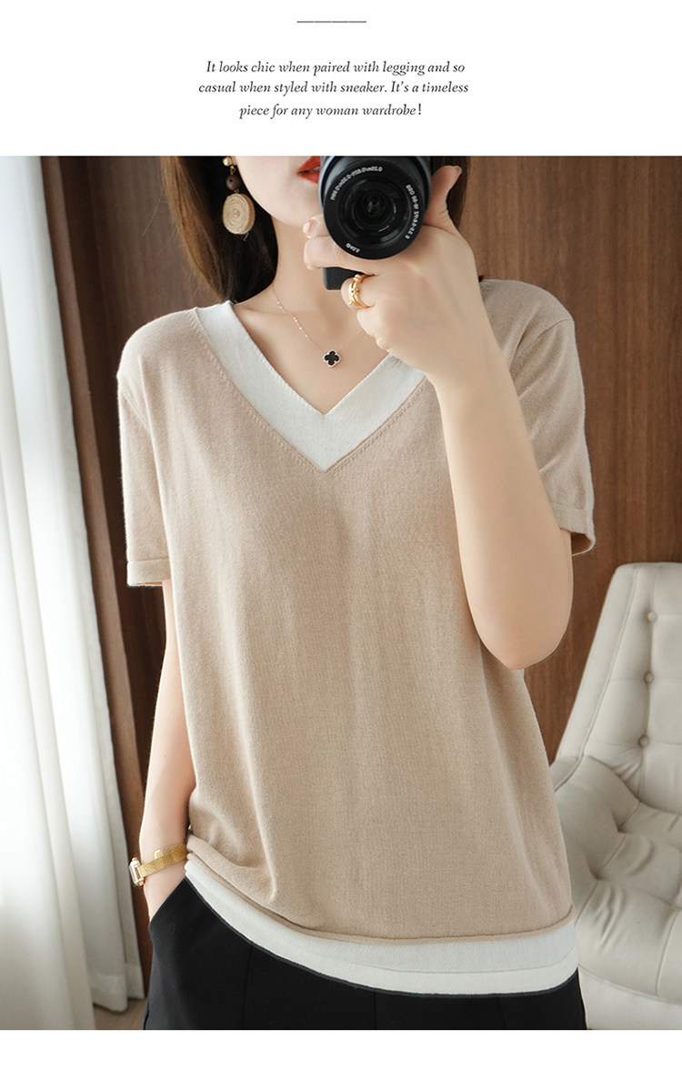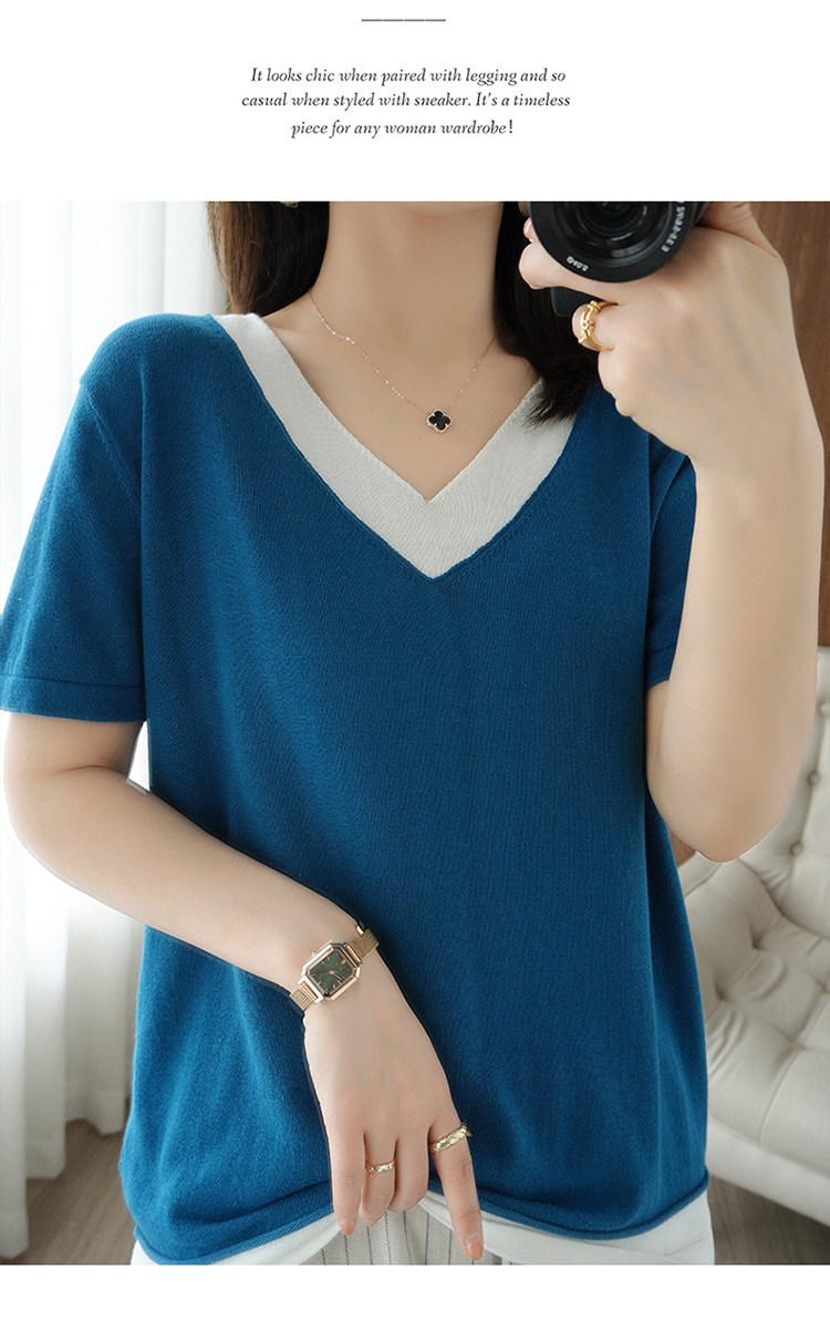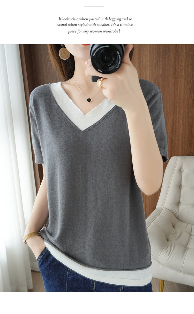 Хлопковый комплект, тонкая летняя футболка с коротким рукавом, трикотажная короткая рубашка, V-образный вырез