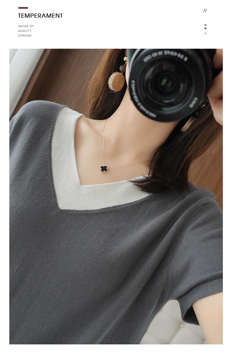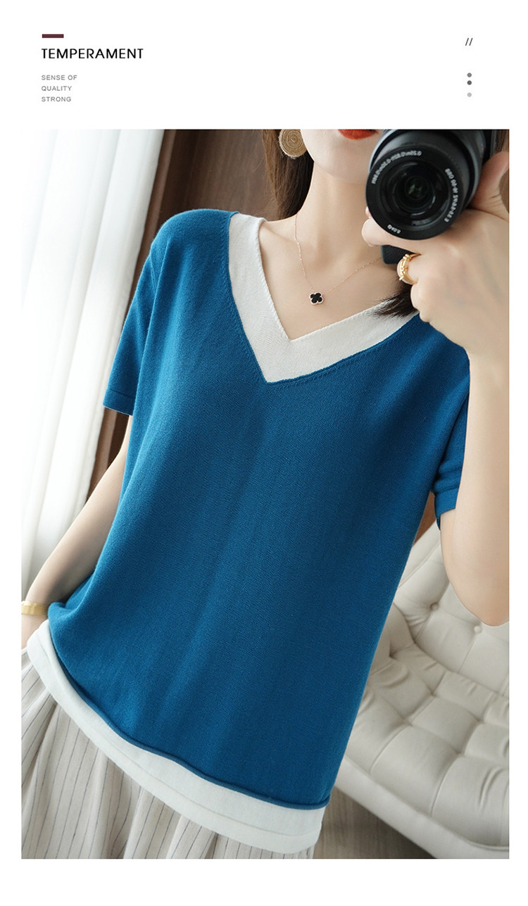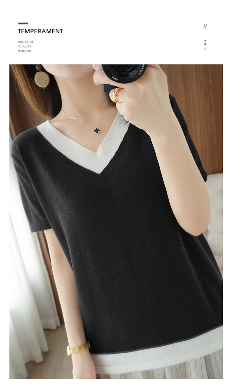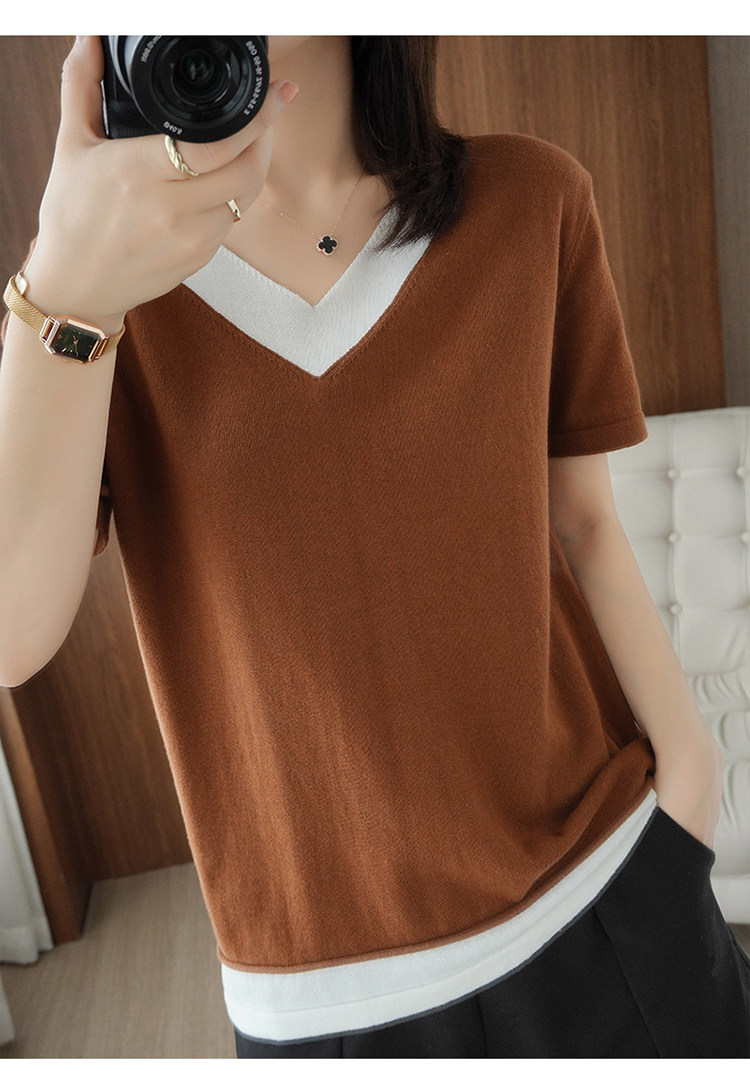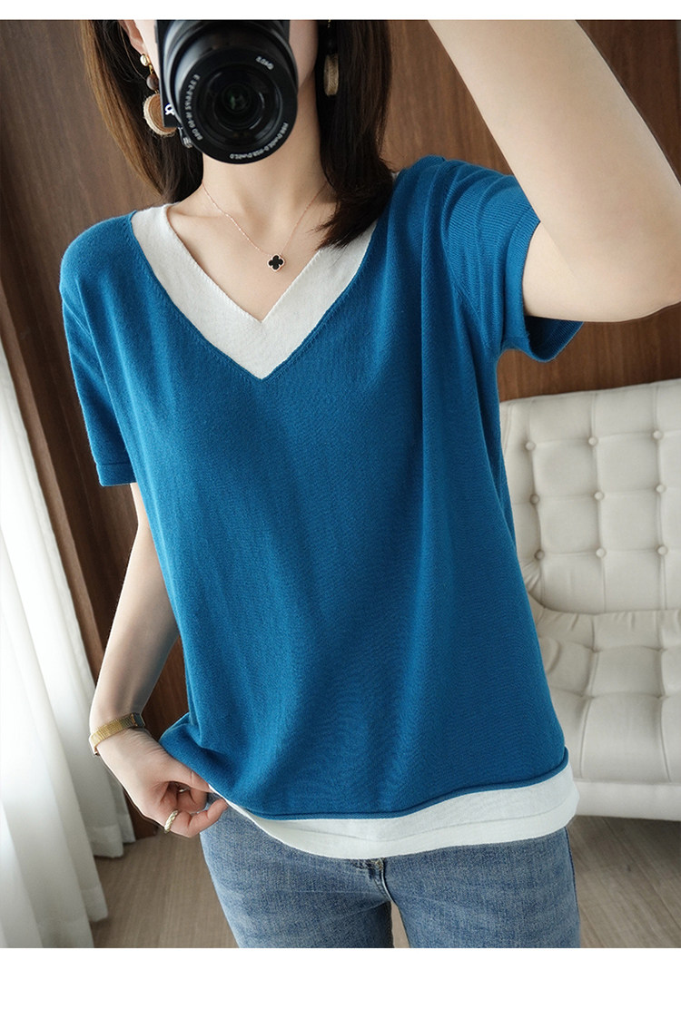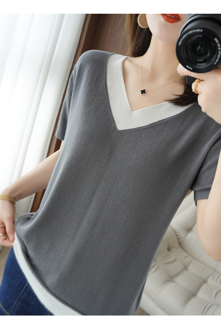 Хлопковый комплект, тонкая летняя футболка с коротким рукавом, трикотажная короткая рубашка, V-образный вырез