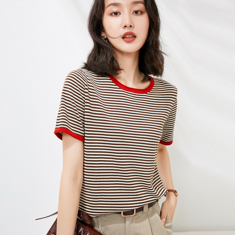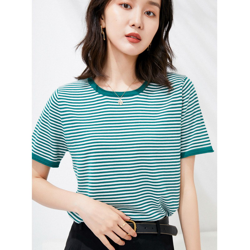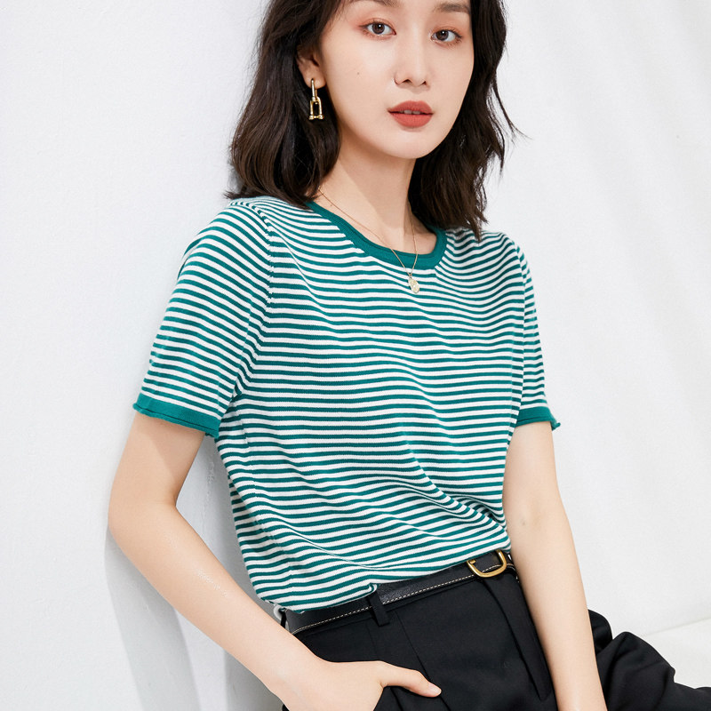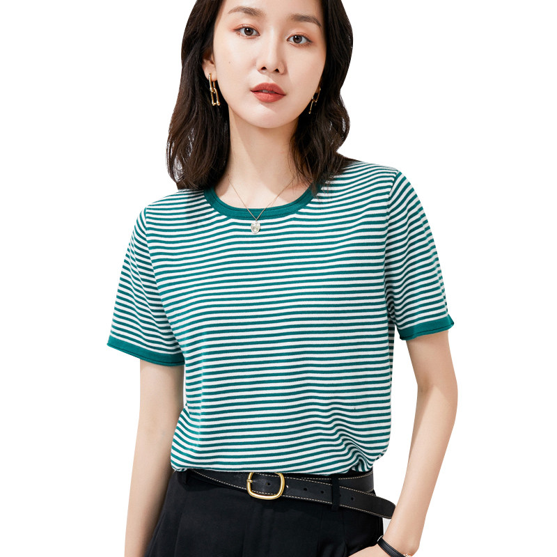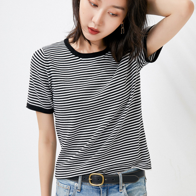 Трикотажный свитер, хлопковая летняя футболка с круглым воротником, коллекция 2021, короткий рукав, в корейском стиле, свободный крой