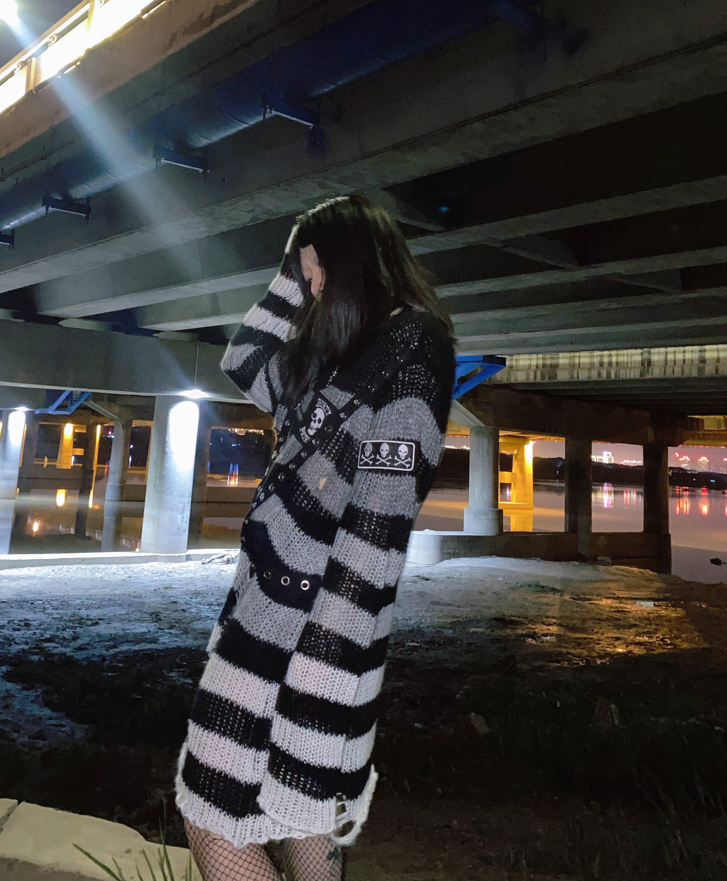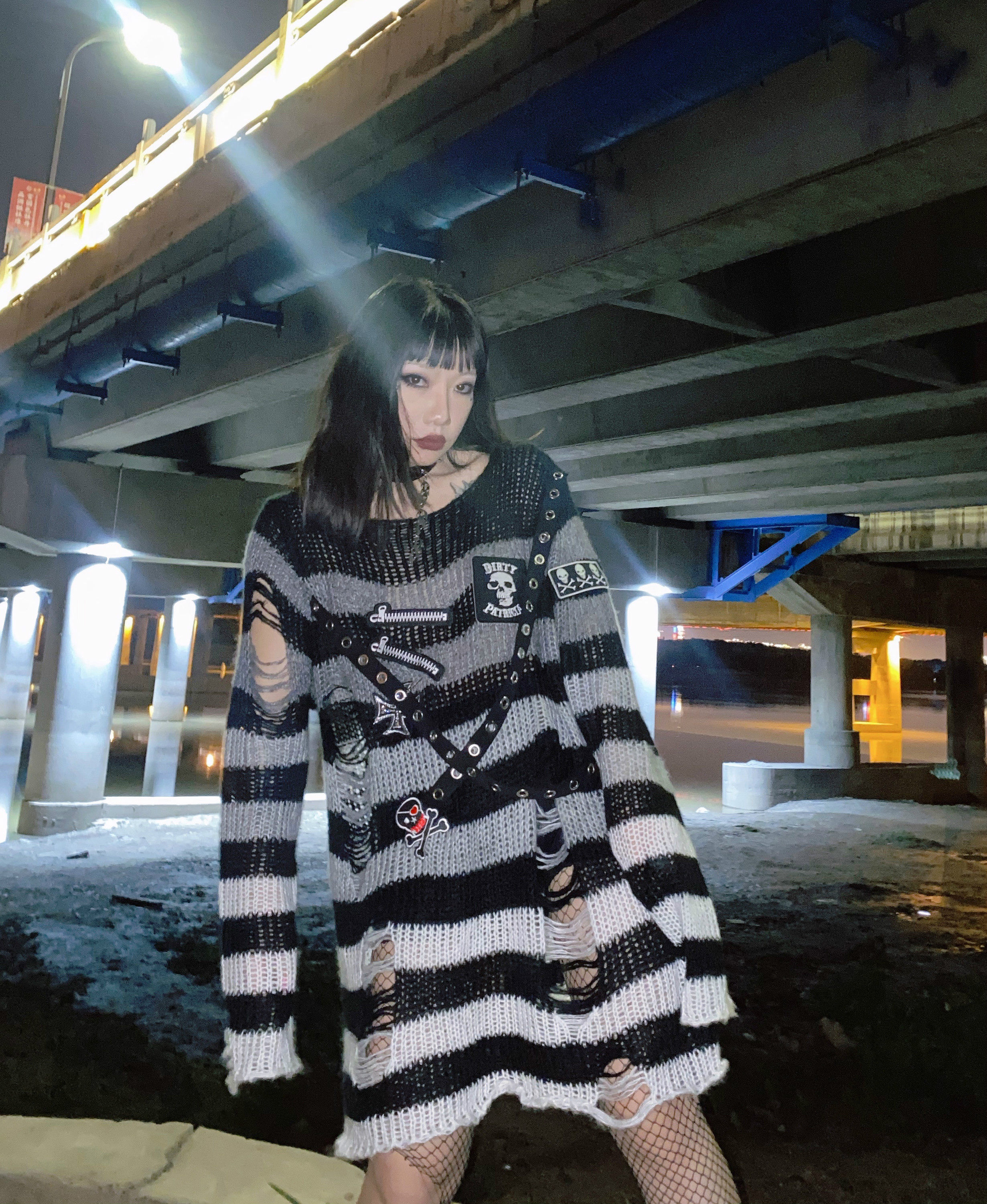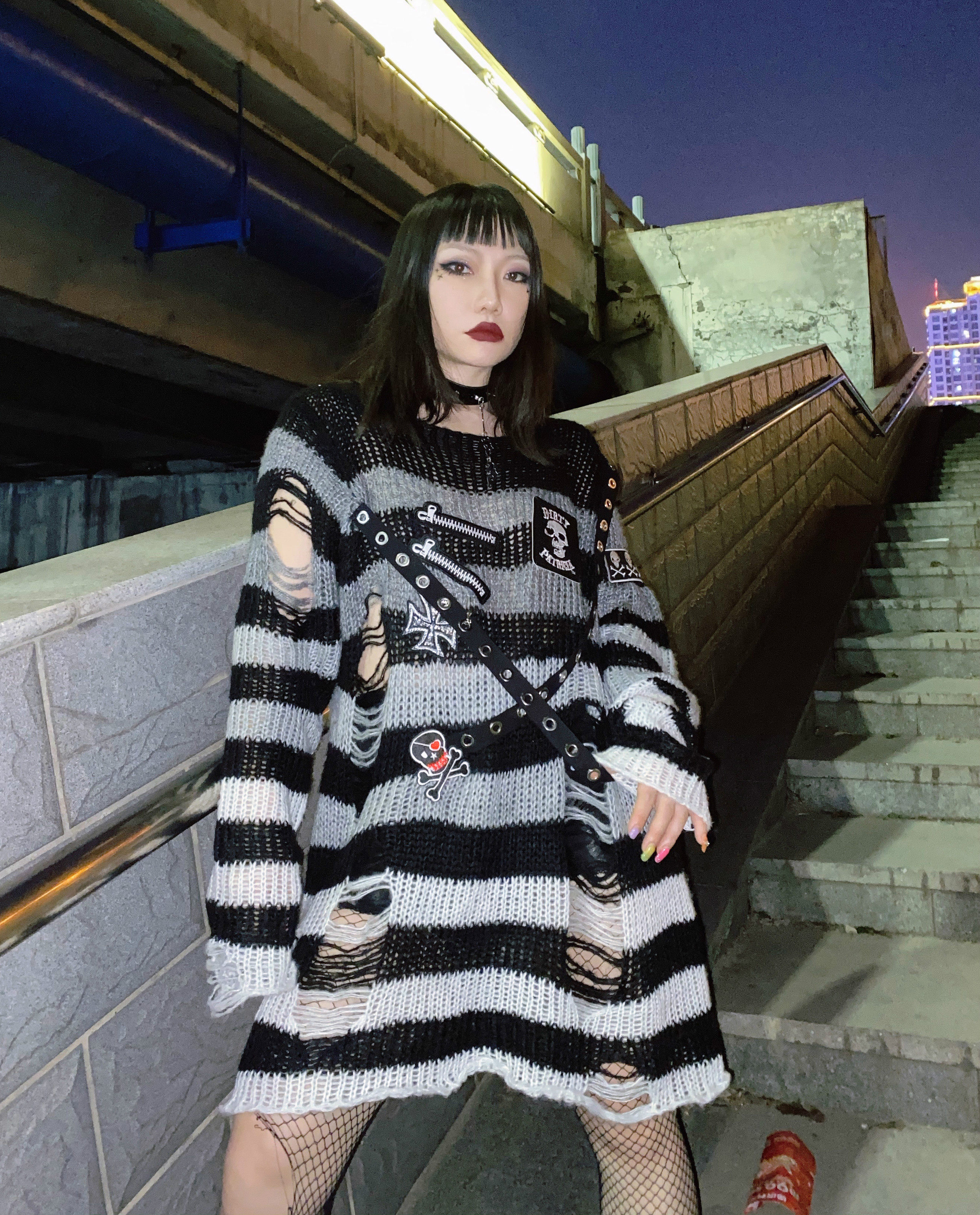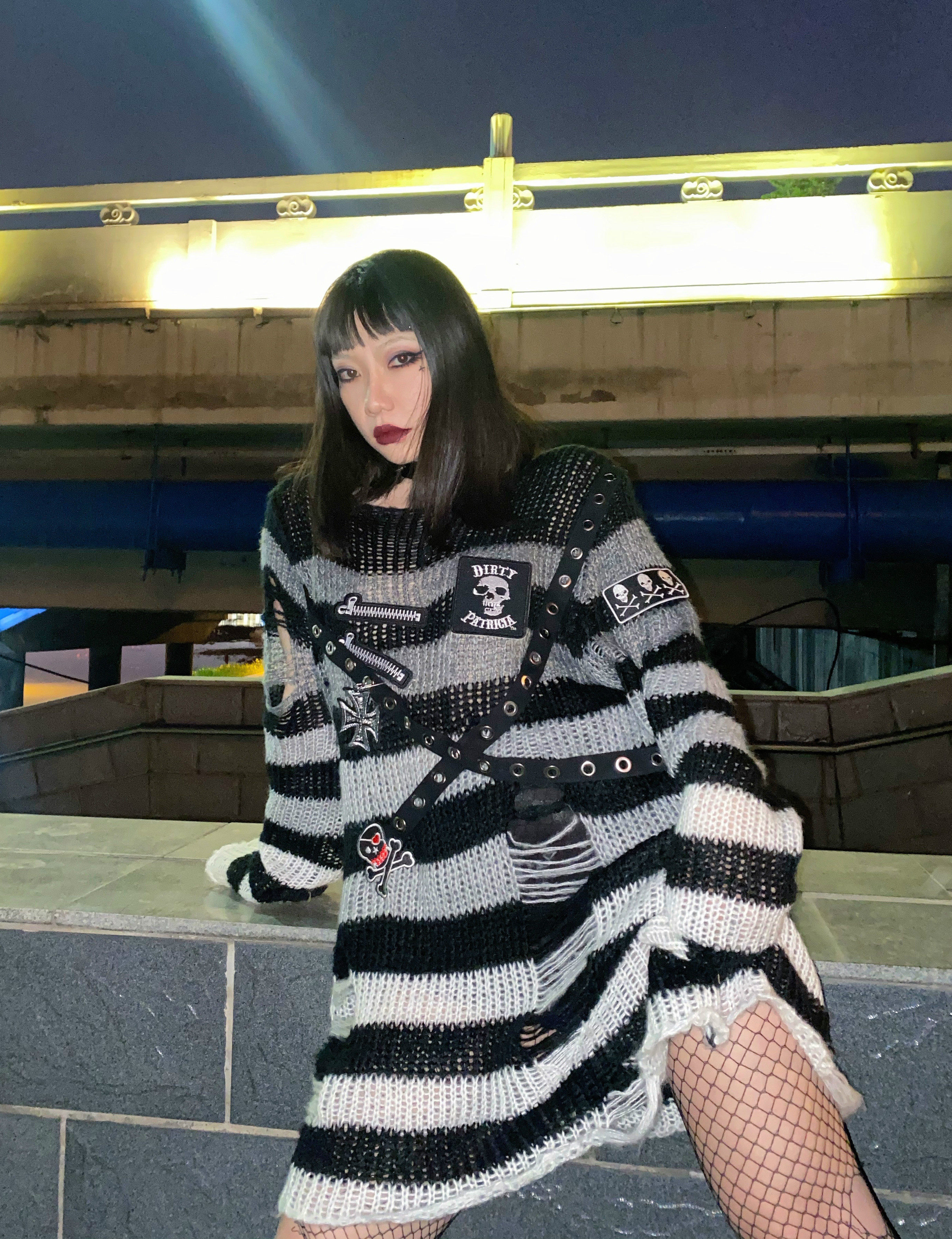 Длинный трикотажный свитер, рубашка, генерирование электричества, градиент, в стиле панк, средней длины