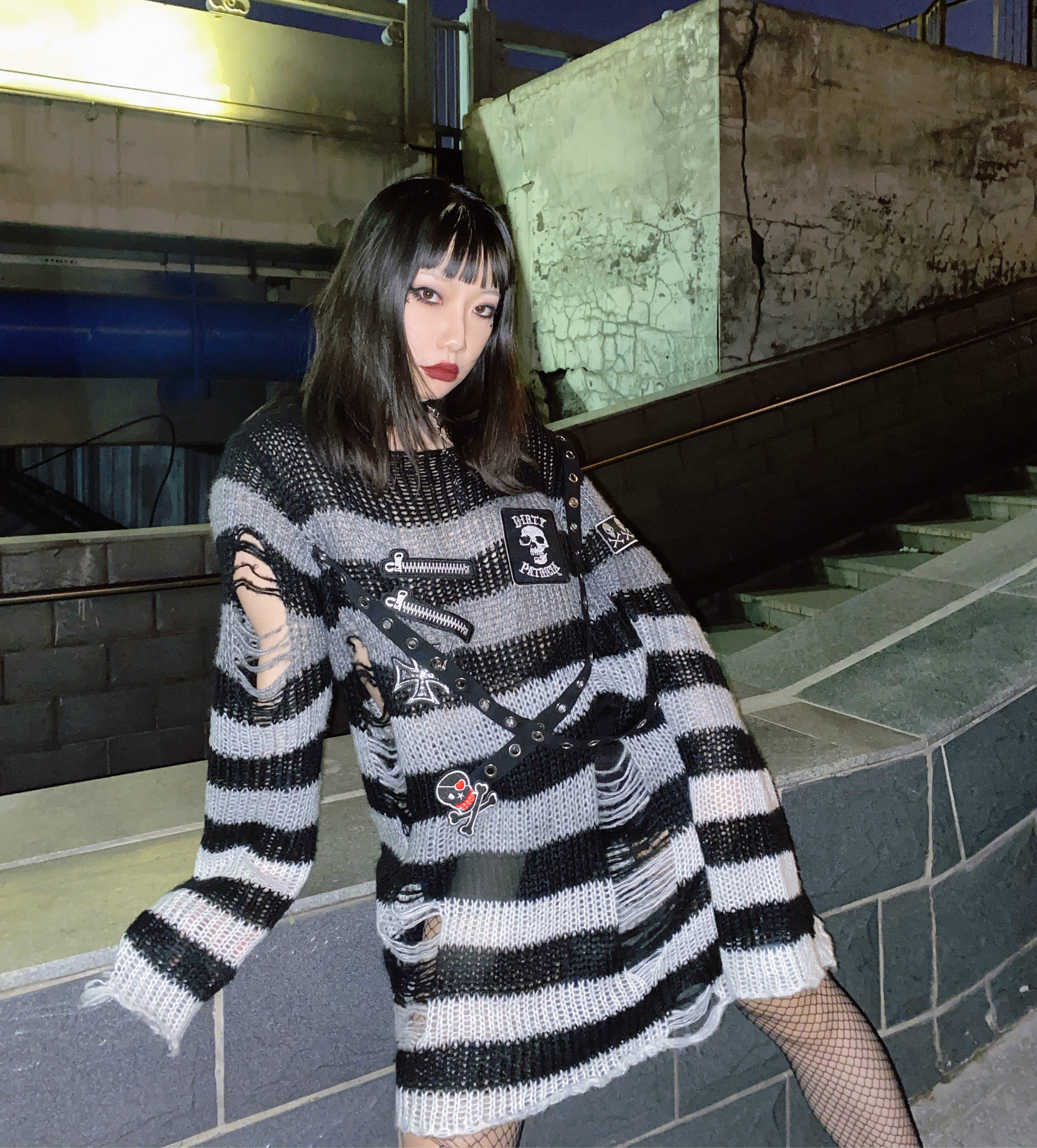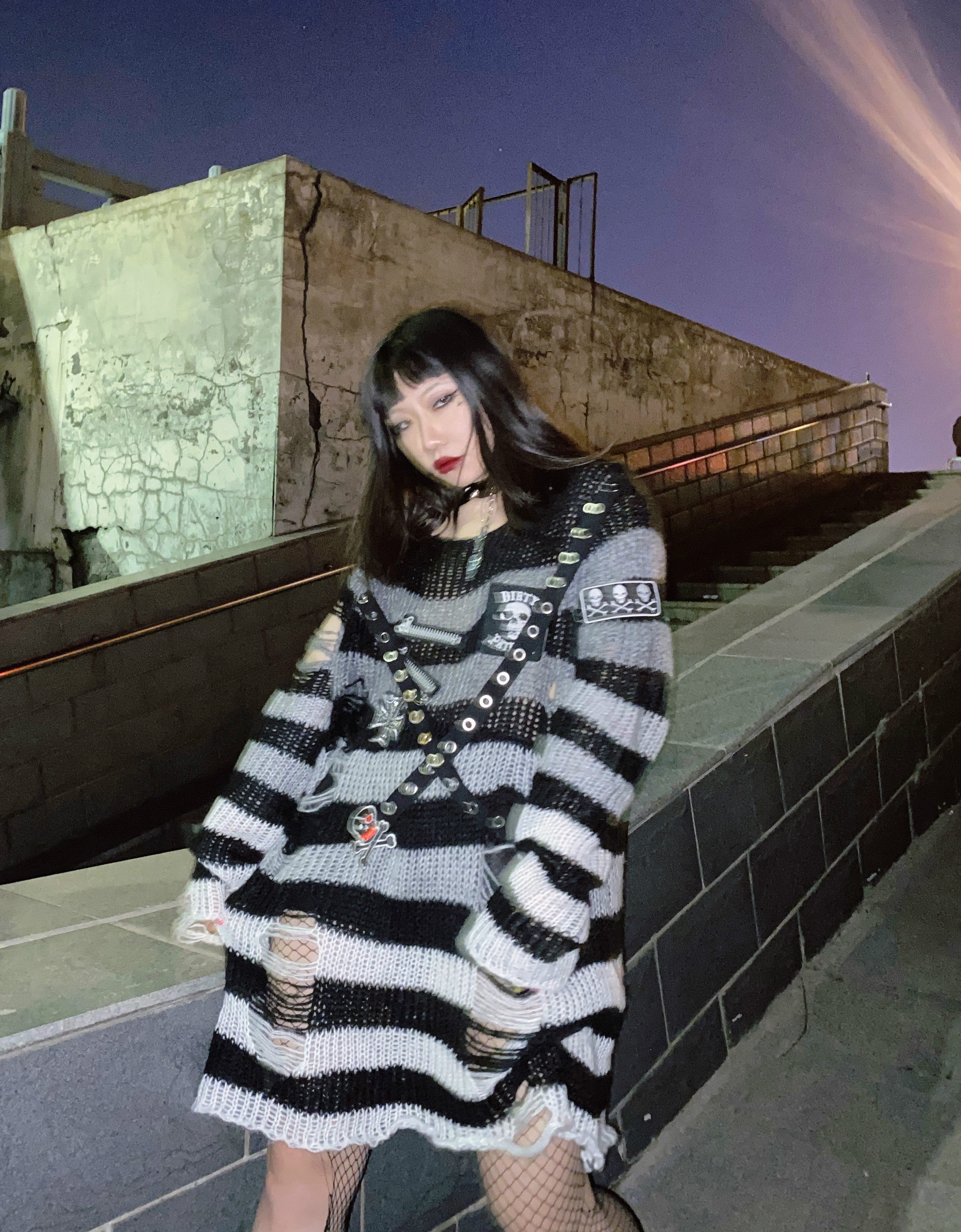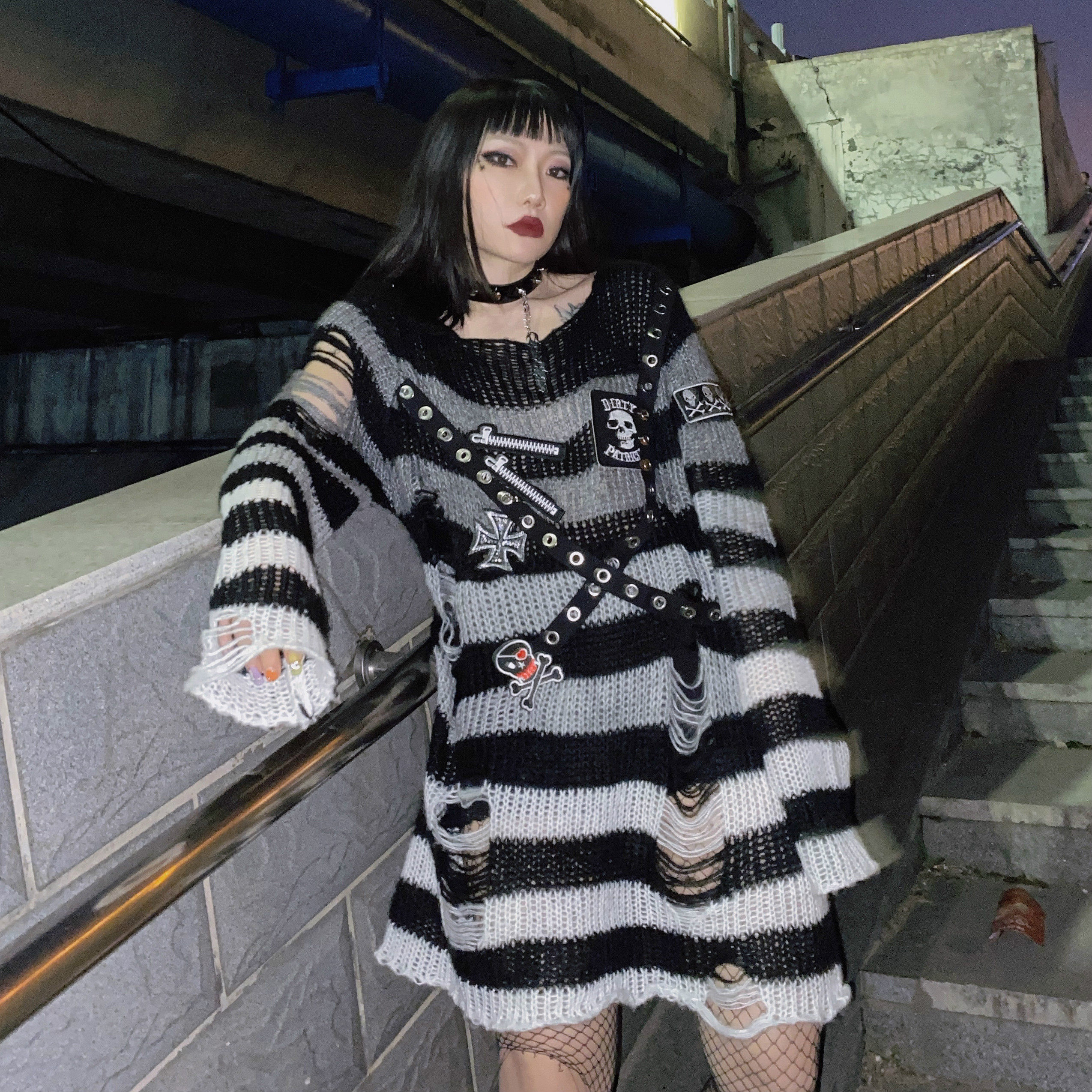 Длинный трикотажный свитер, рубашка, генерирование электричества, градиент, в стиле панк, средней длины