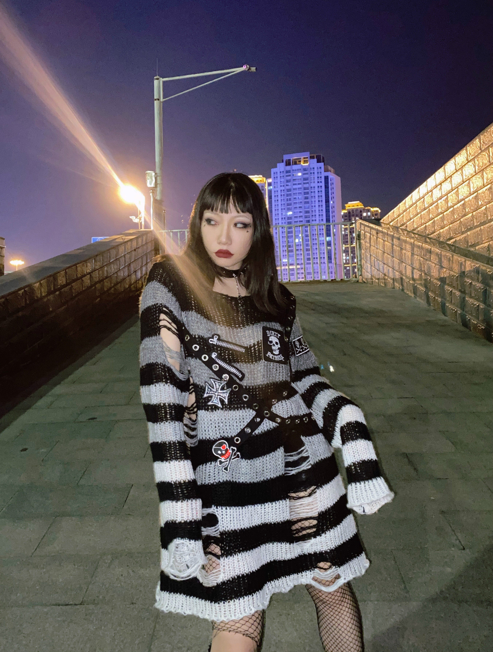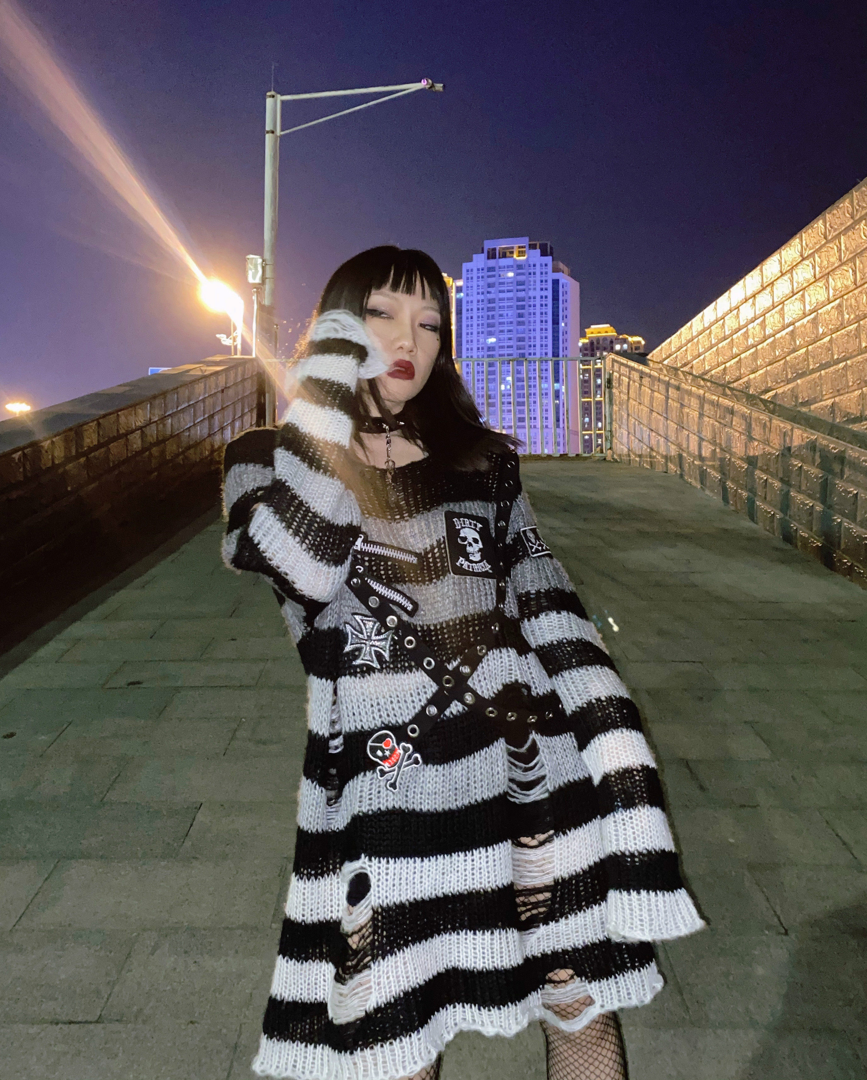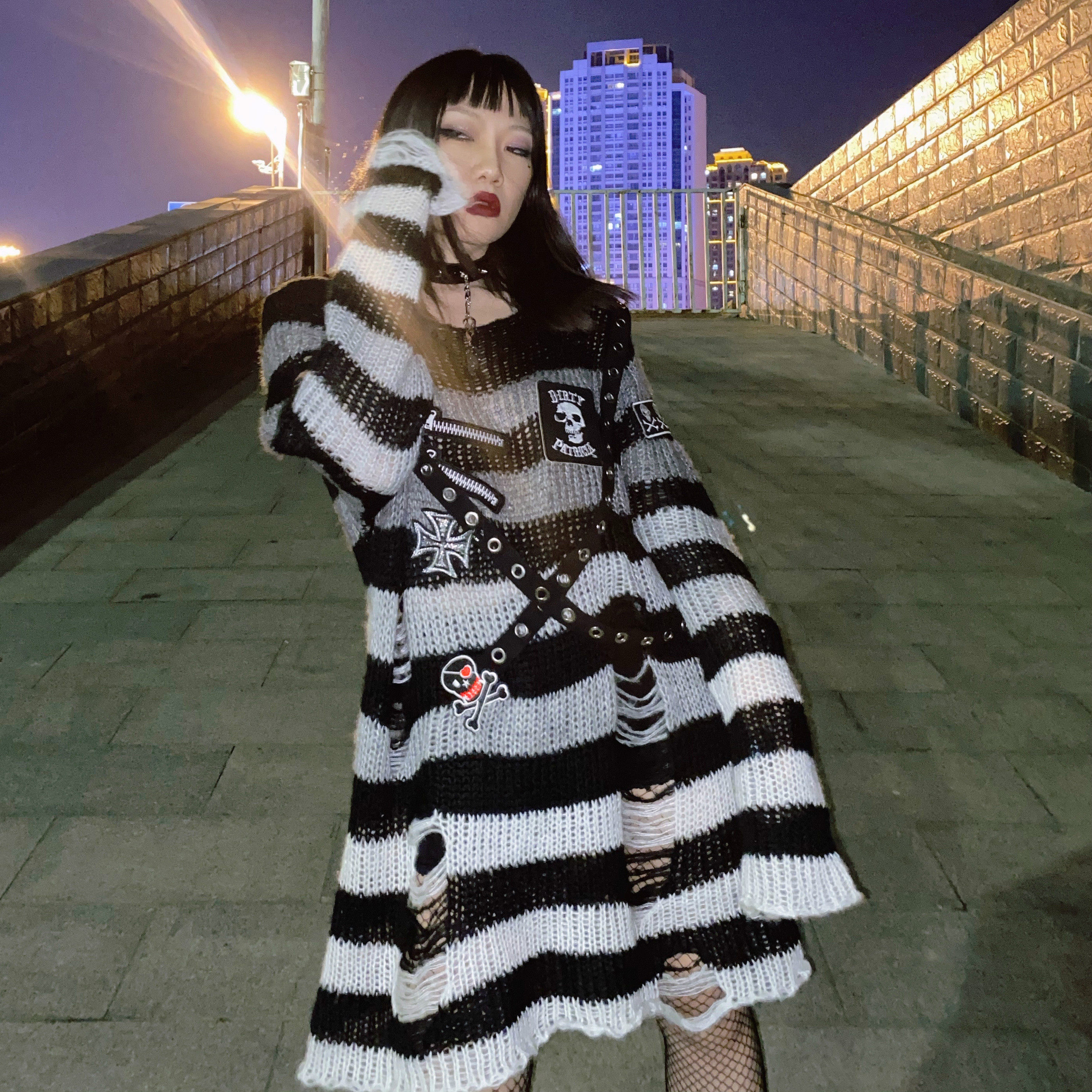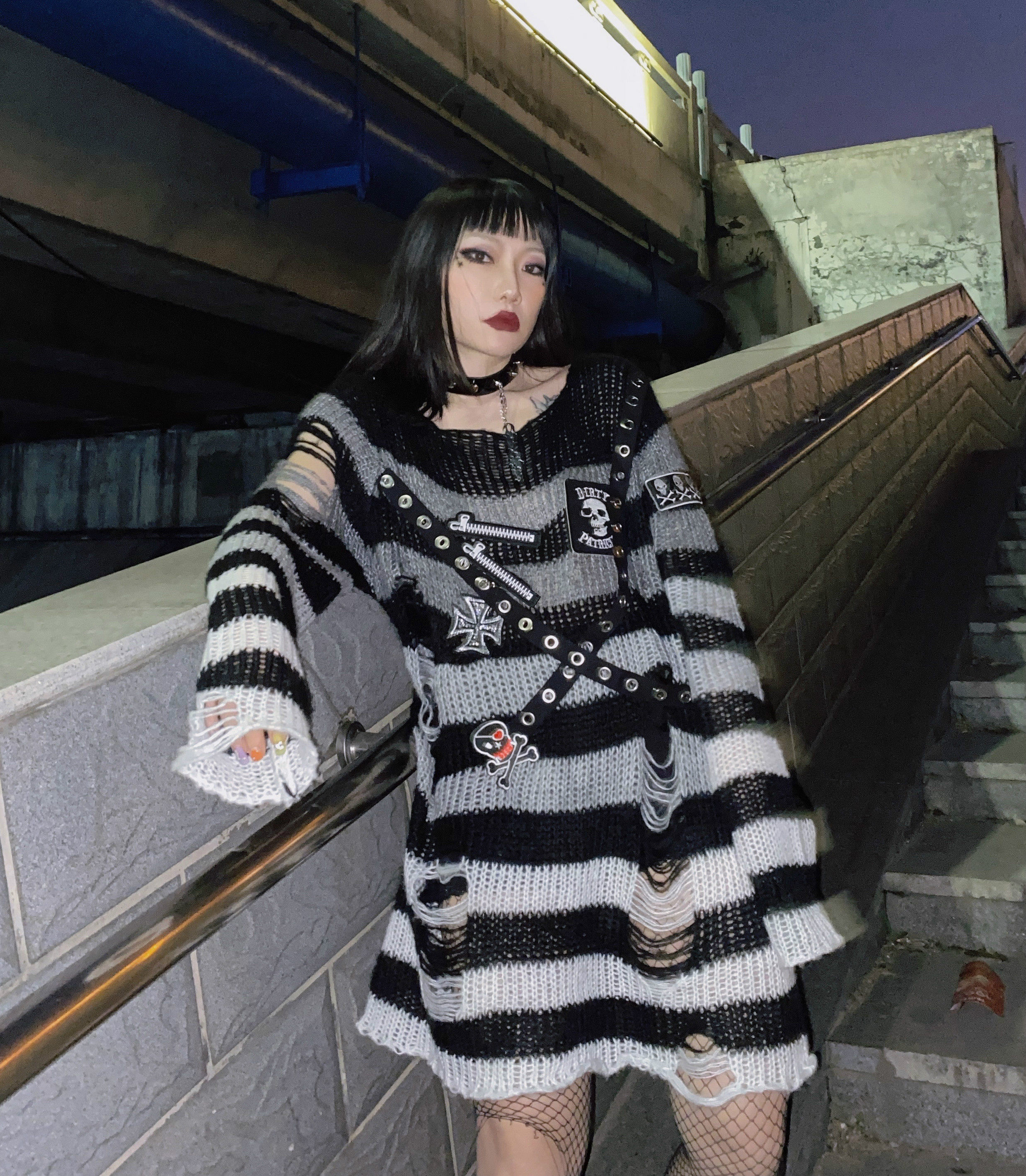 Длинный трикотажный свитер, рубашка, генерирование электричества, градиент, в стиле панк, средней длины
