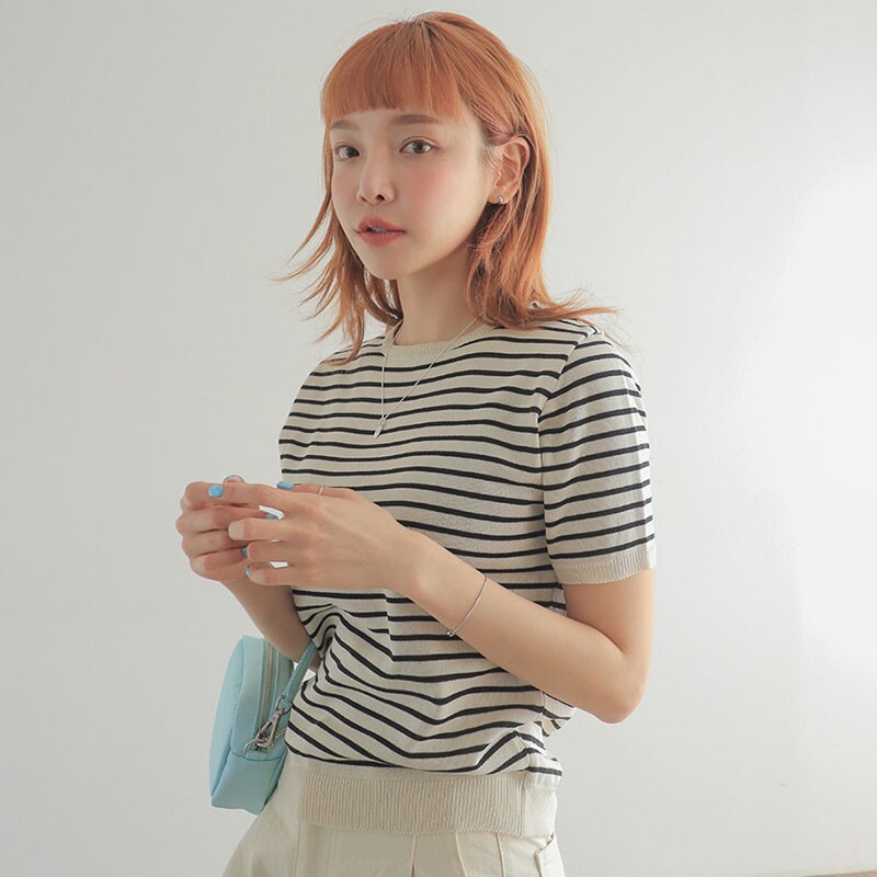 Летний классический трикотажный свитер с круглым воротником, в корейском стиле