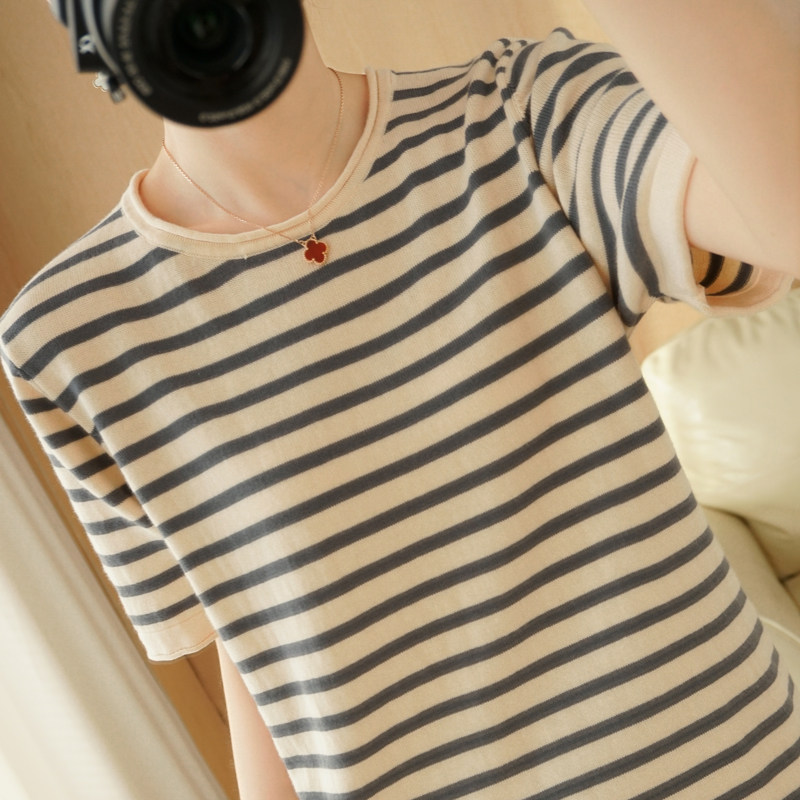 Хлопковая ретро футболка с коротким рукавом, трикотажный жилет с круглым воротником, сезон 2021, в западном стиле, оверсайз, из хлопка и льна, большой размер
