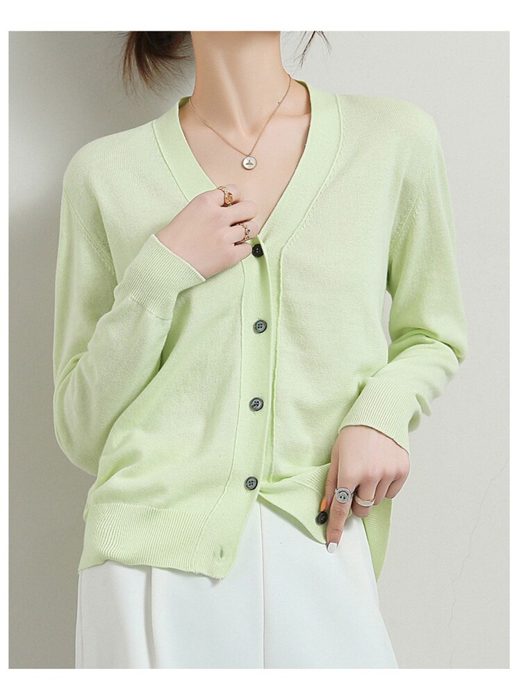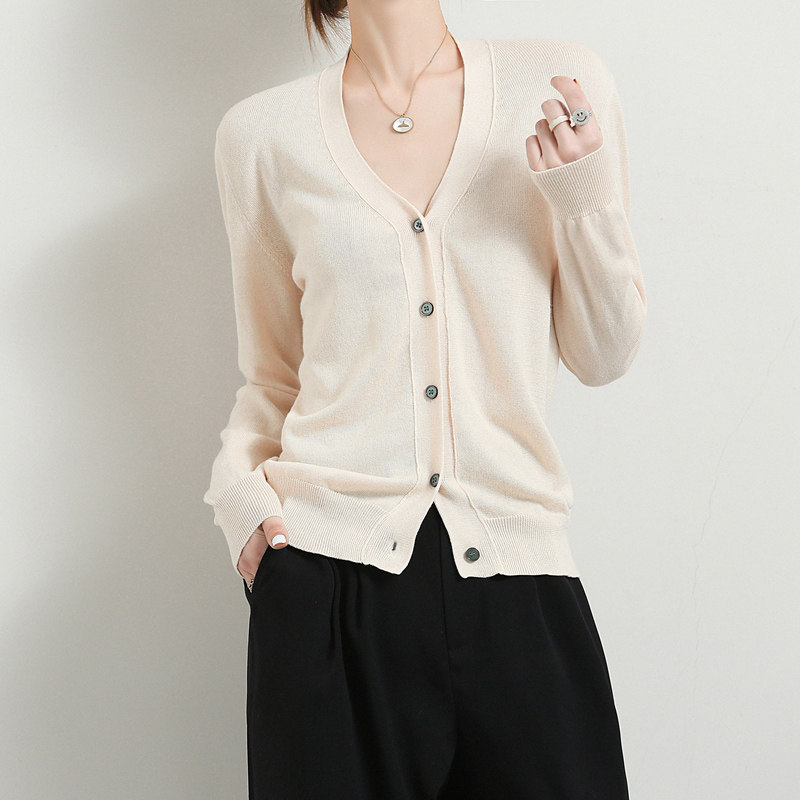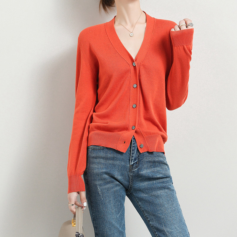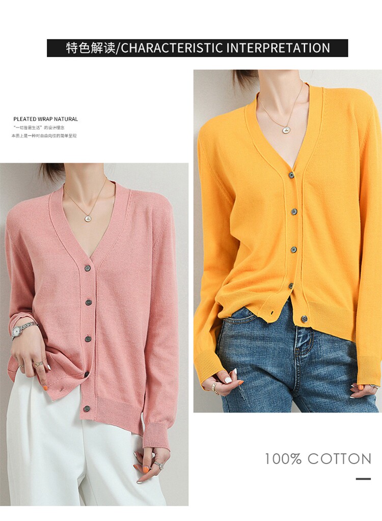 Короткий кардиган, тонкая хлопковая куртка, трикотажный хлопковый свитер, в стиле Шанель, V-образный вырез, свободный крой