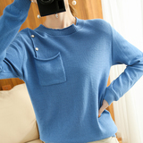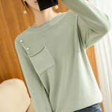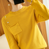 Хлопковый трикотажный осенний свитер, тонкий приятный телу лонгслив с круглым воротником, 100% хлопок, коллекция 2021, оверсайз