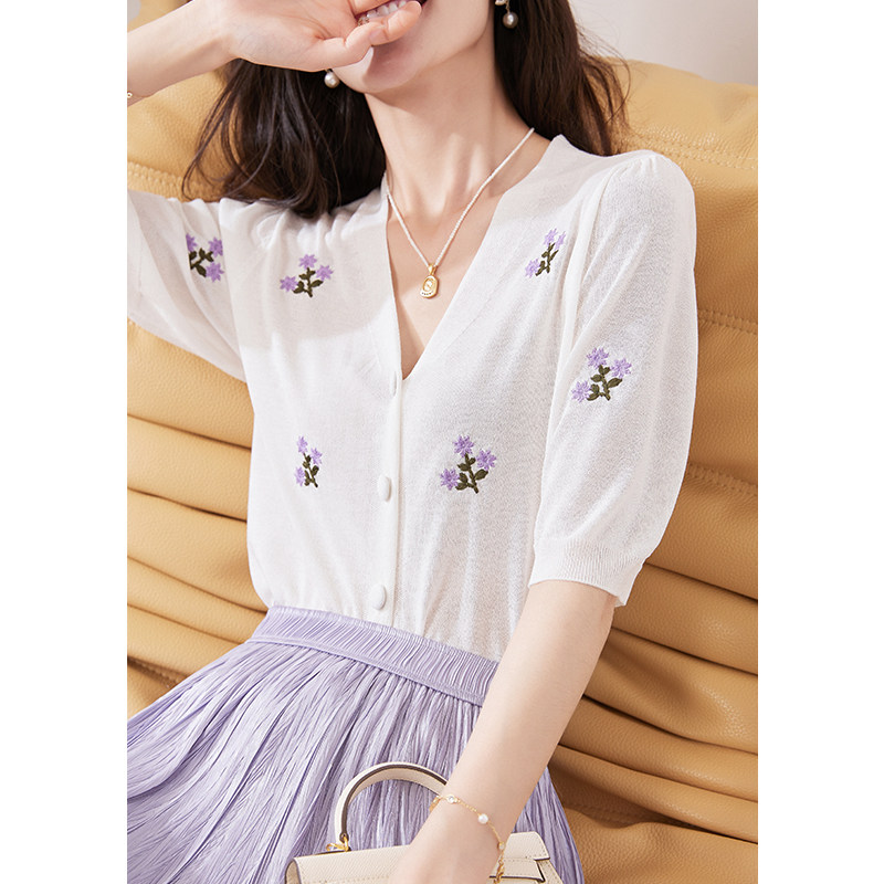 Миджия хорошего качества сладкого гиацинта красивая цветочная вышивка нежная ручная вязаная кардигана с короткими рукавами для женщин