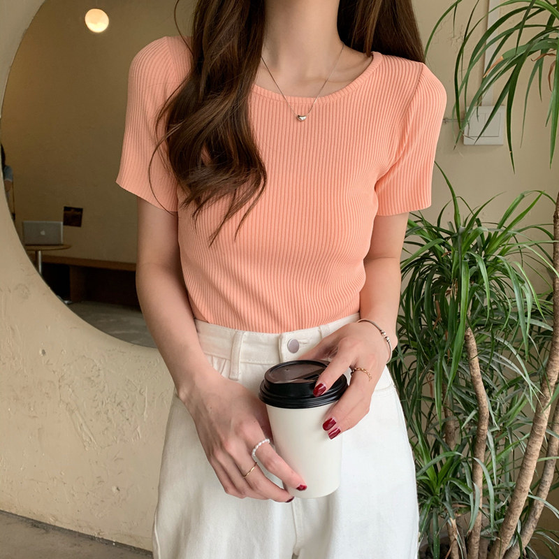 Tide, трикотажный свитер, тонкая короткая футболка, короткий рукав, коллекция 2021, облегающий крой, в обтяжку