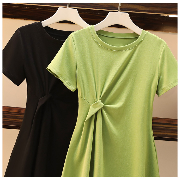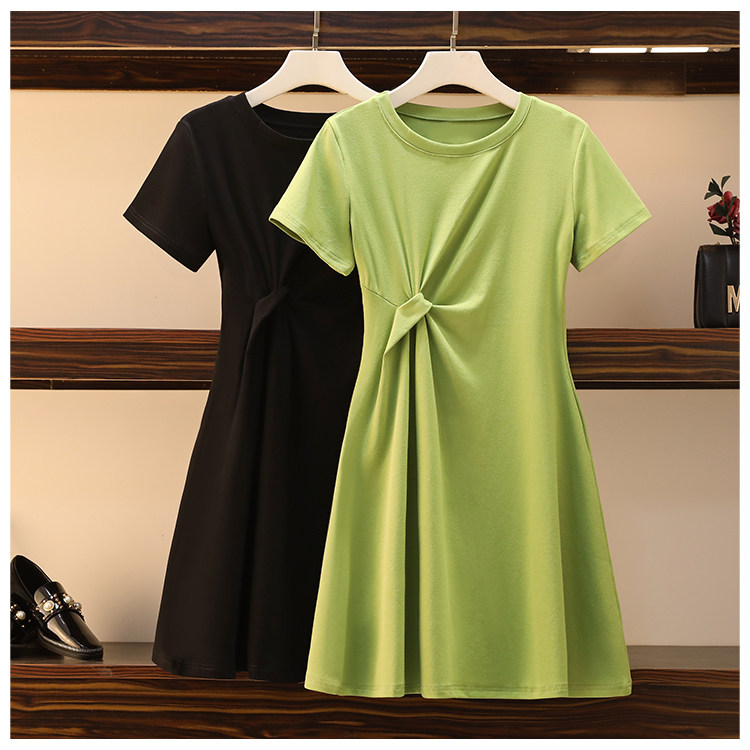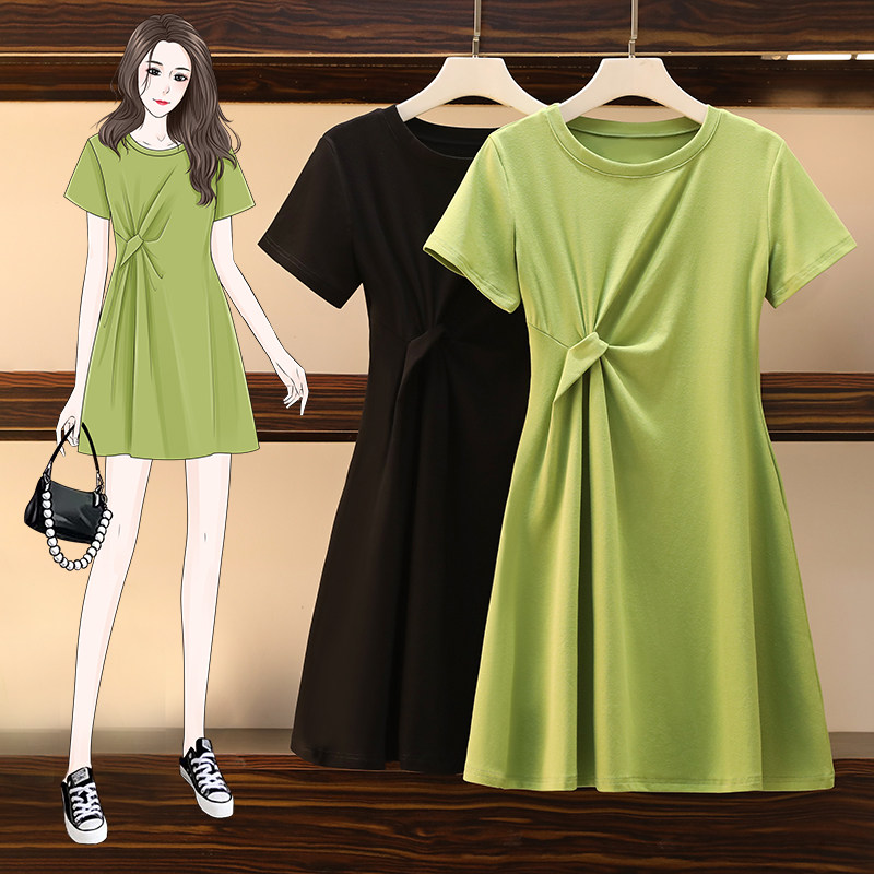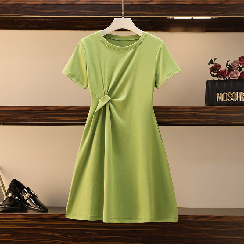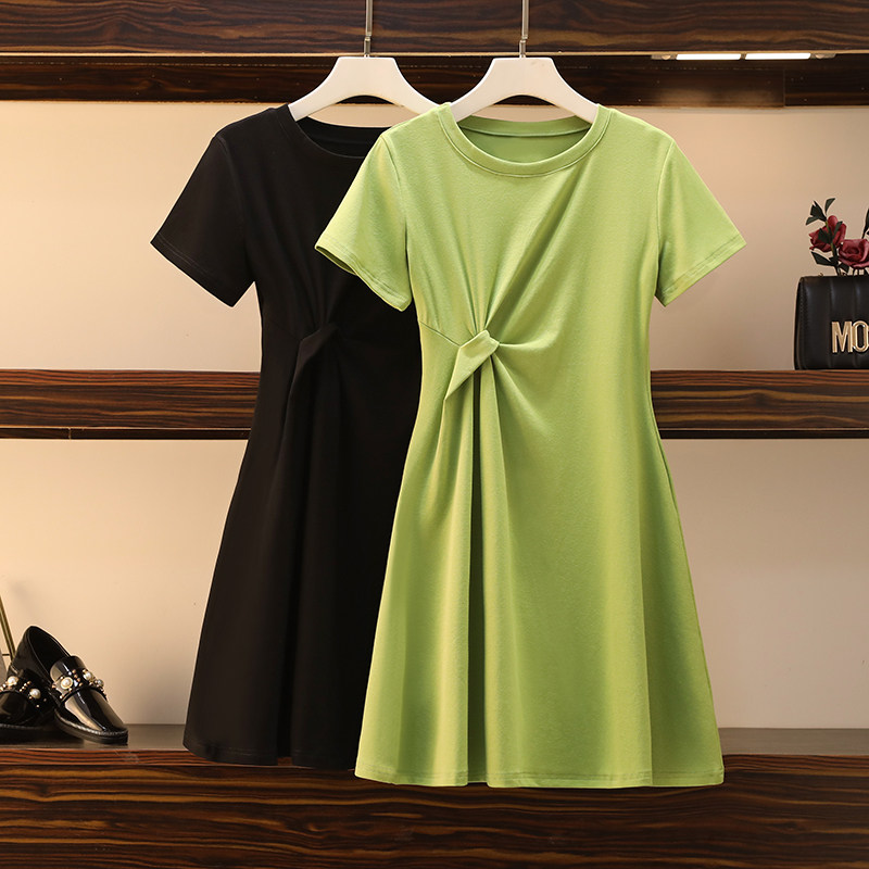 Летнее платье с круглым воротником, большой размер, подходит для полных девушек, короткий рукав, в западном стиле