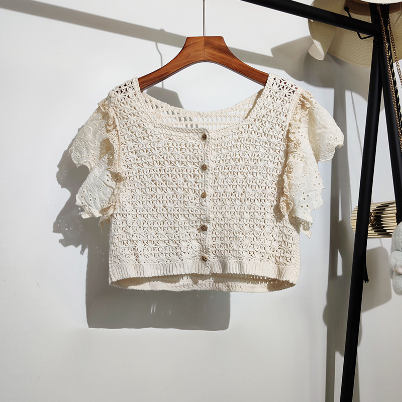 Кардиган, короткая рубашка, короткий рукав, оверсайз, квадратный вырез