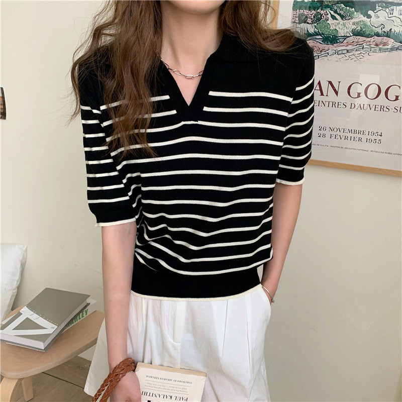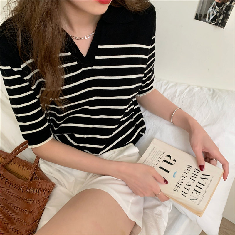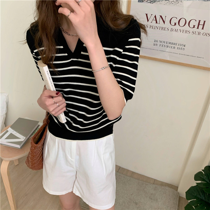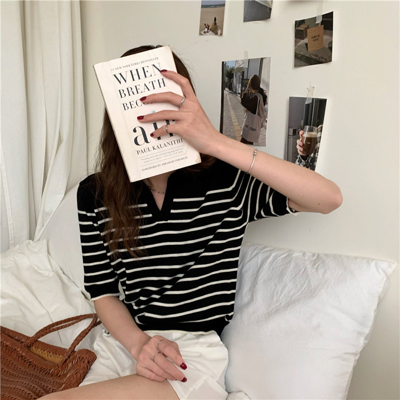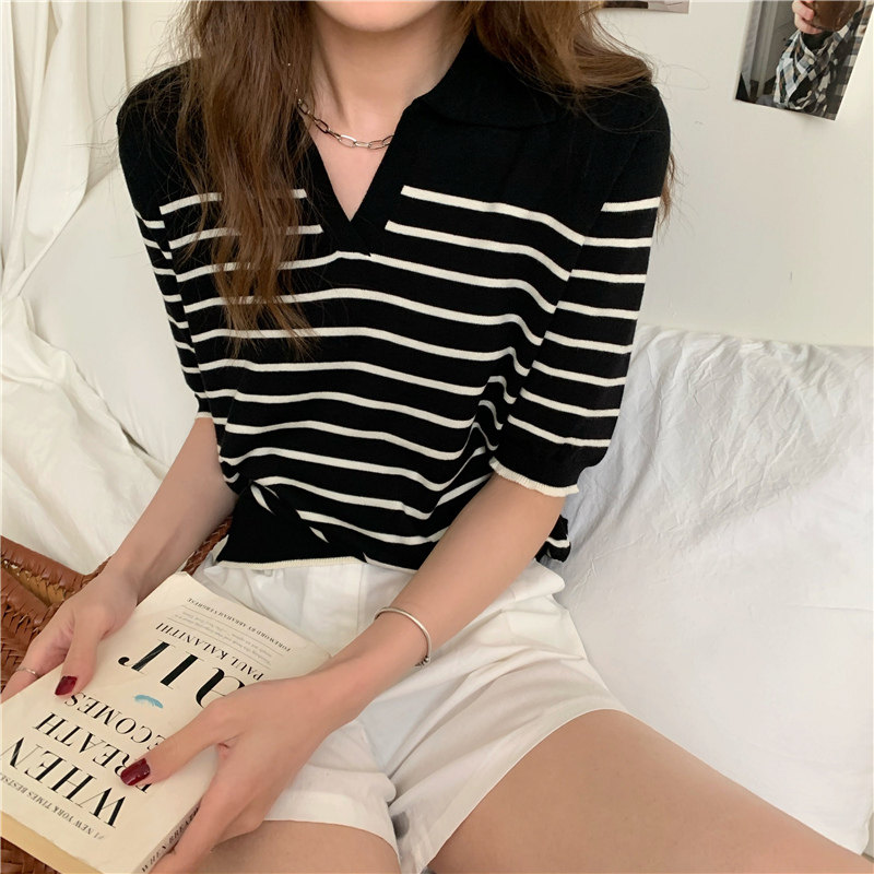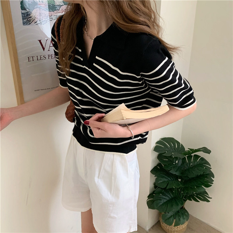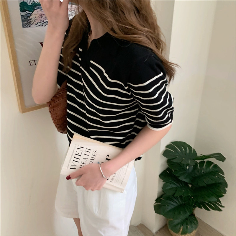 Трикотажный летний дизайнерский свитер, тонкая футболка, короткий рукав, свободный крой, тренд сезона