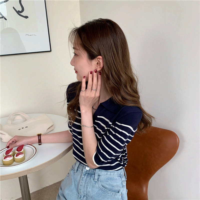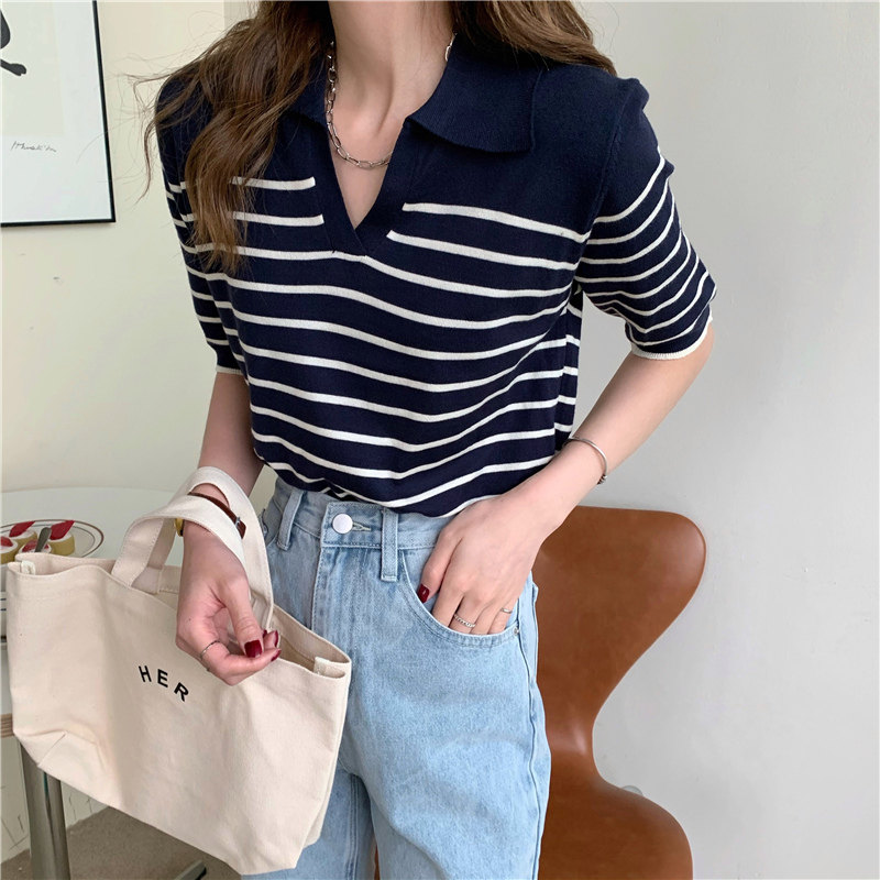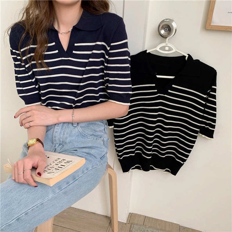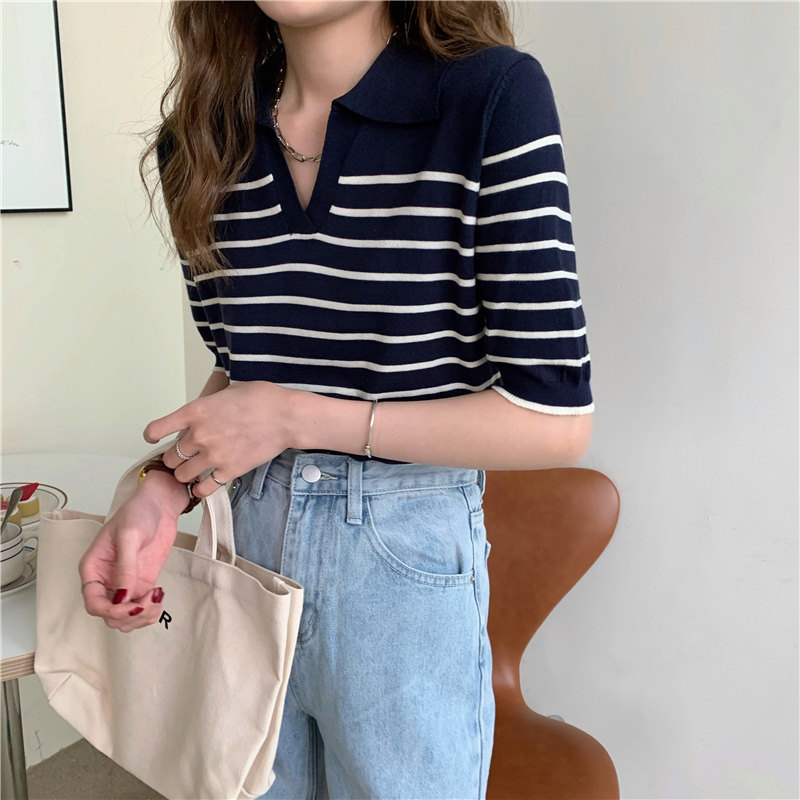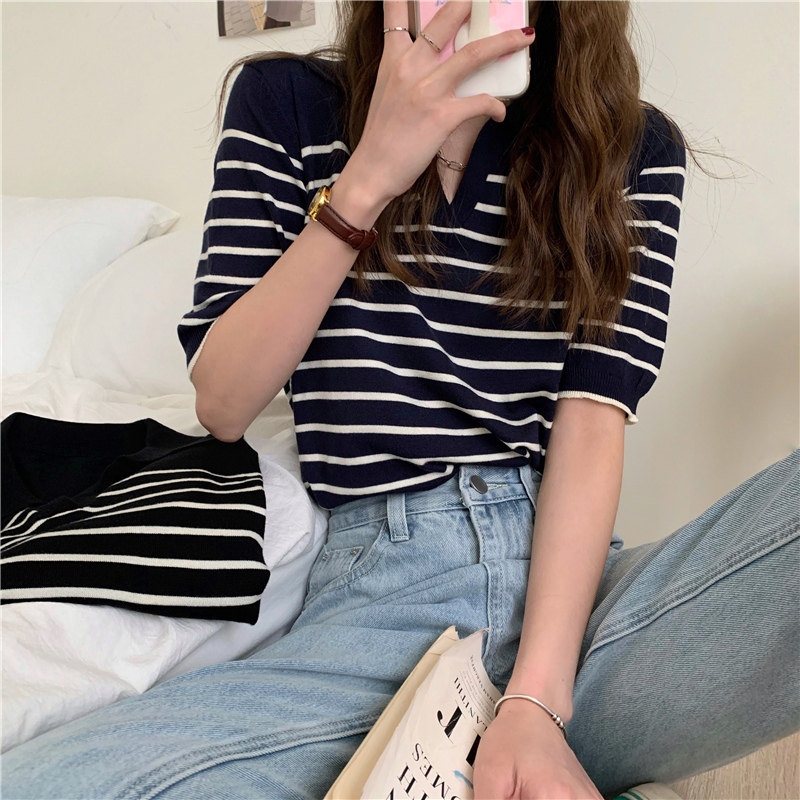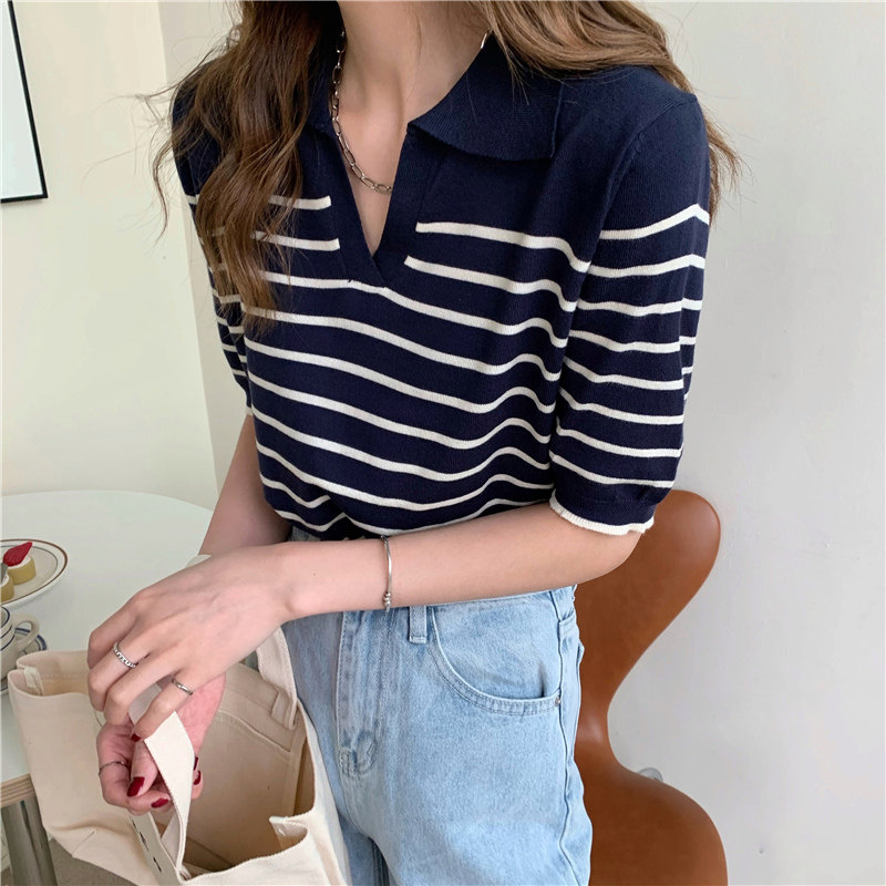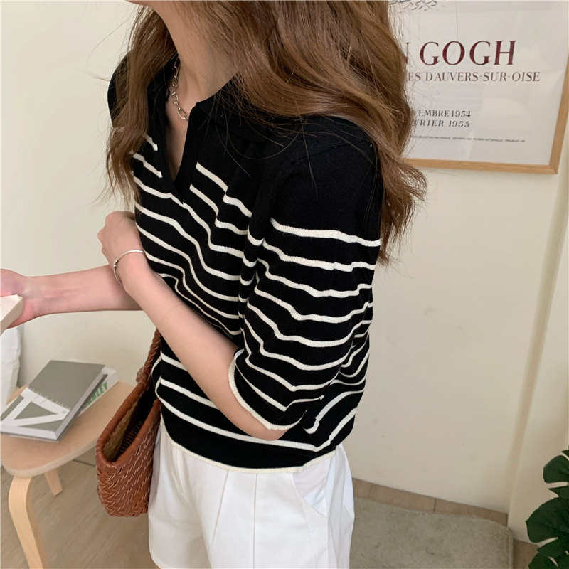 Трикотажный летний дизайнерский свитер, тонкая футболка, короткий рукав, свободный крой, тренд сезона