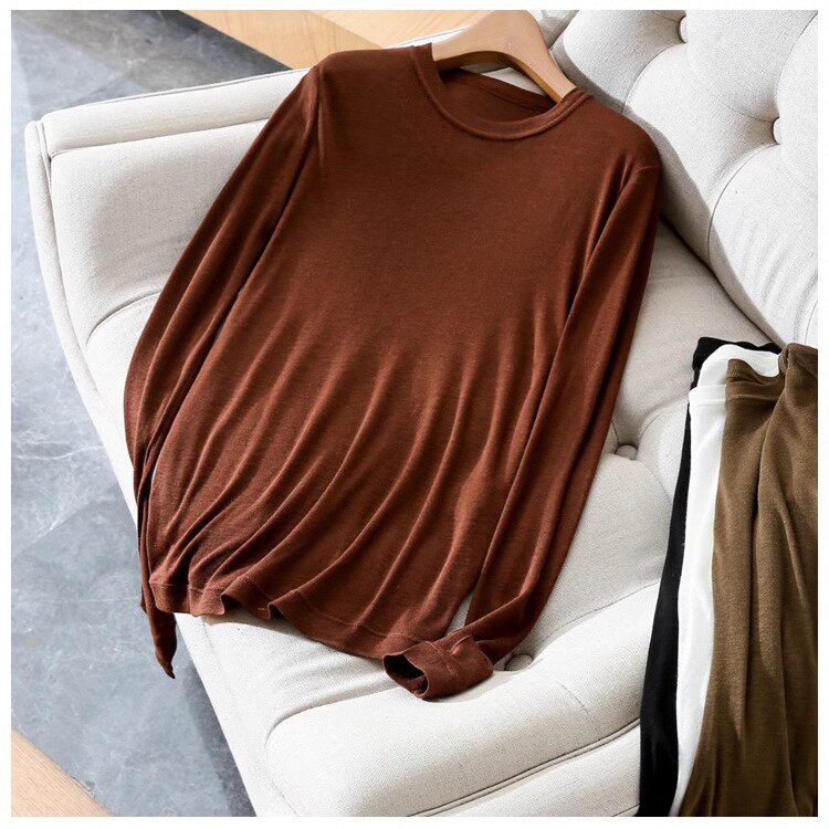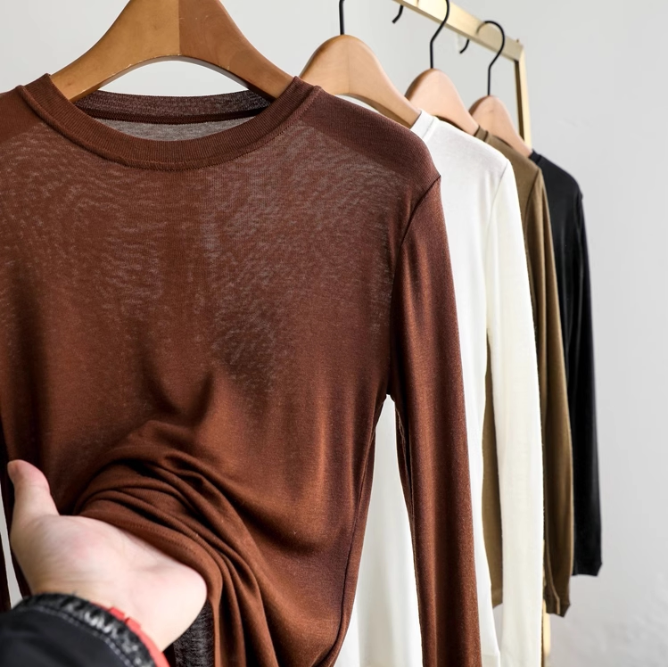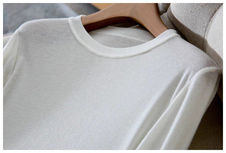 Комфортная шерстяная легкая и тонкая эластичная базовая футболка с круглым воротником