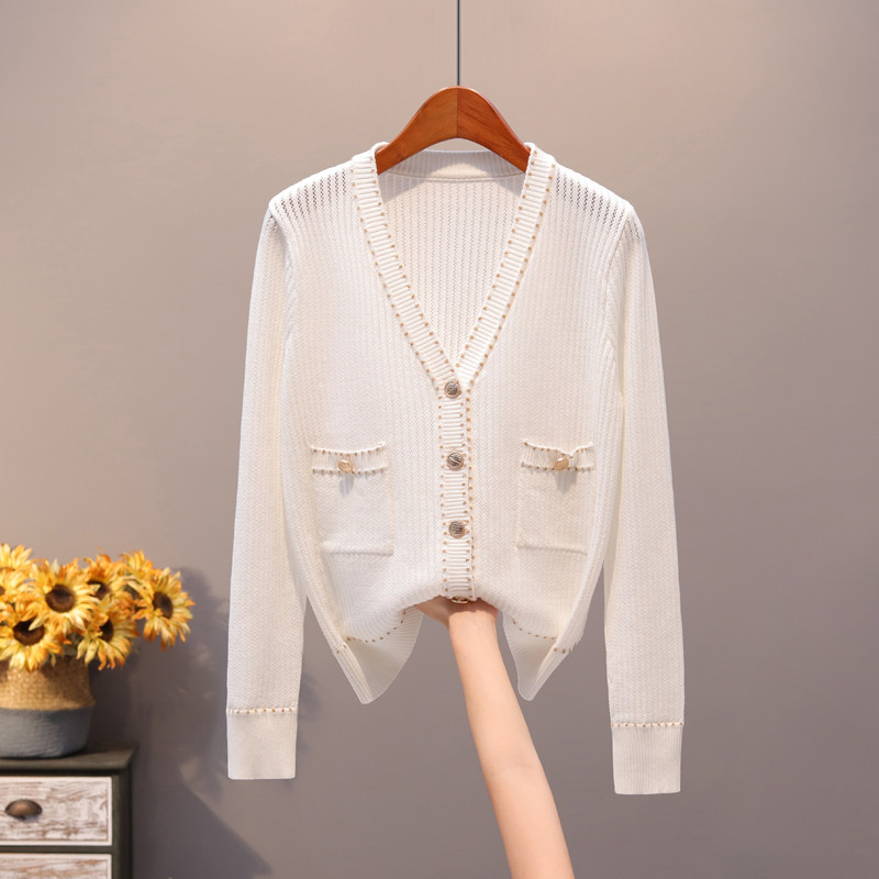 Летний кардиган, шелковый свитер, в стиле Шанель, защита от солнца, оверсайз