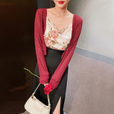 Красный короткий тонкий летний кардиган, облегающий крой, 2021 года