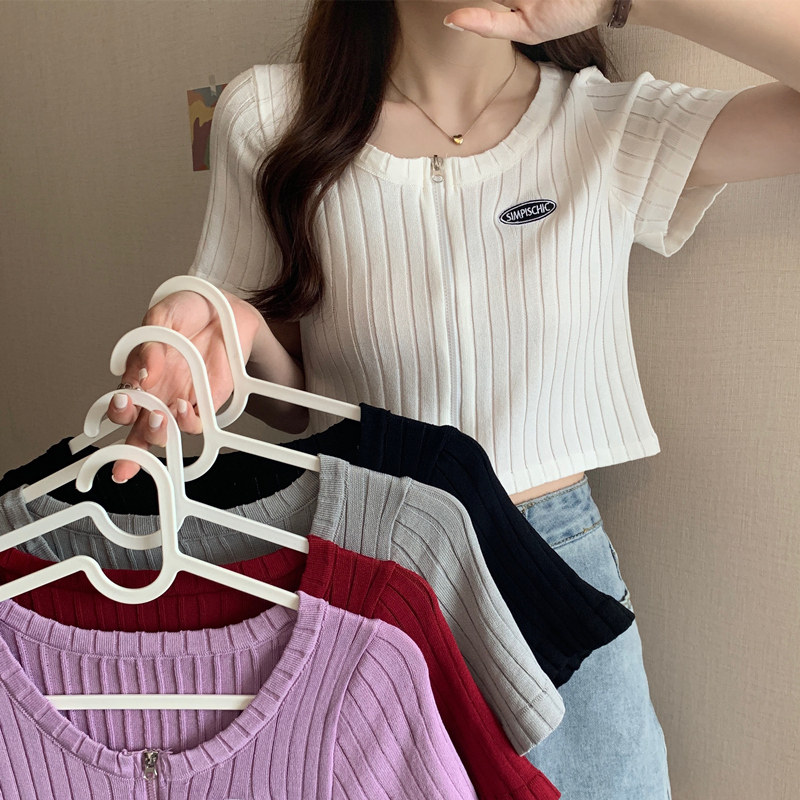 Приталенная короткая тонкая футболка, трикотажный свитер, кардиган, куртка, 2021 года, короткий рукав