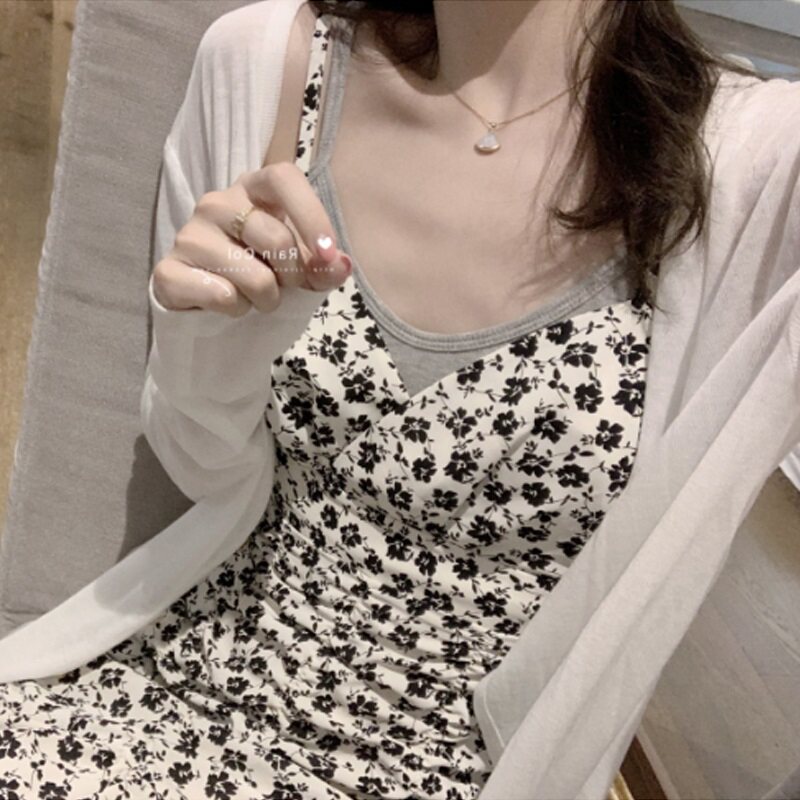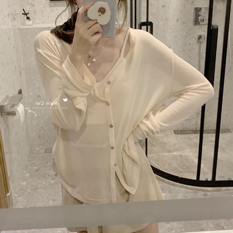 Тонкий кардиган, летняя накидка, шелковое трикотажное платье-комбинация