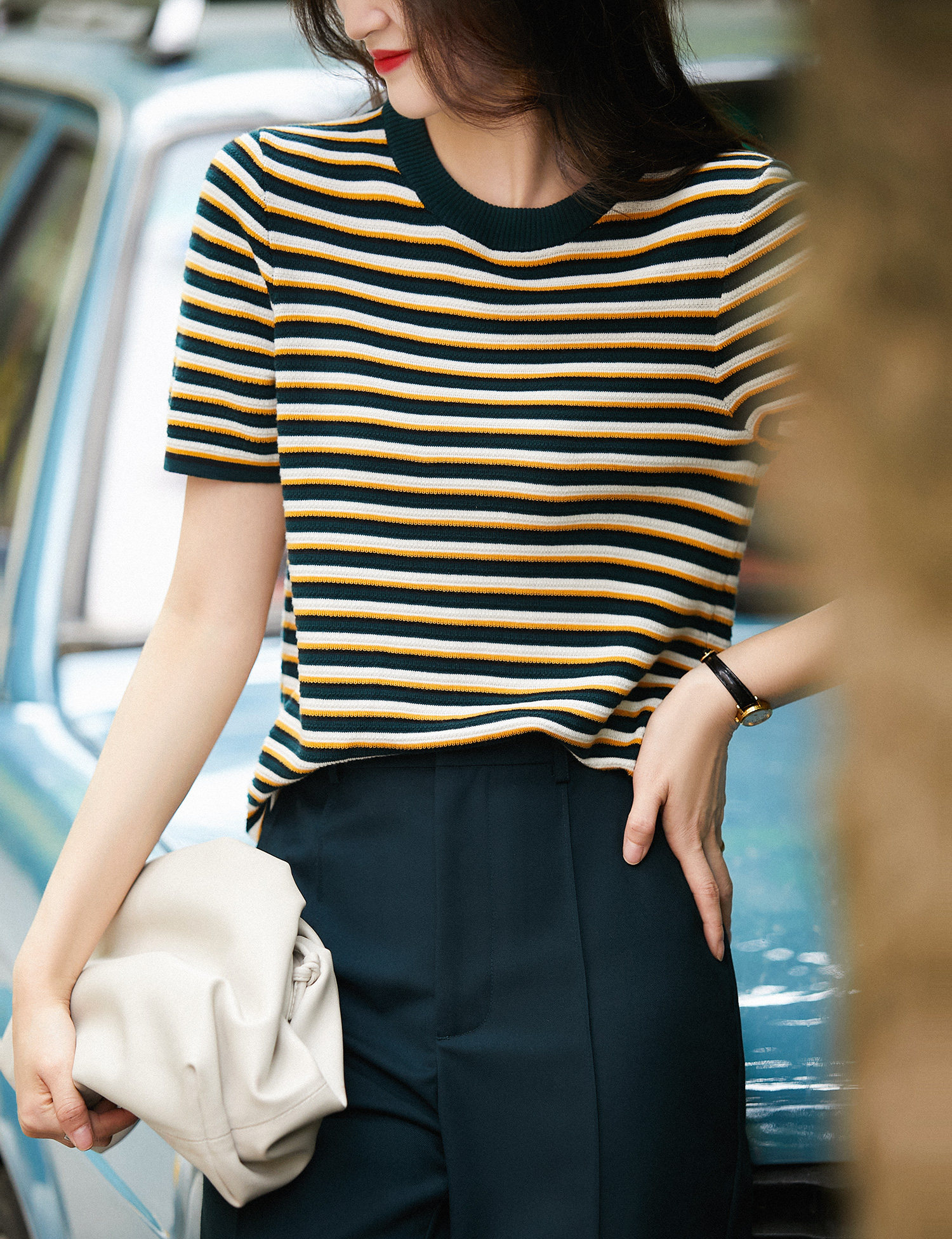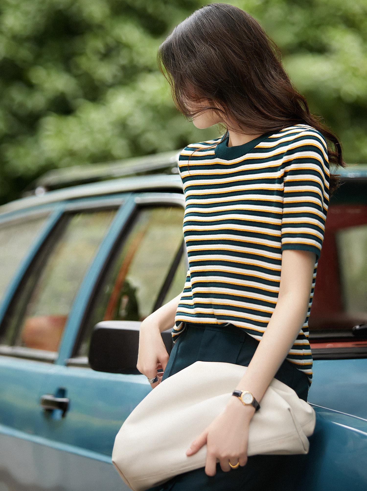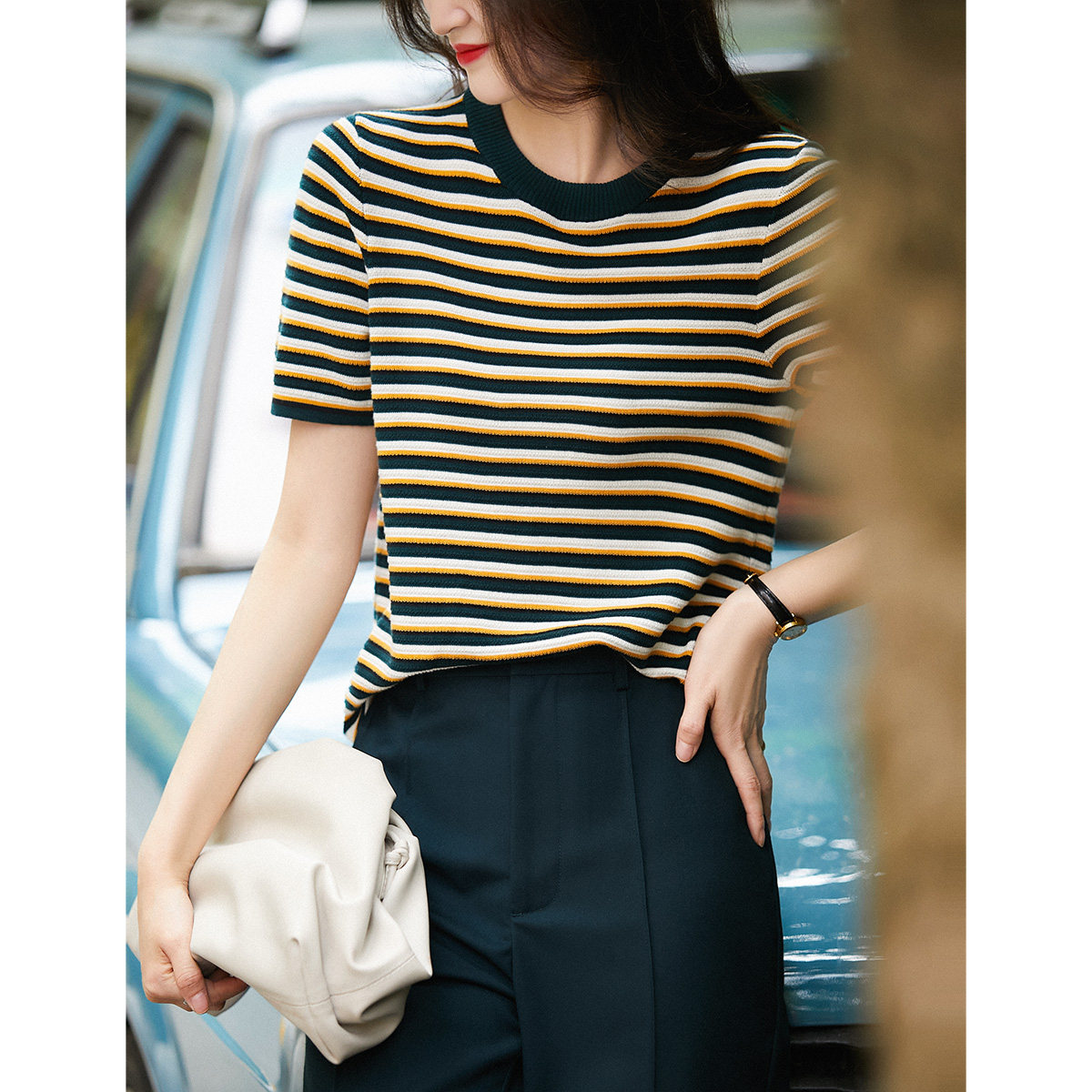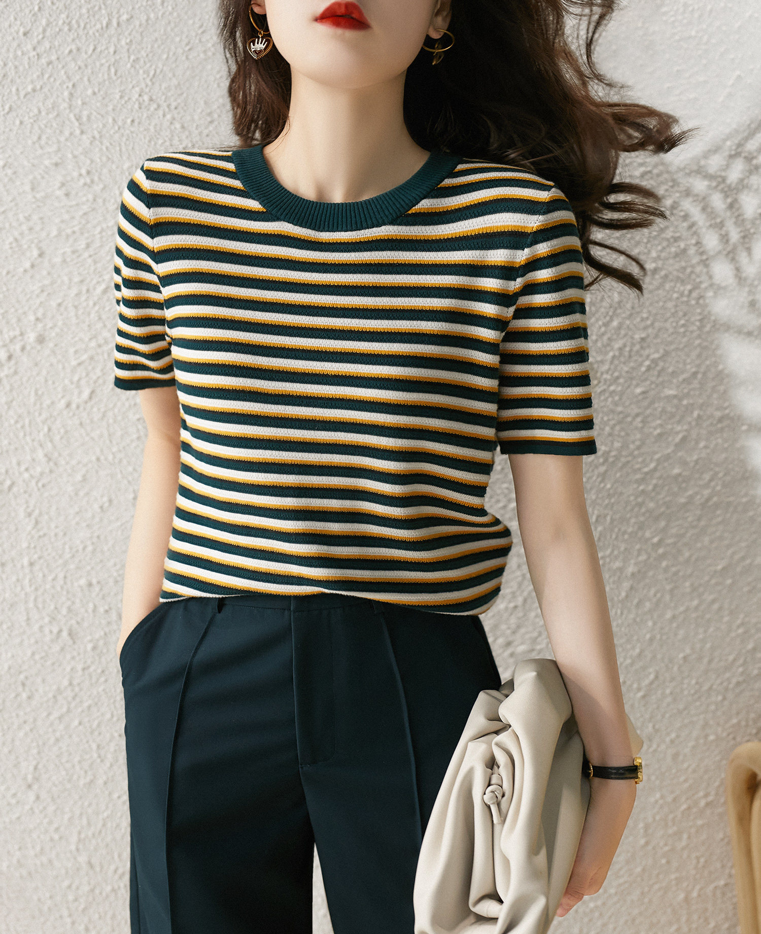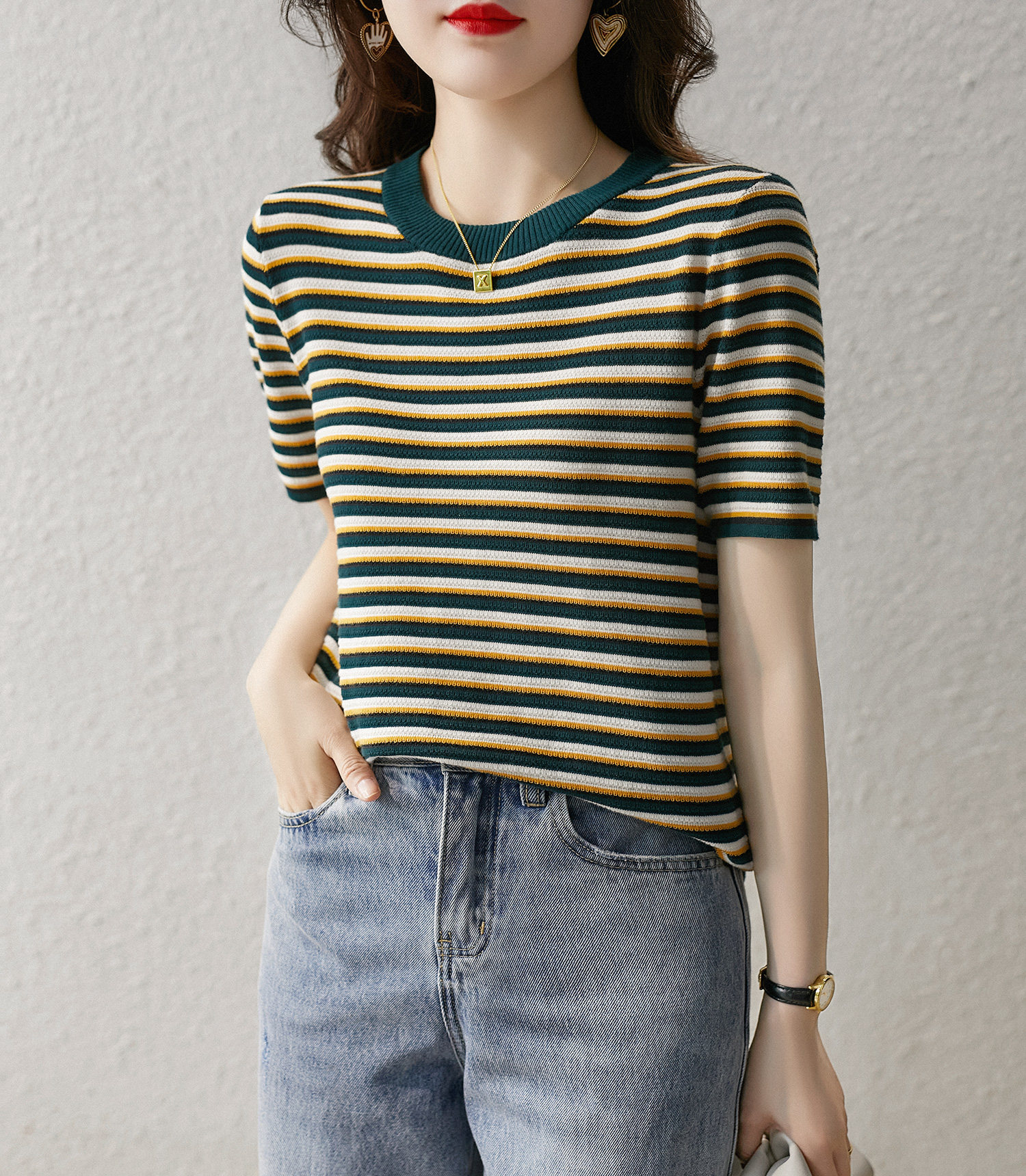 Название товара: [ZYK462268MG] Сяхан Павильон освежающий цвет полосатый круглый шей