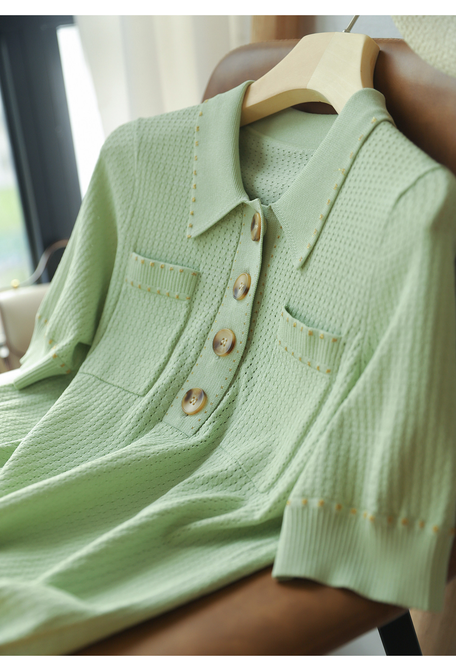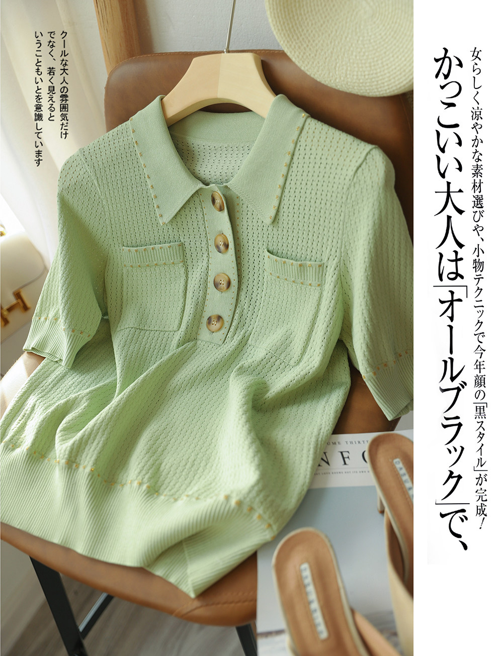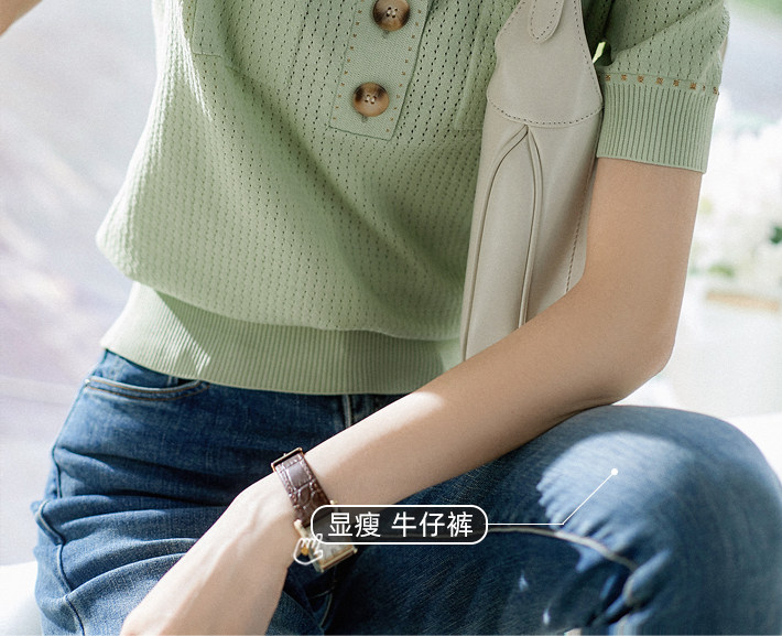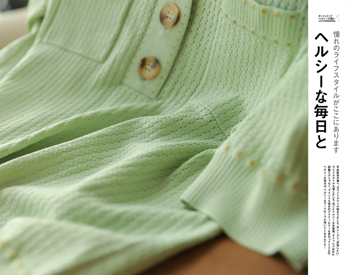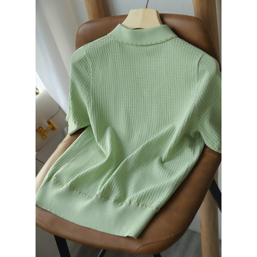& [Zyn462601mg] Красивый мятный зеленый цвет прекрасен!Гибкое мясо освежающая вязаная рубашка поло