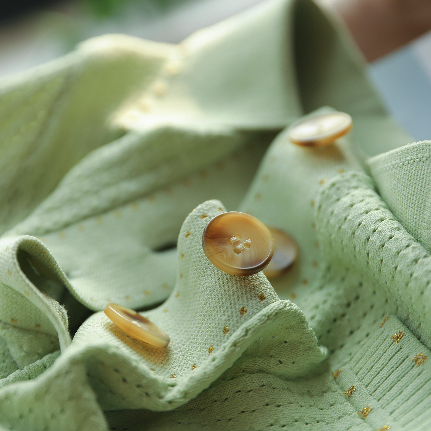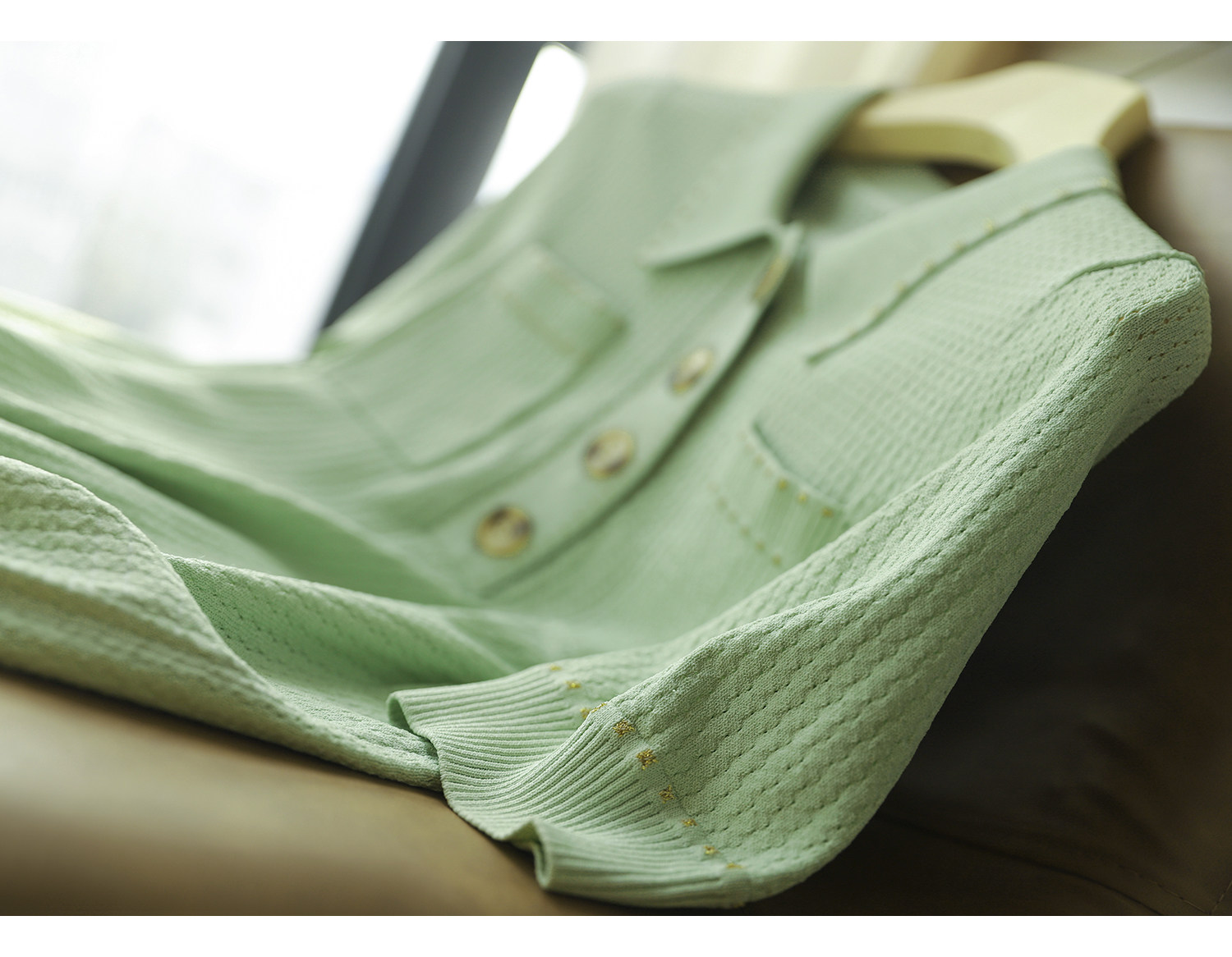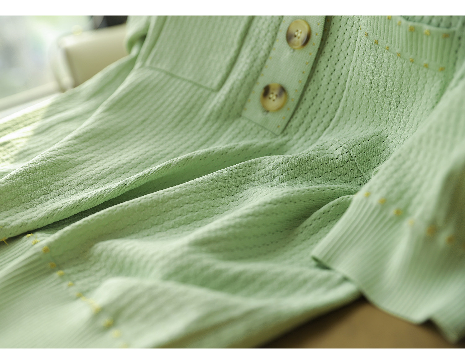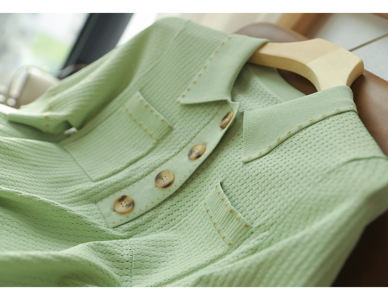 & [Zyn462601mg] Красивый мятный зеленый цвет прекрасен!Гибкое мясо освежающая вязаная рубашка поло