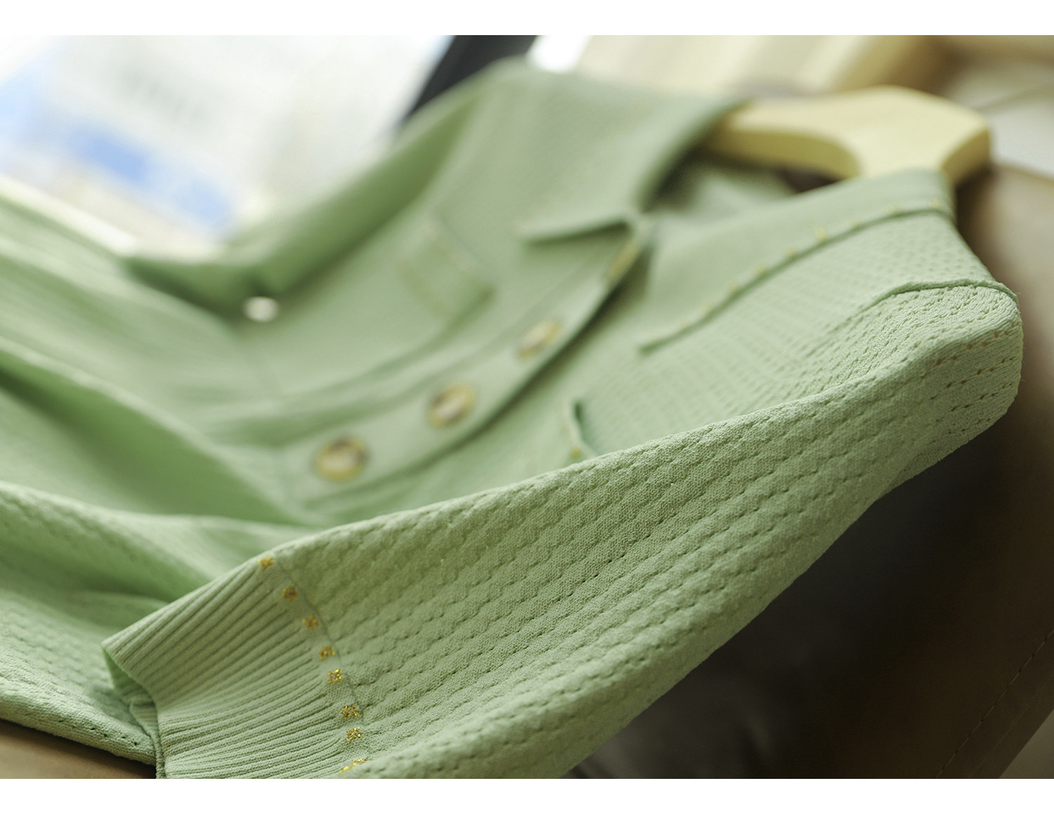 | модные элементы | Поло отвороты, наполовину однократная пряжка, выбранные отверстия в теле+золотая нить, грудь 2 карманы, воротник, манжеты и подол. | ||||||||