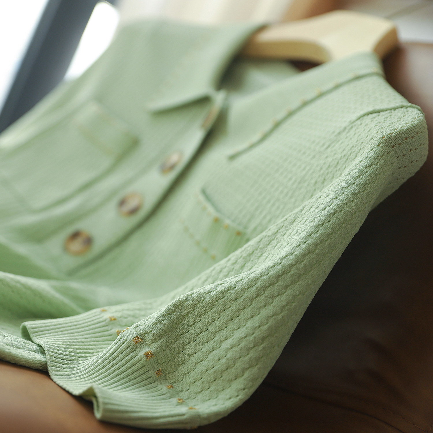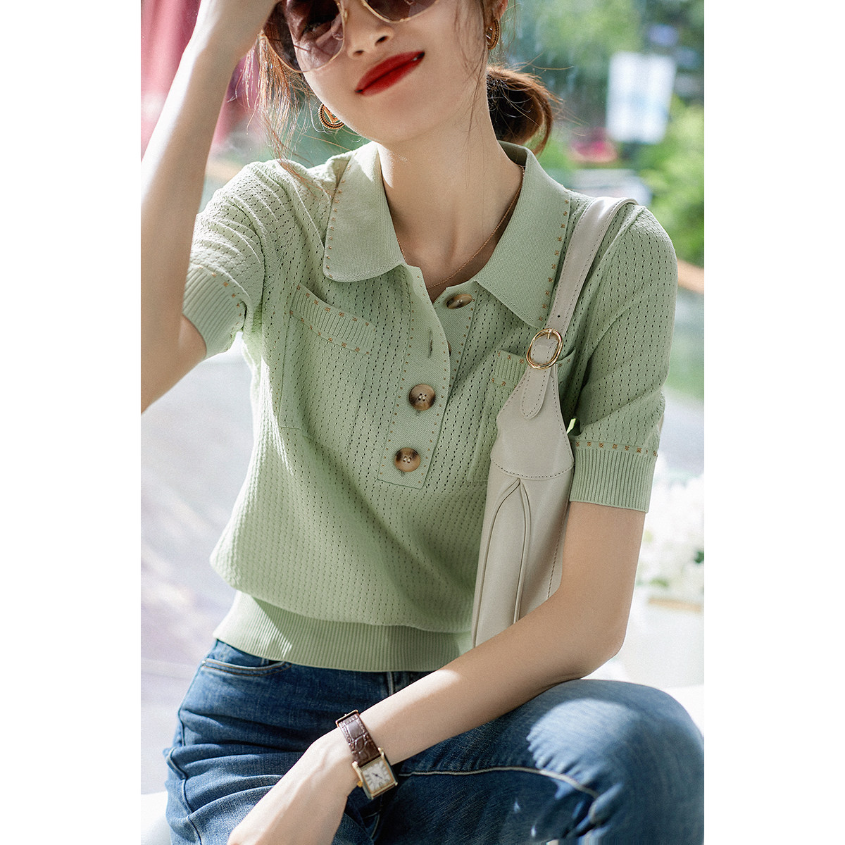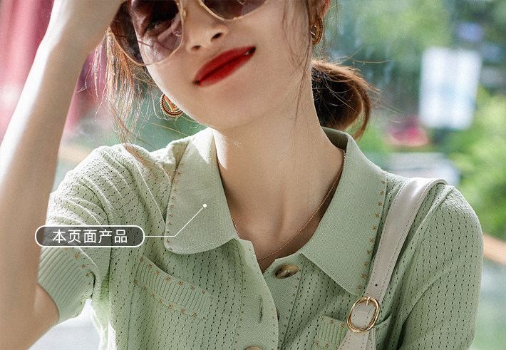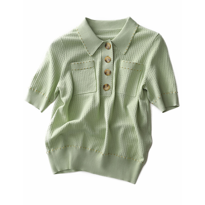 Название продукта: [zyn462601mg] Красивый мятный зеленый цвет красив!Гибкое мясо освежающая вязаная рубашка поло