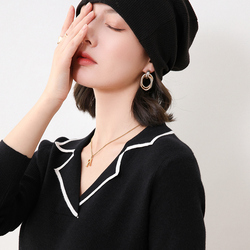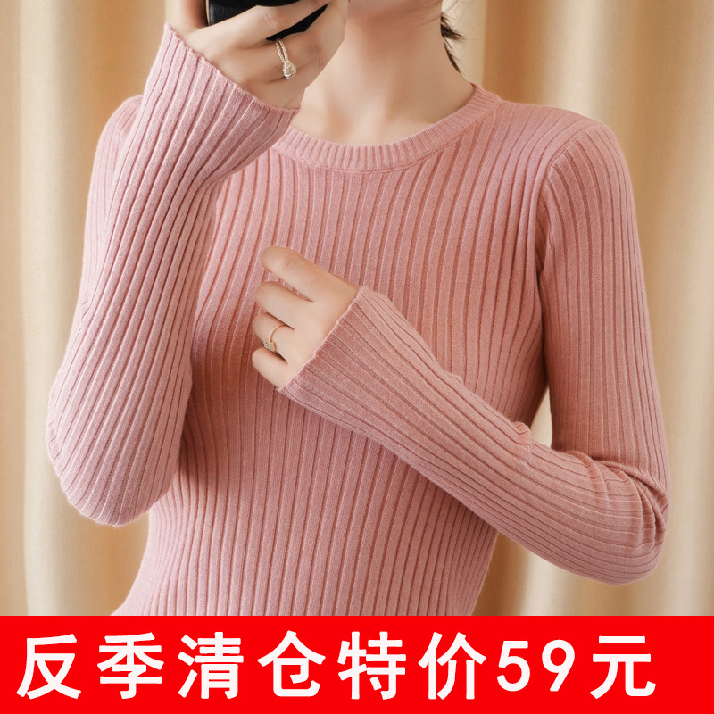 Демисезонный кашемировый лонгслив с круглым воротником, трикотажный свитер, коллекция 2021, облегающий крой, в обтяжку
